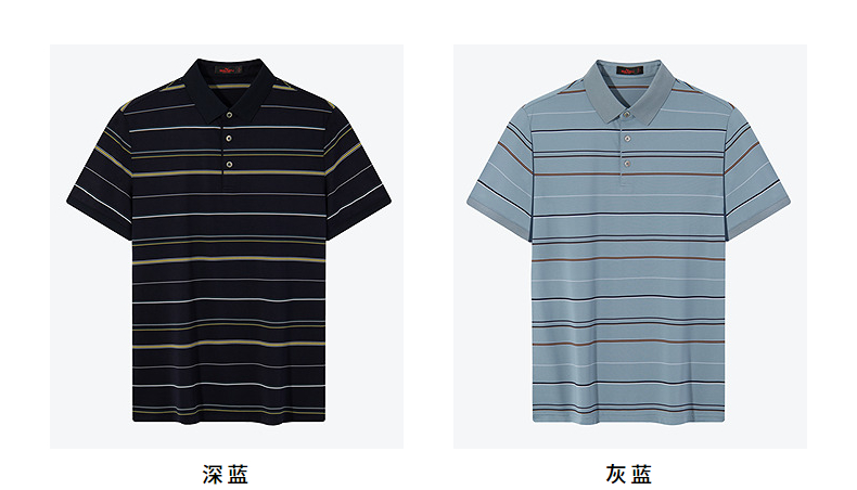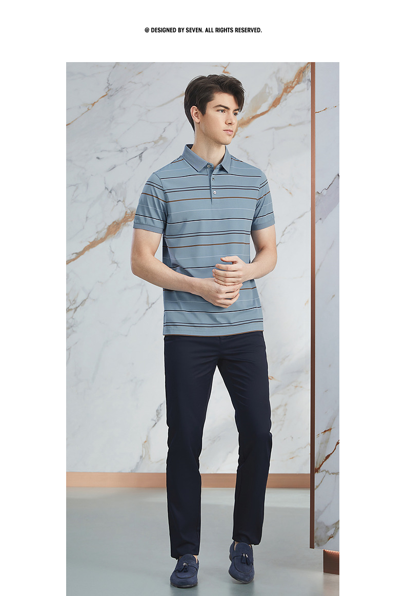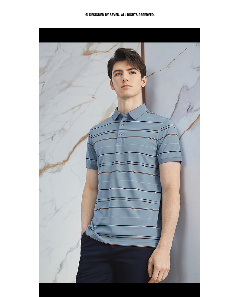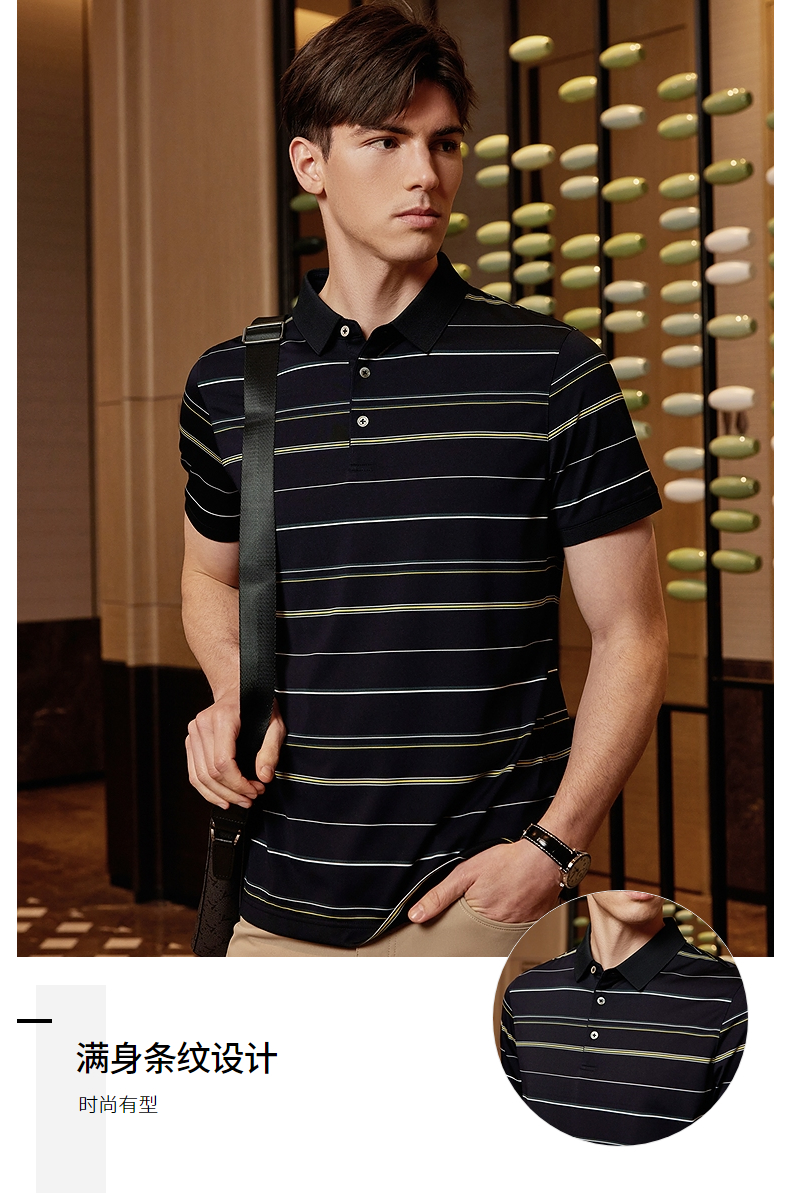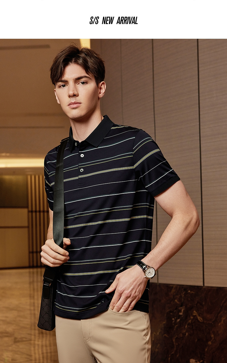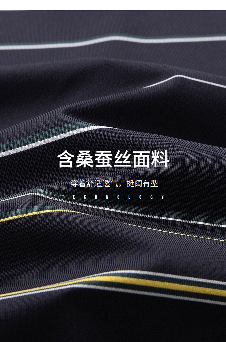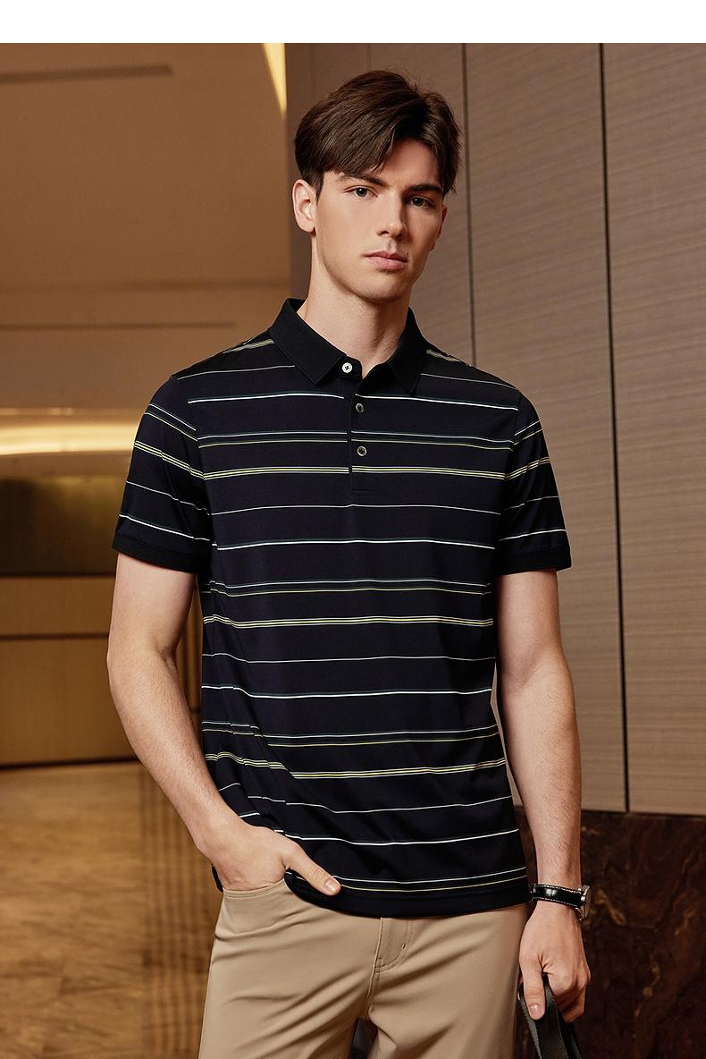 【高端系列】柒牌条纹短袖POLO衫男夏季薄款含桑蚕丝透气翻领上衣 126T71030