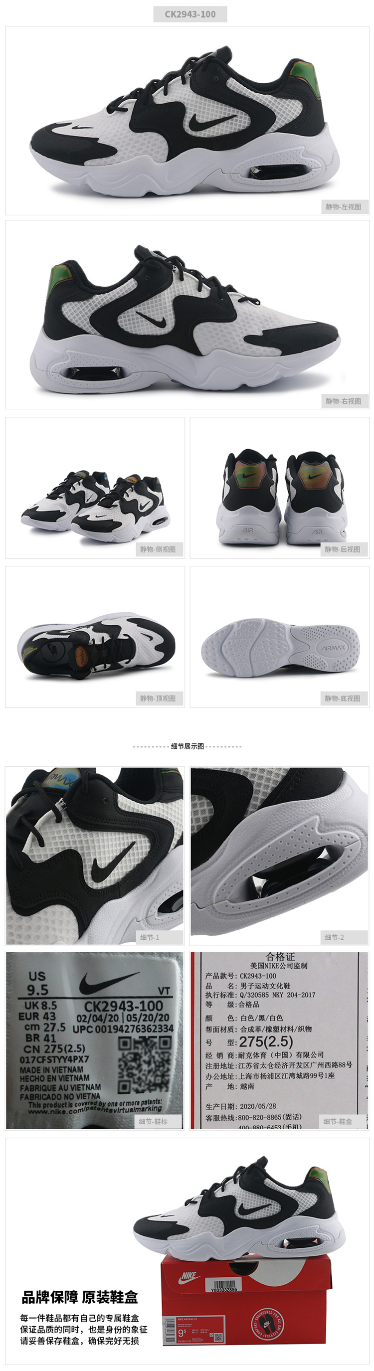 NIKE/耐克 21年春夏新品 男款 AIR MAX 2X 舒适 缓震 气垫 运动 休闲鞋 CK2943-100