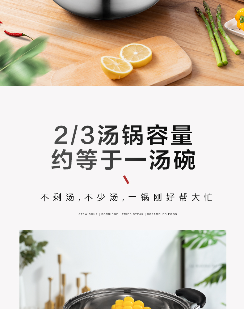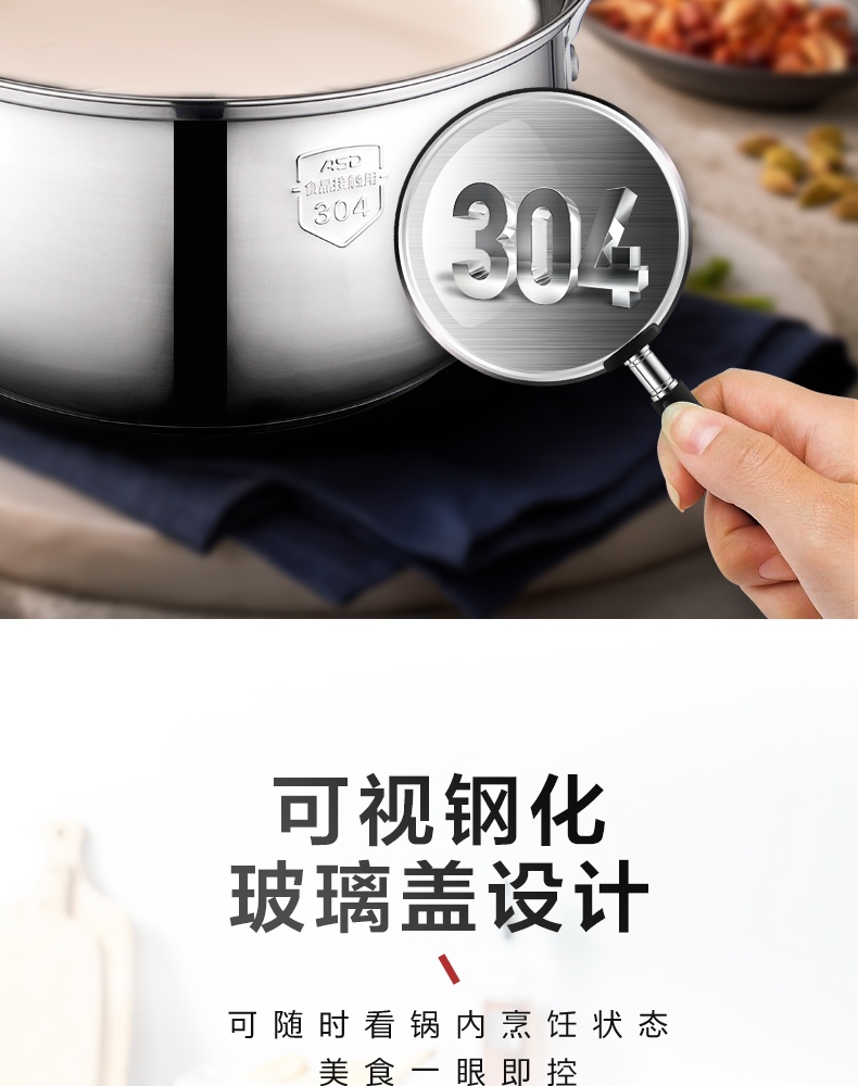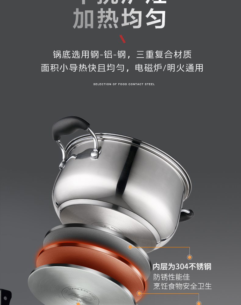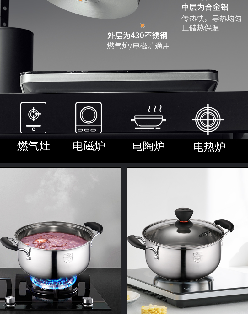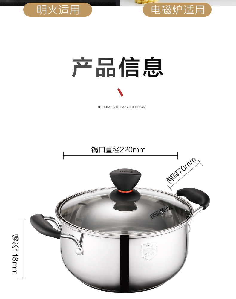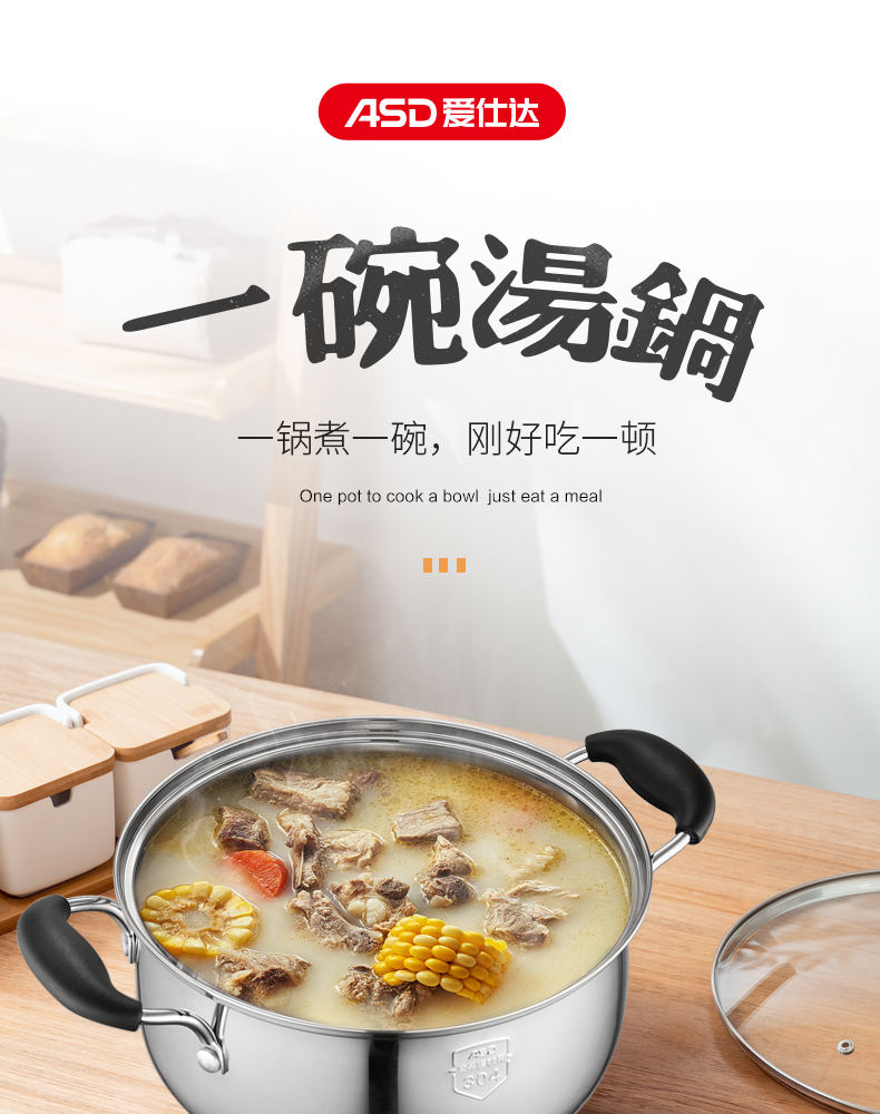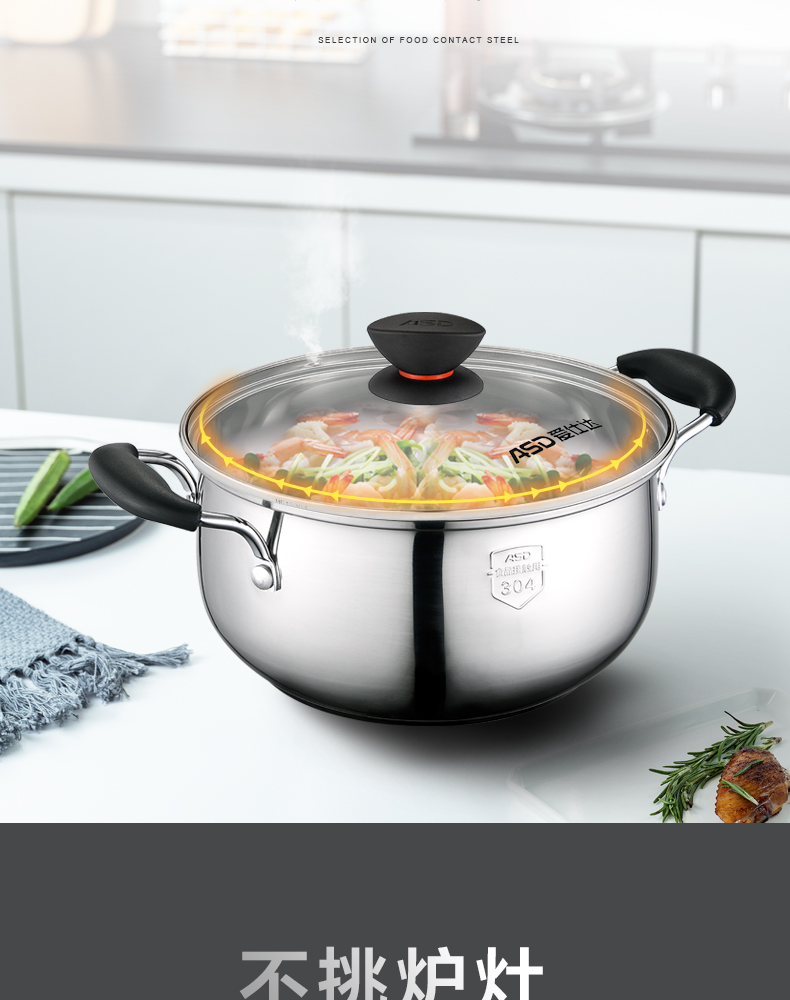 爱仕达(ASD)家用汤锅304不锈钢大容量炖锅燃气电磁炉通用加厚复底