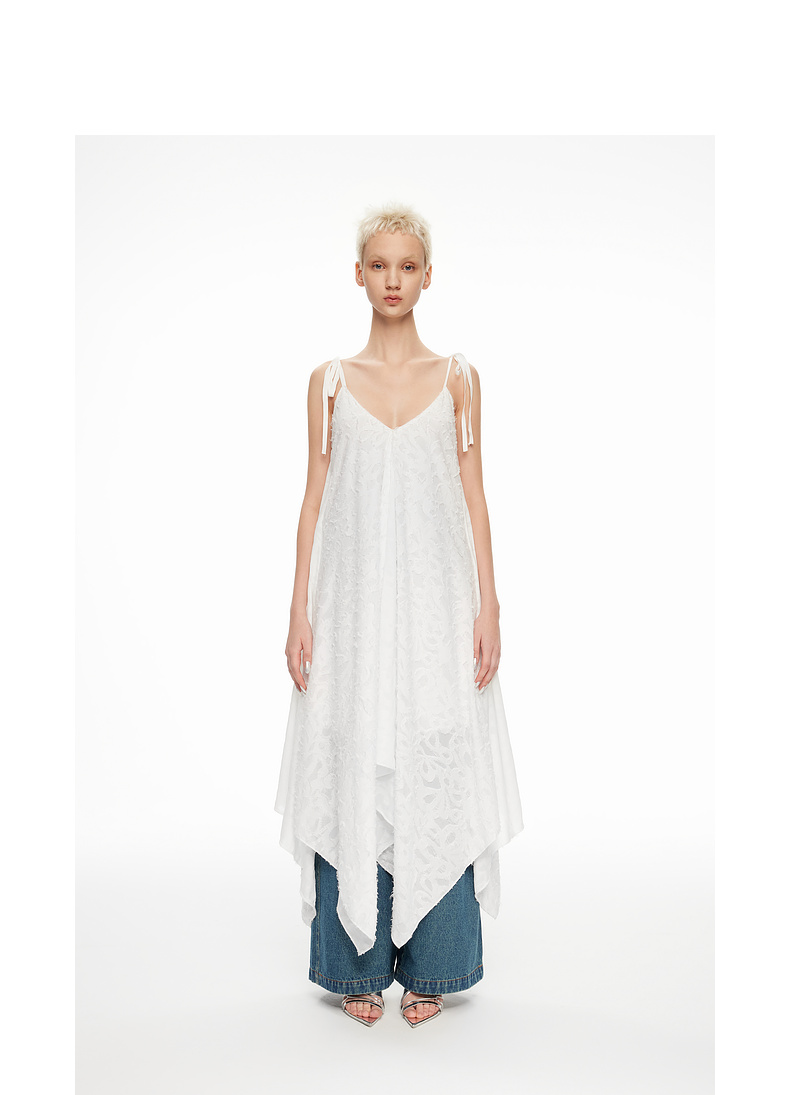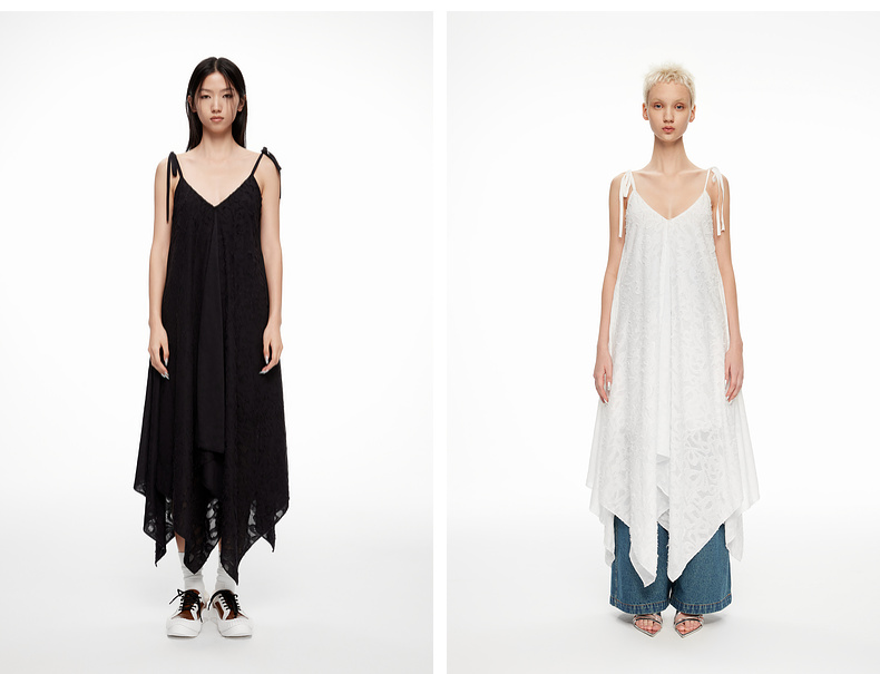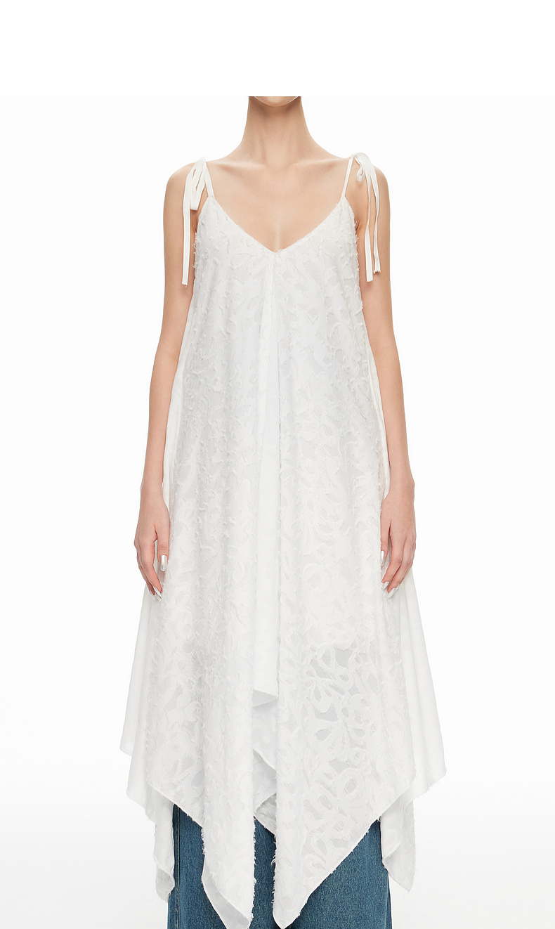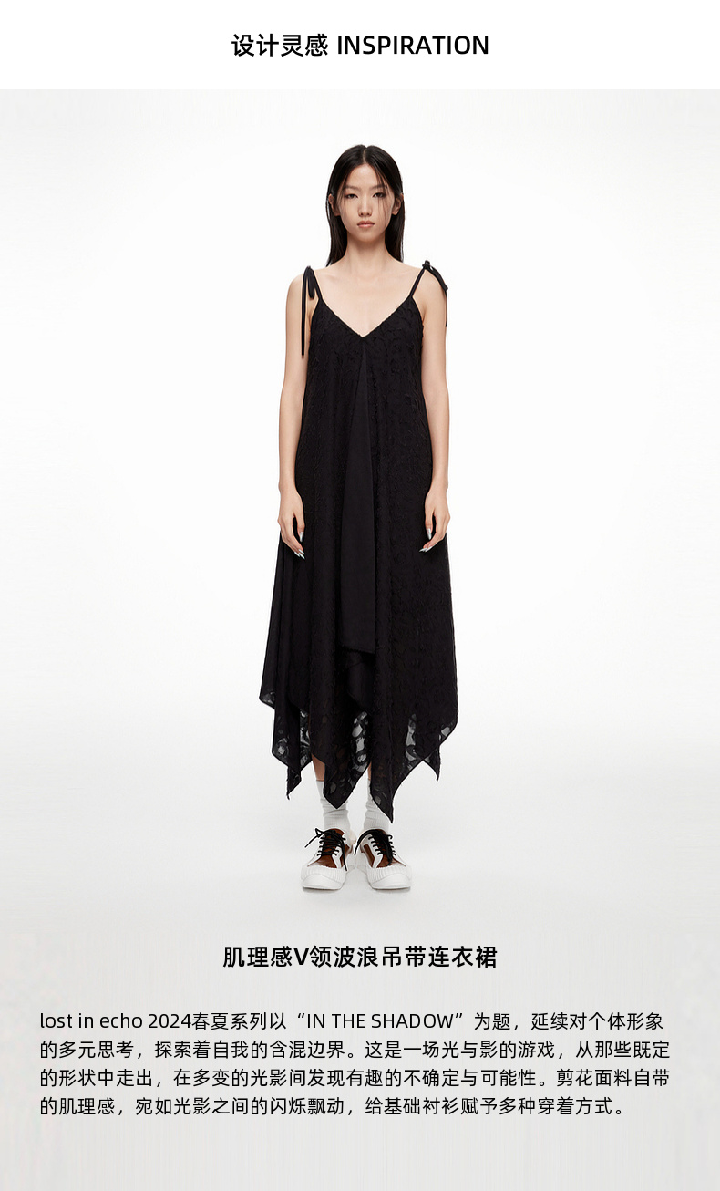 [捡漏价]lost in echo2024春夏新品设计师品牌V领不对称波浪吊带连衣裙