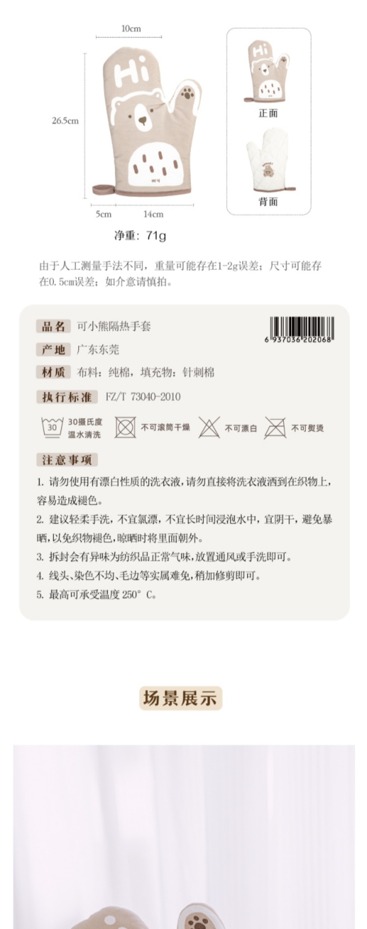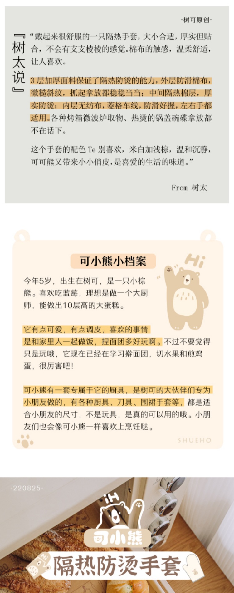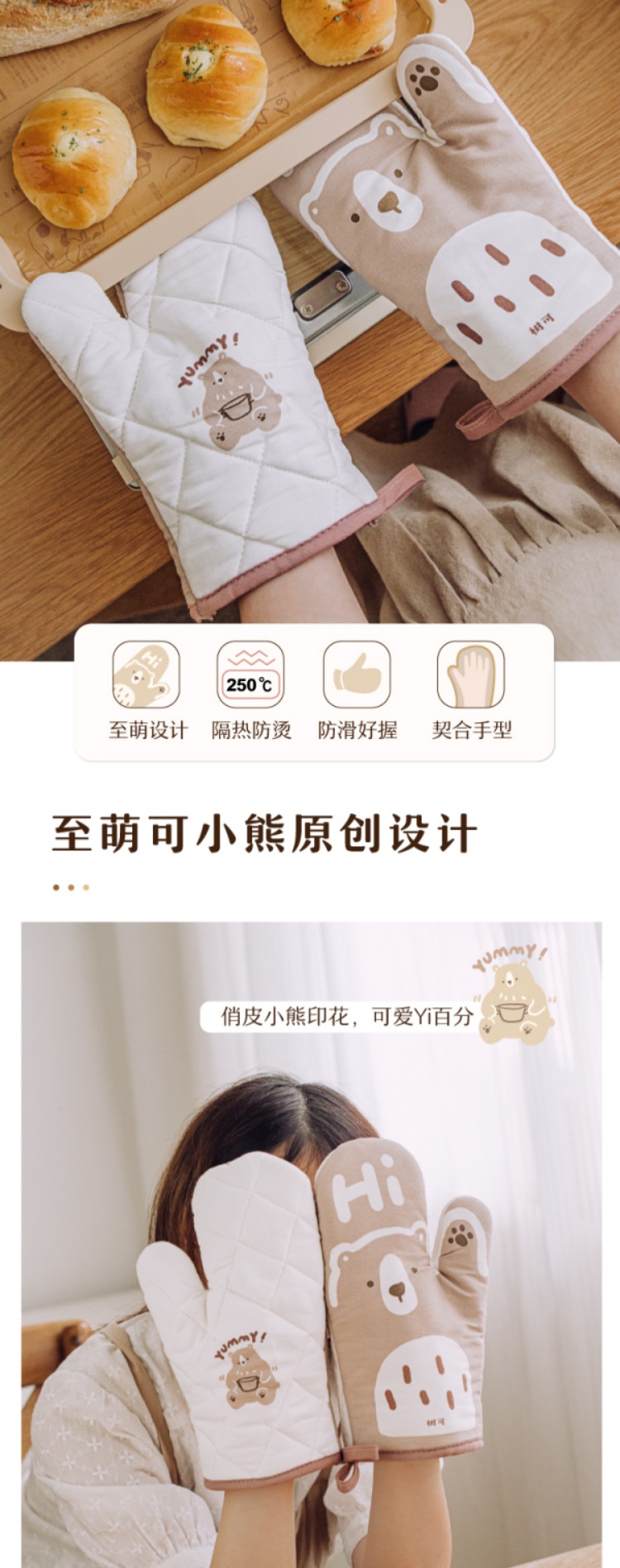 树可可小熊防烫手套厨房锅耳套烤箱耐高温微波炉加厚隔热烘焙手套