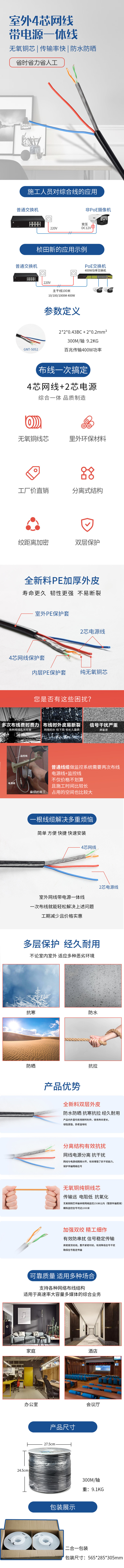室外4芯网络(0.43)+电源(2*0.2)组合线300米/箱GNT-5052