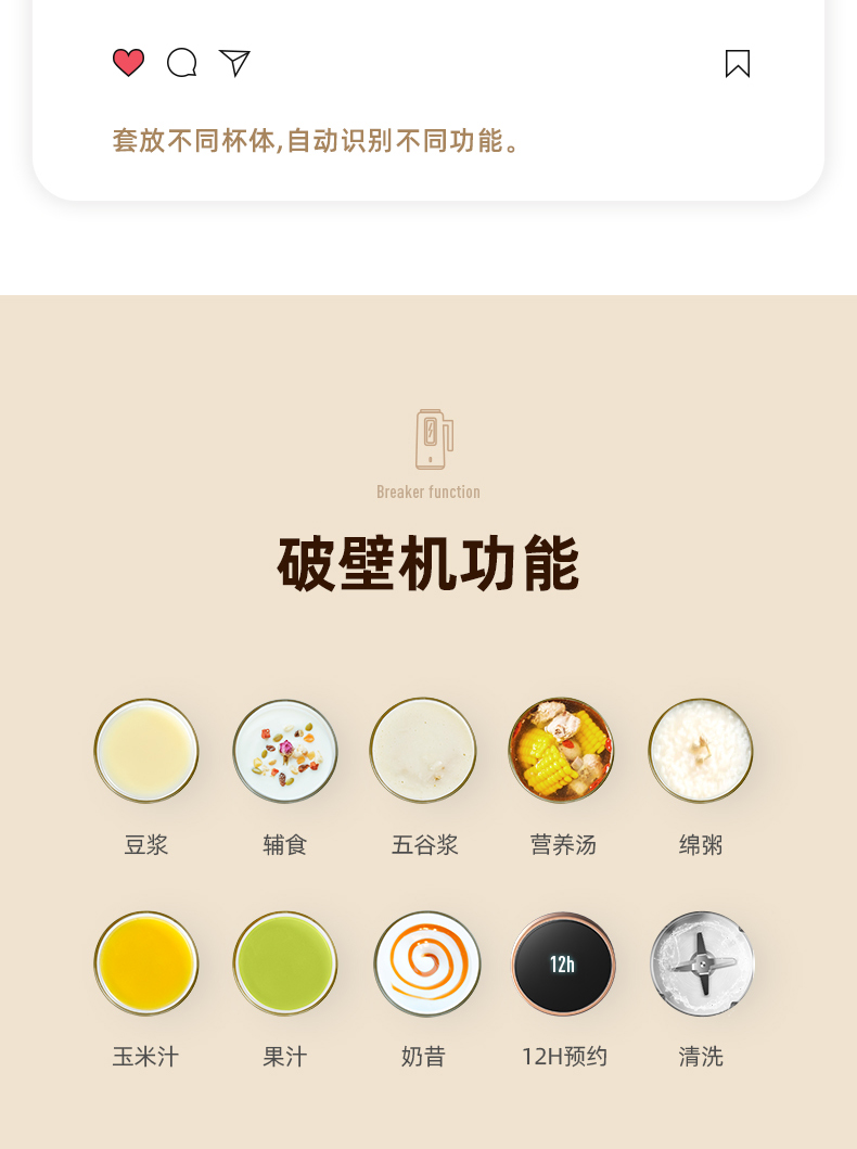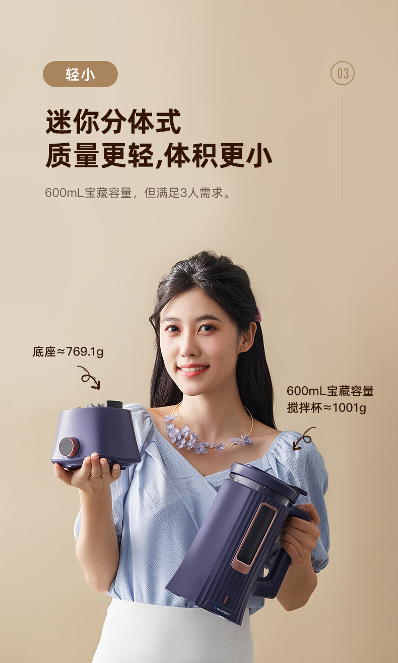 蓝宝迷你破壁机家用小型迷小加热全自动多功能料理机豆浆机