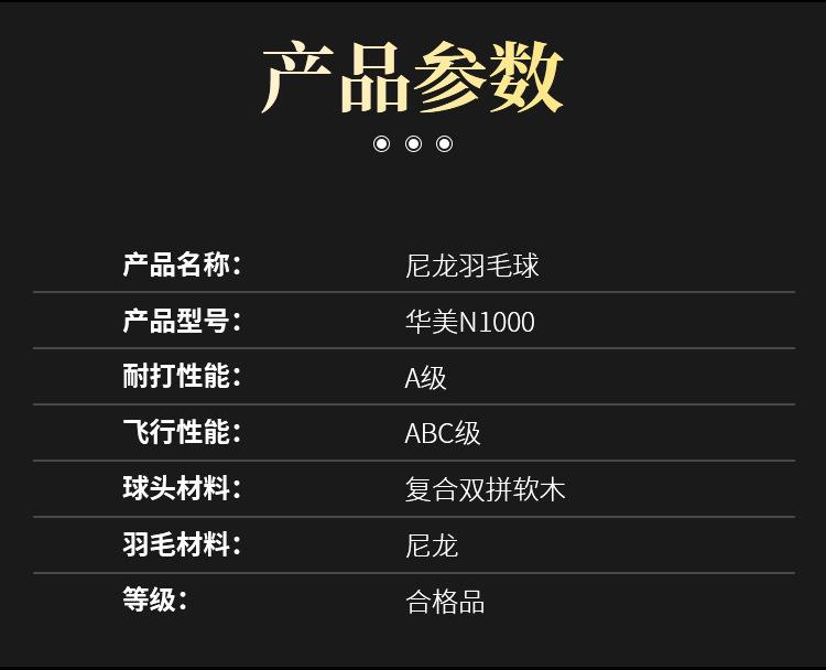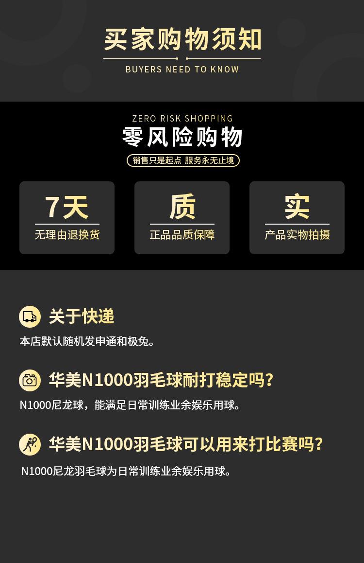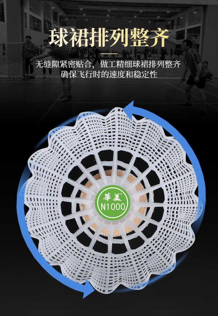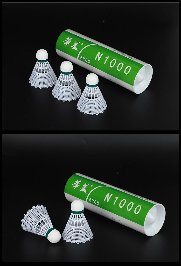 华美N1000尼龙羽毛球专业训练比赛塑料室内外耐打不易烂6只装专用