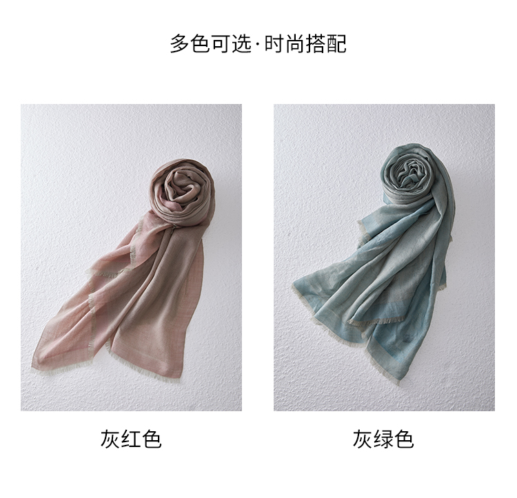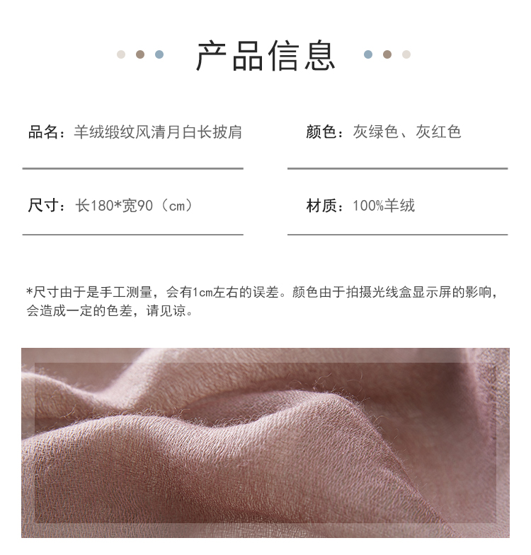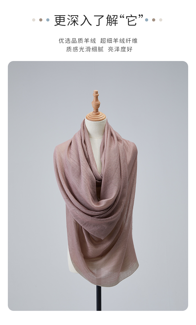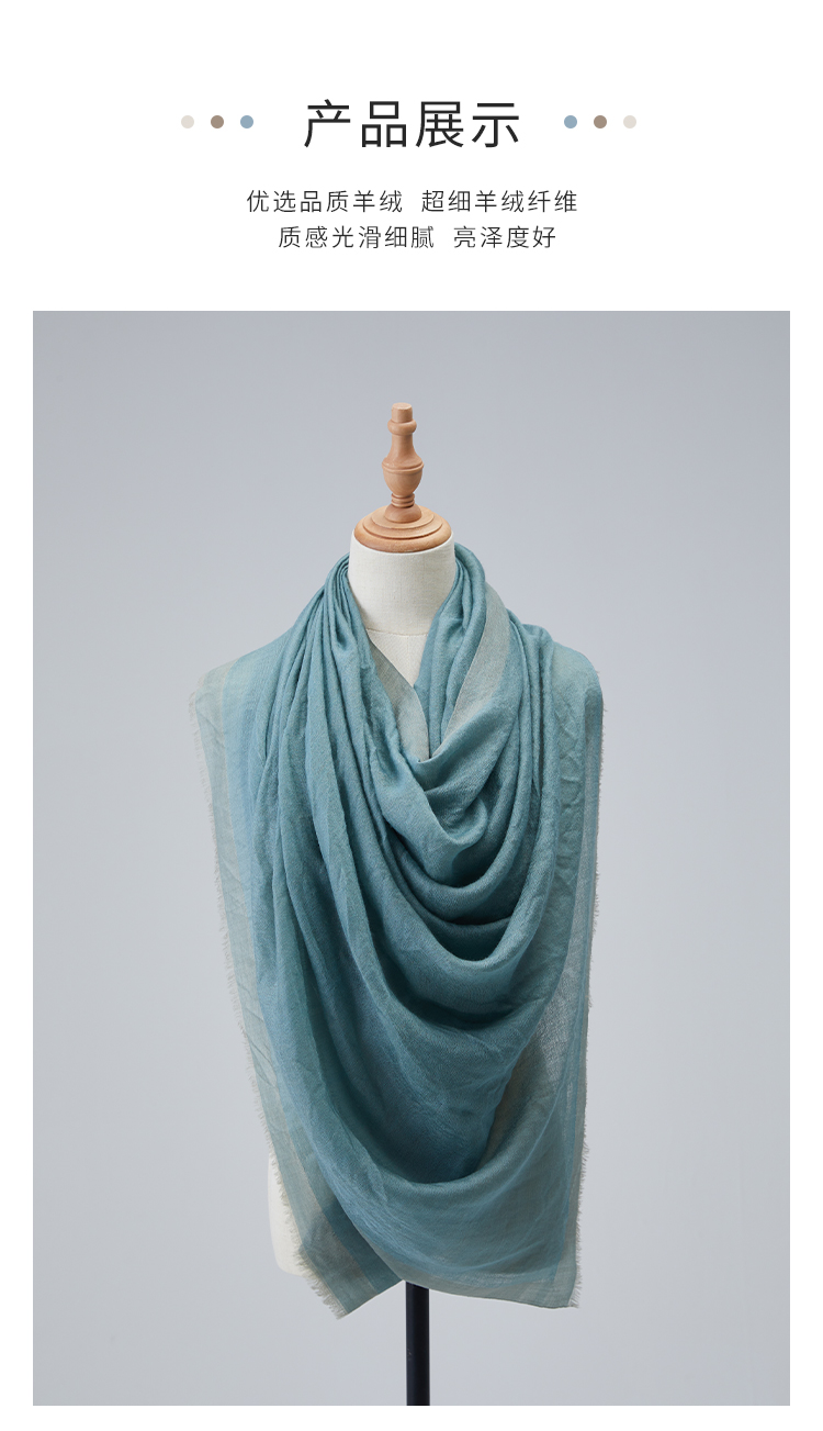 SAINTJOY/上久楷 羊绒围巾 披肩 羊绒缎纹风清月白长披肩 PJS23016