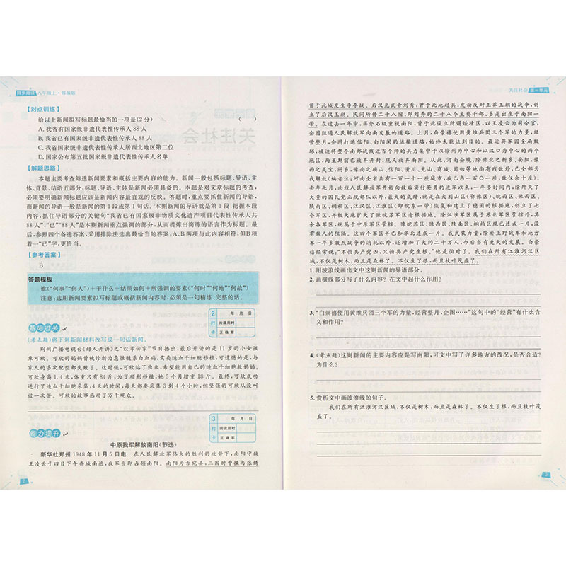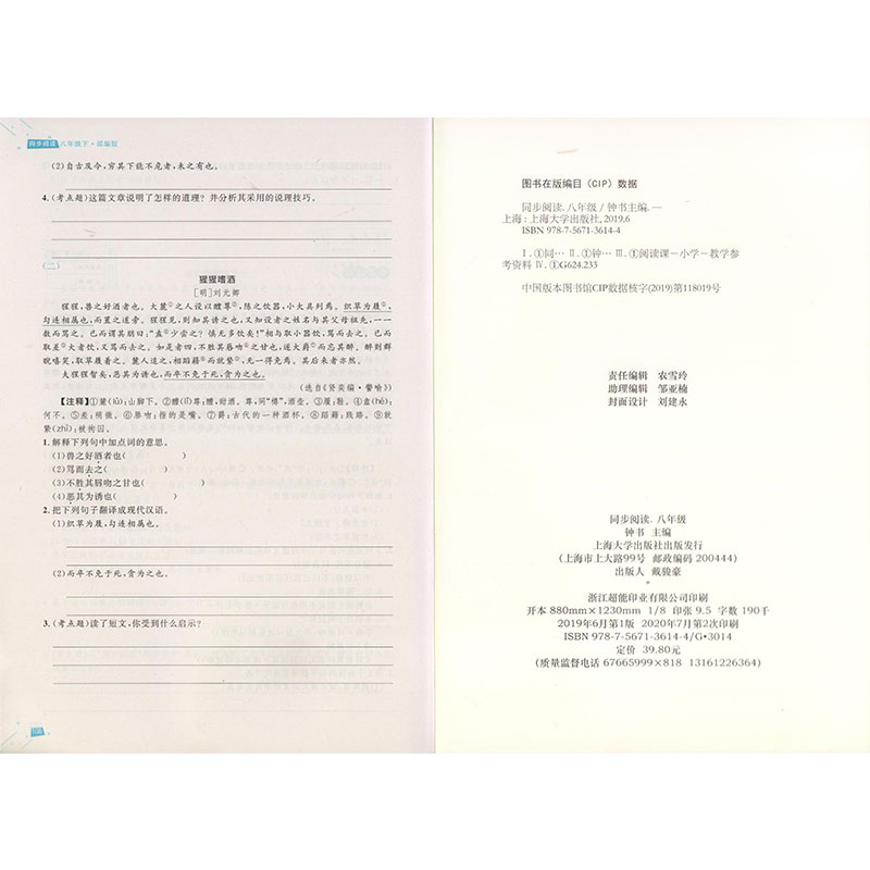 钟书jin牌 同步阅读 三至八年级8年级 配套部编版教材 著名作家安武林倾情推荐 附赠同步基础知识手册 8年级同步阅读 上海大学出版社