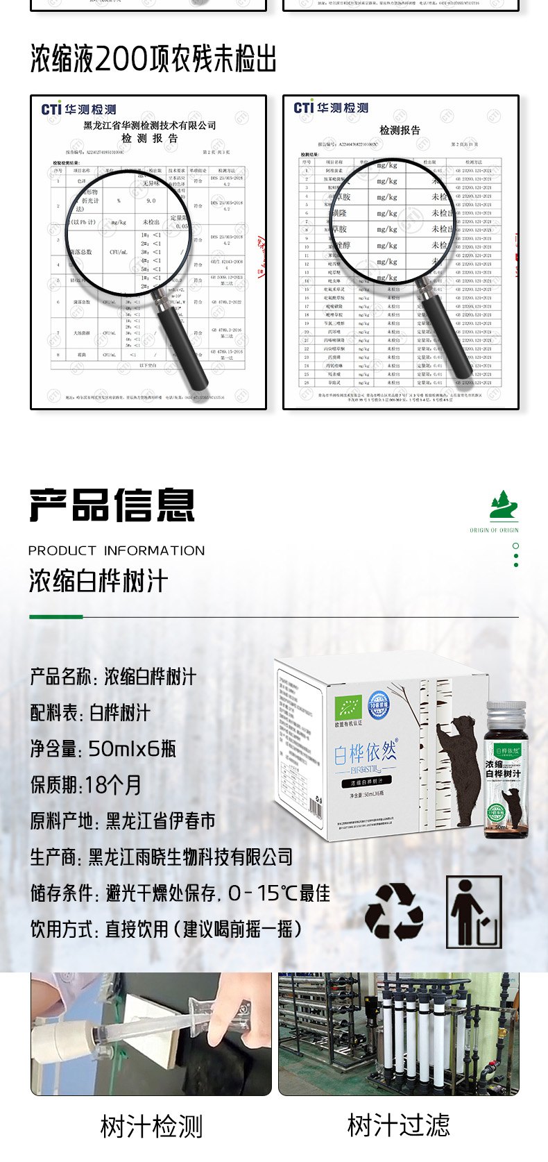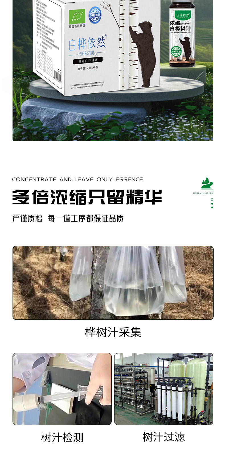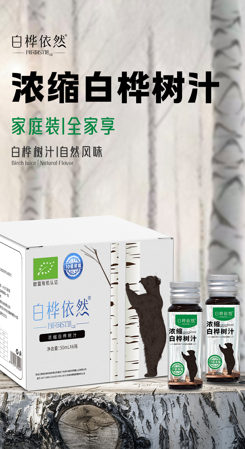⁵3月店庆【浓缩白桦树汁】 欧盟有机认证 10倍浓缩 小兴安岭 50ml一瓶 6瓶一箱 YY05-QTT-BHYR