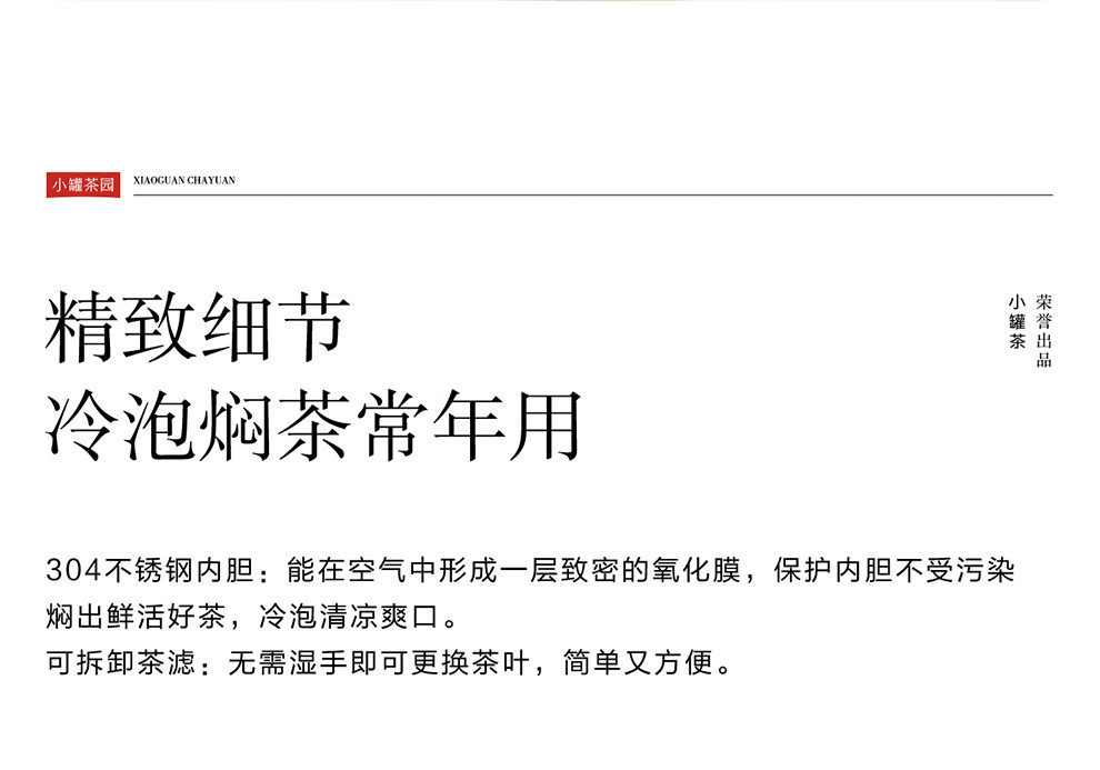 小罐茶园茶具焖焖杯大容量茶水分离杯304不锈钢食品级保温杯焖茶杯礼盒 600ml