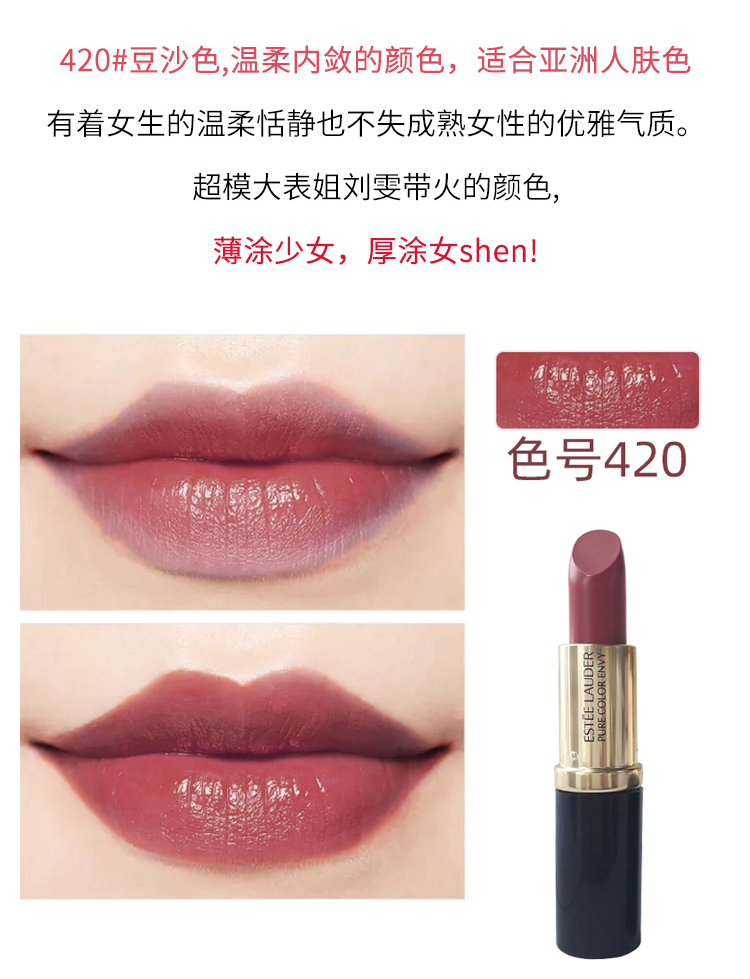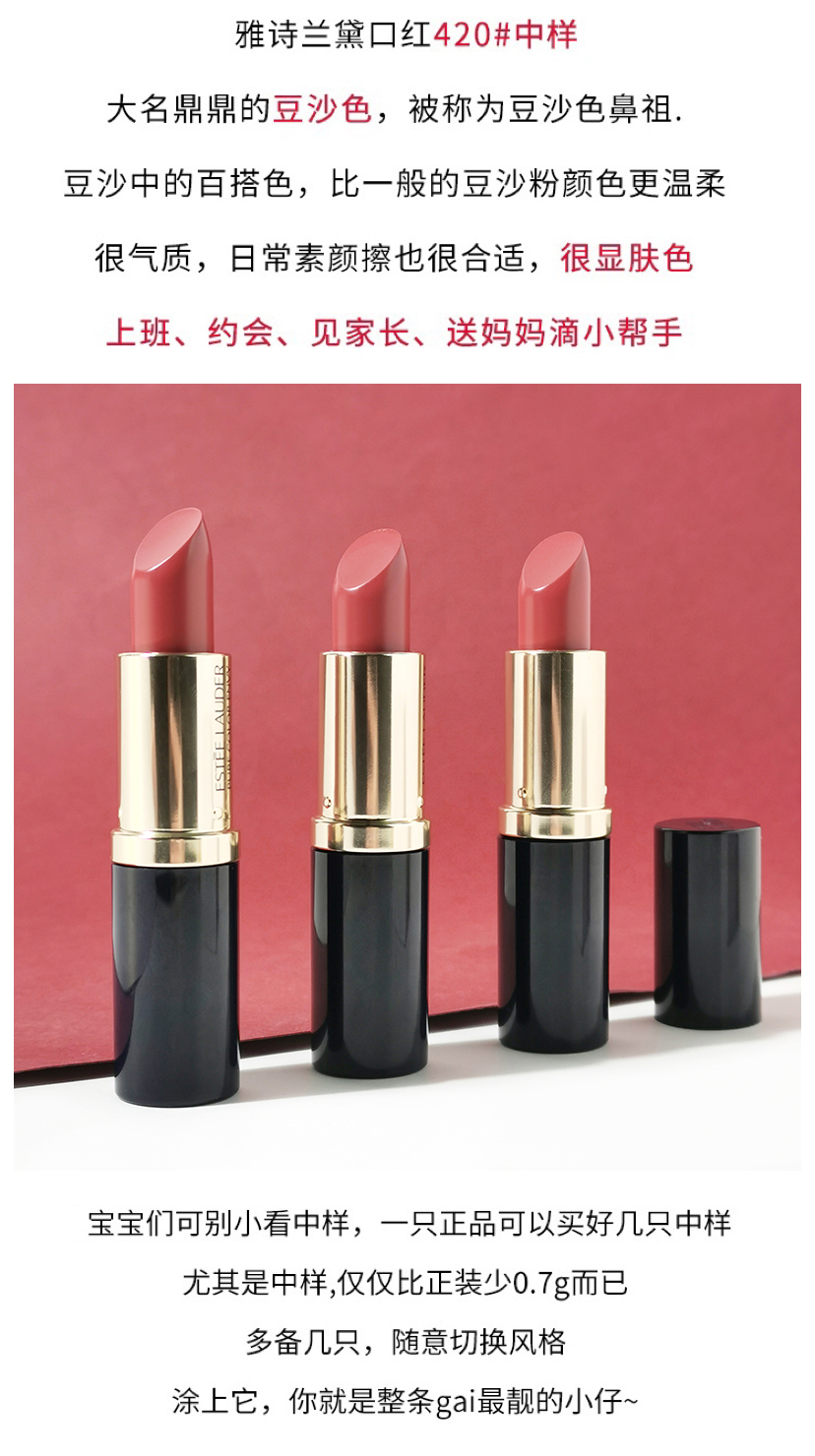 雅诗兰黛口红420中样2.8g刘雯大表姐色花漾倾慕唇膏豆沙色