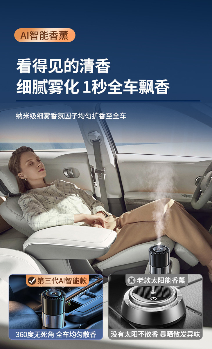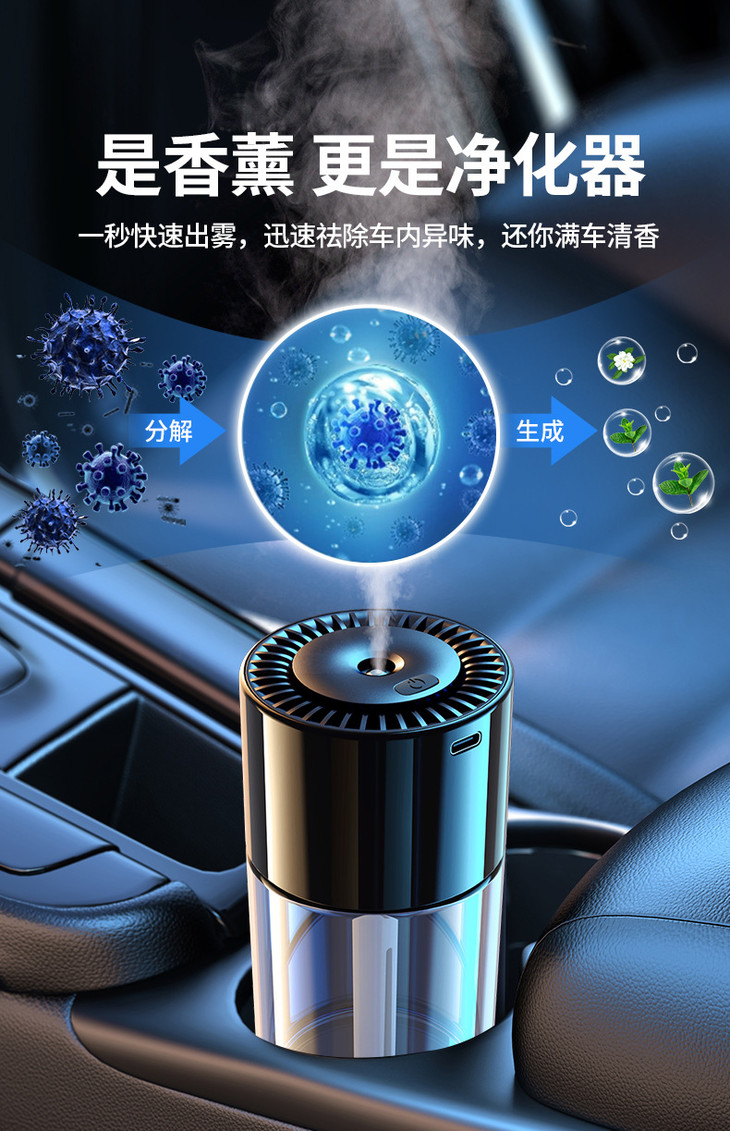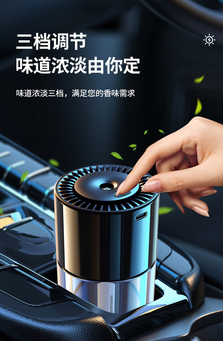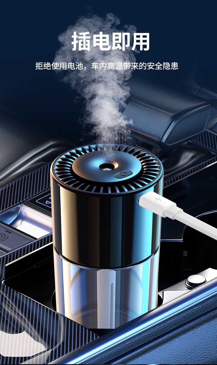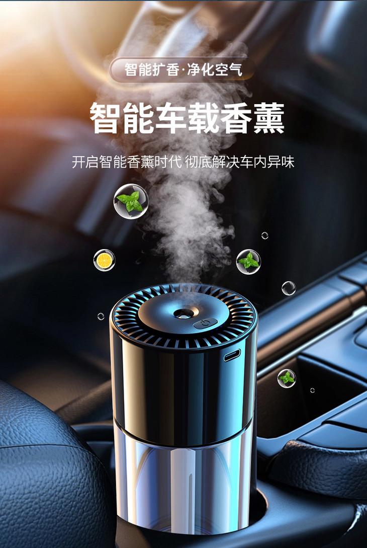 新款车载AI智能喷雾香水三档调节带灯汽车用加湿器座式香熏摆件
