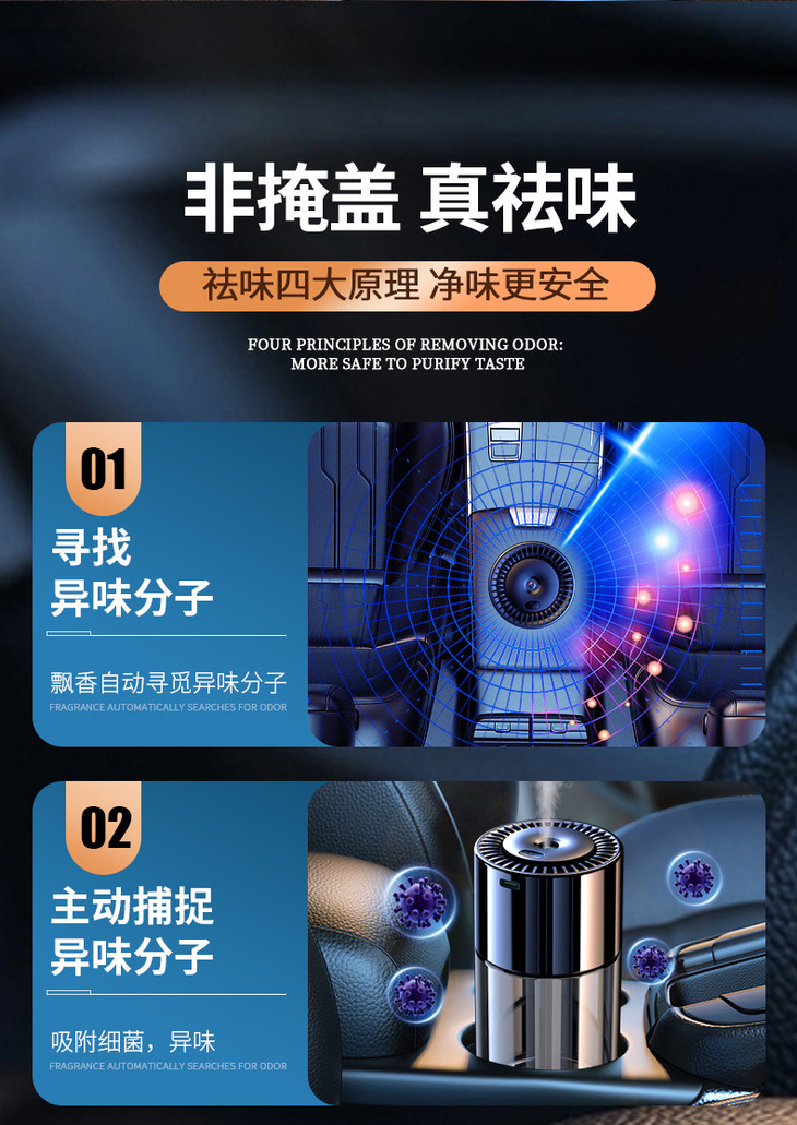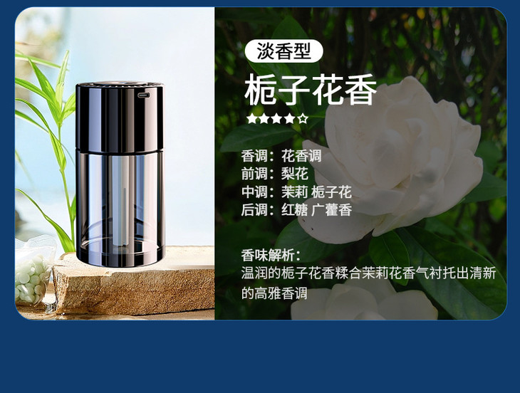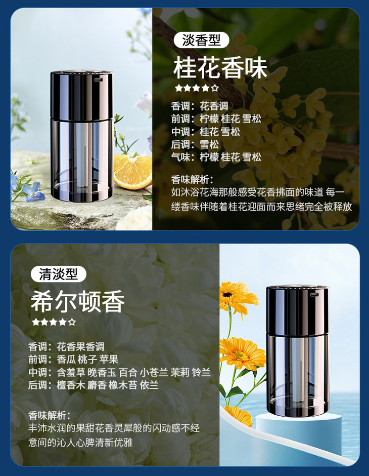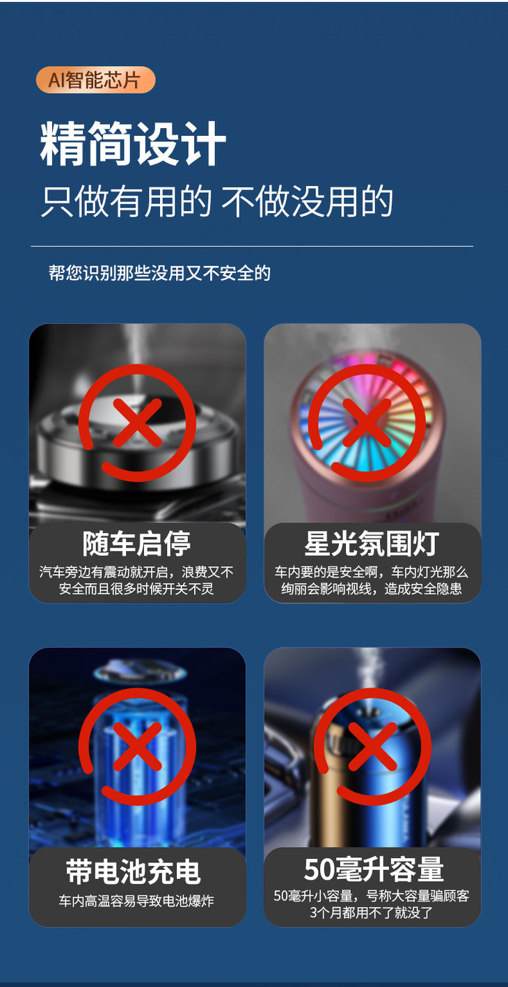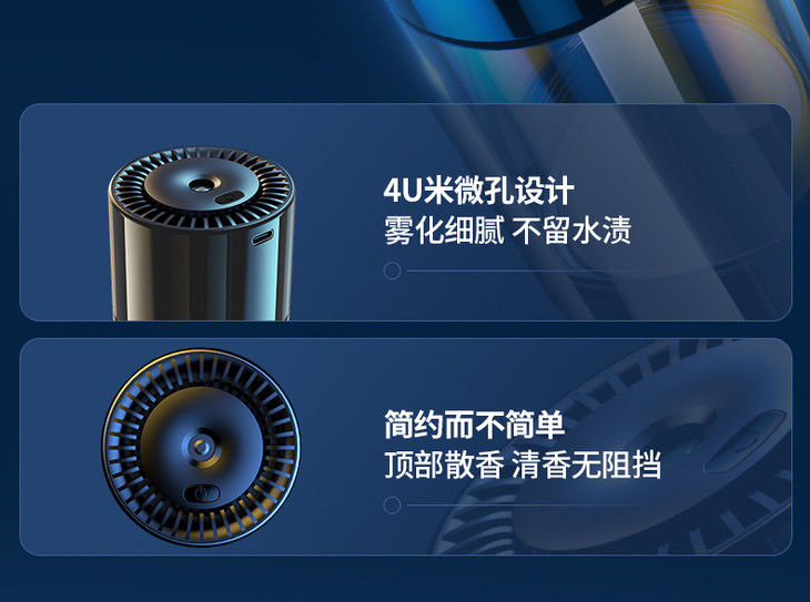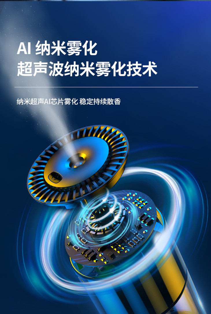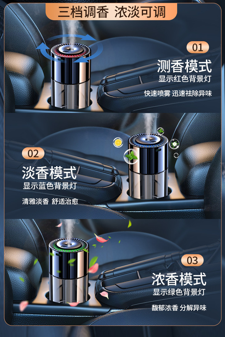 新款车载AI智能喷雾香水三档调节带灯汽车用加湿器座式香熏摆件