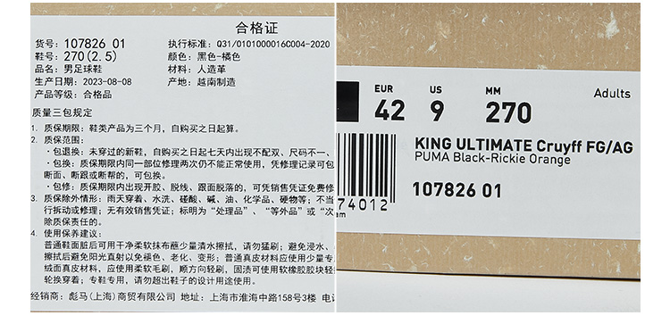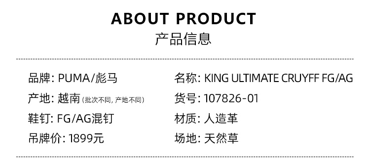 SFS彪马Puma KING 克鲁伊夫限量款高端FG/AG混钉低帮足球鞋男 107826-01