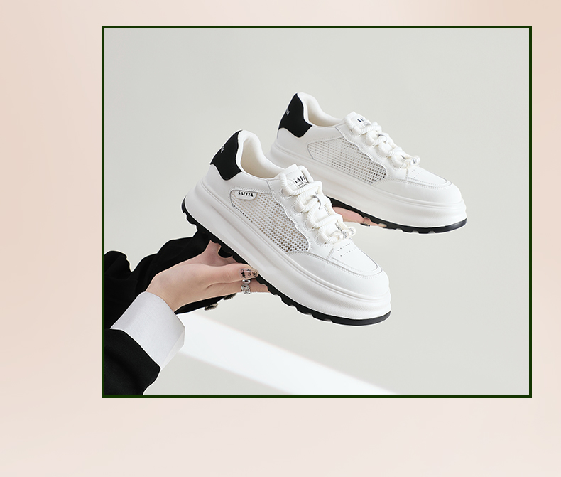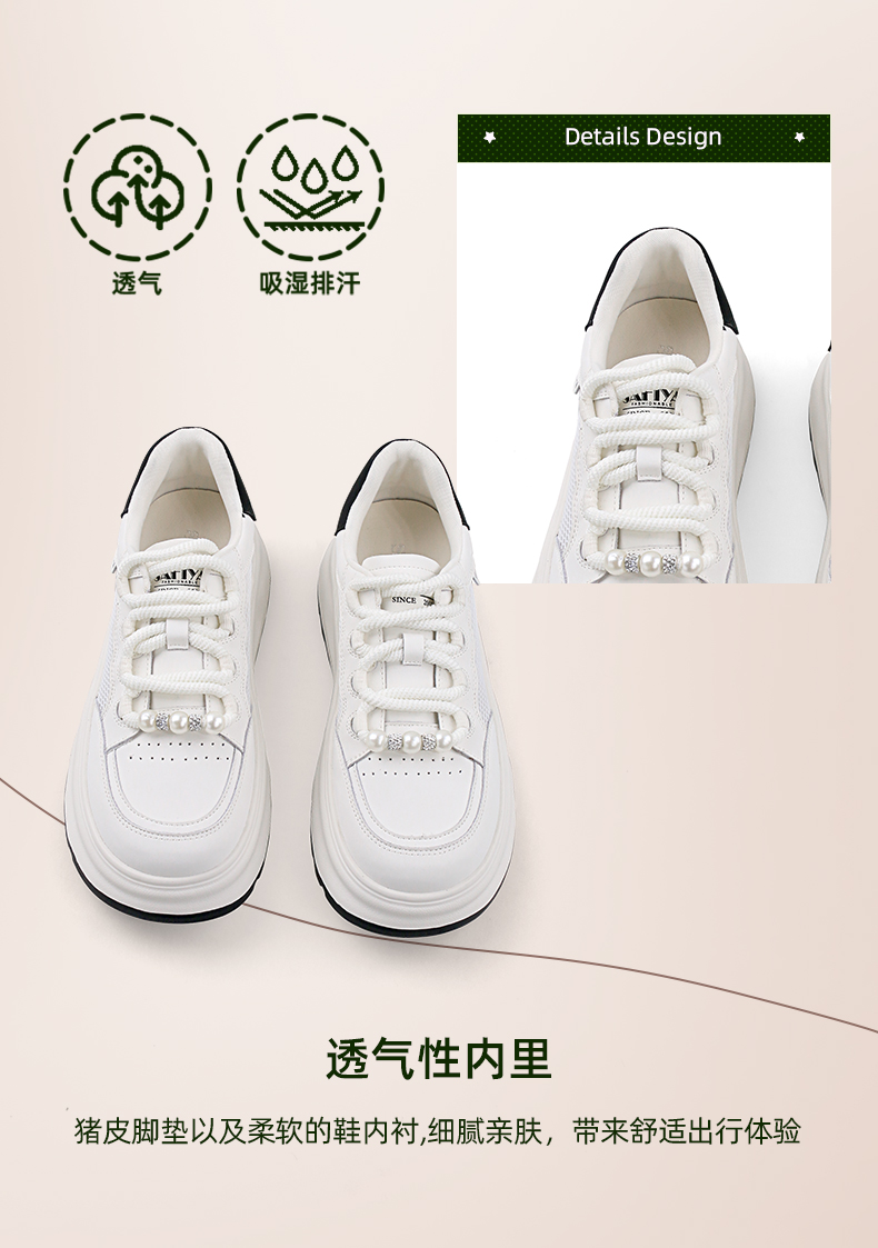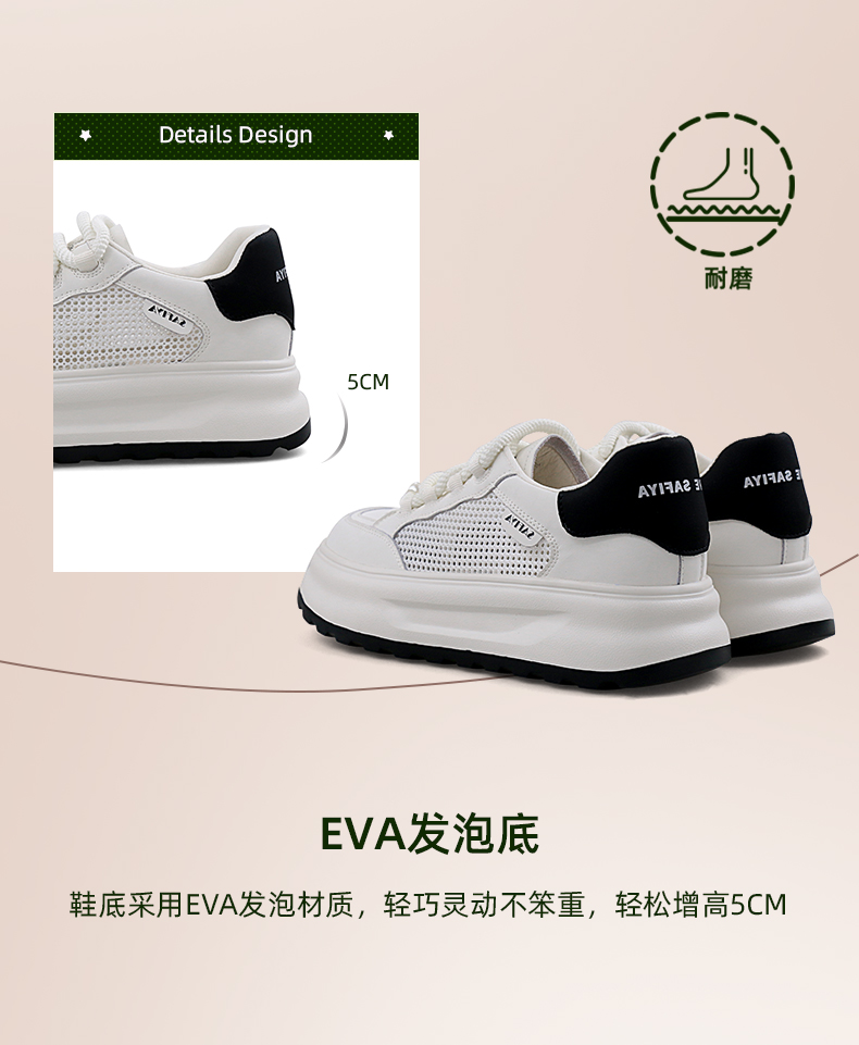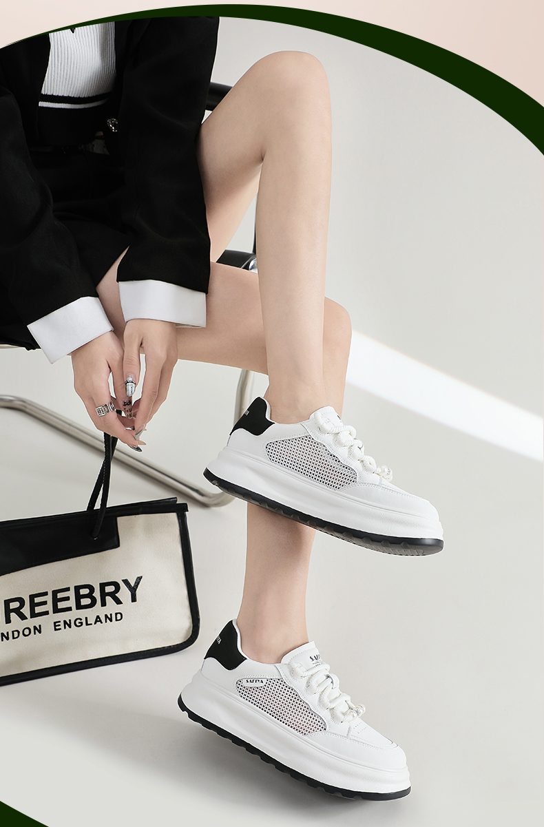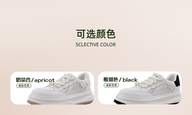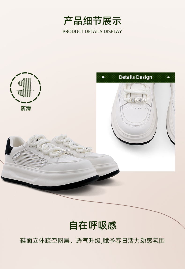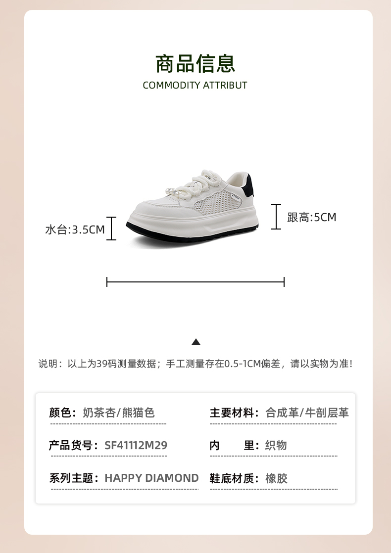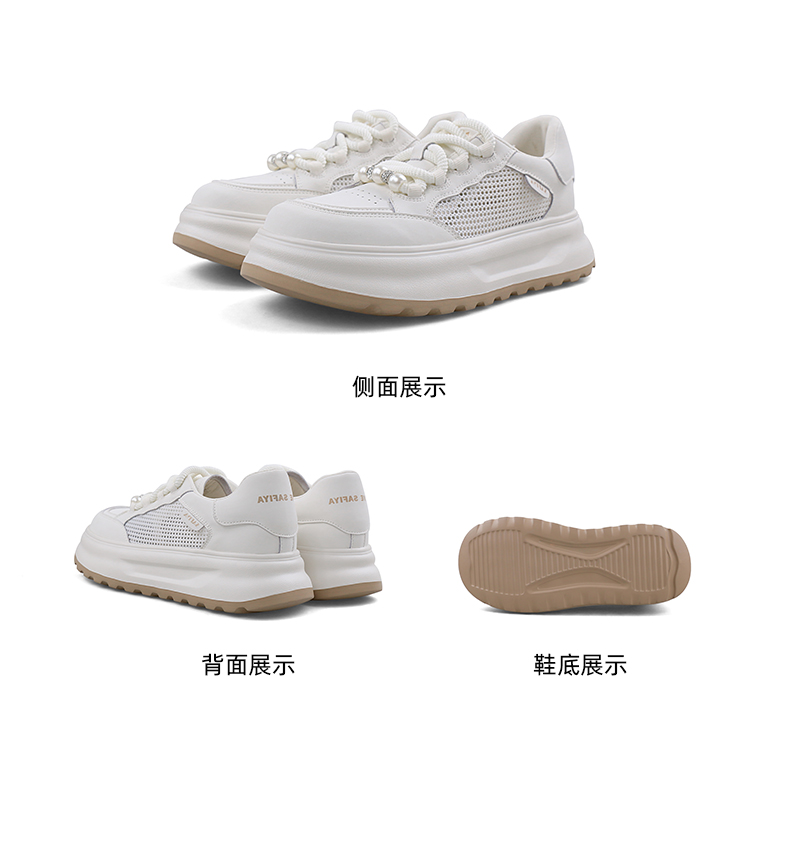 Safiya/索菲娅2024新品潮趣珍珠水钻厚底拼色网面休闲运动板鞋 SF41112M29