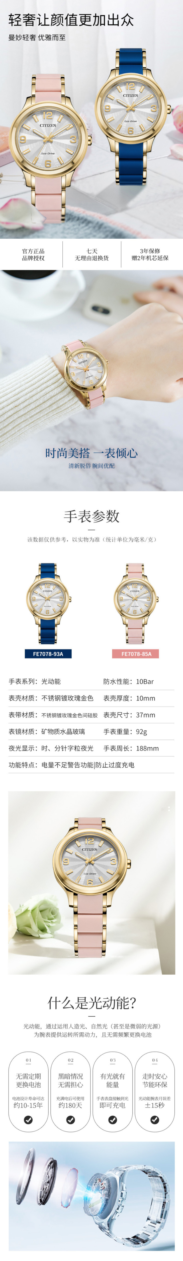 西铁城日本官方正品光动能时尚休闲女表FE7078-93A