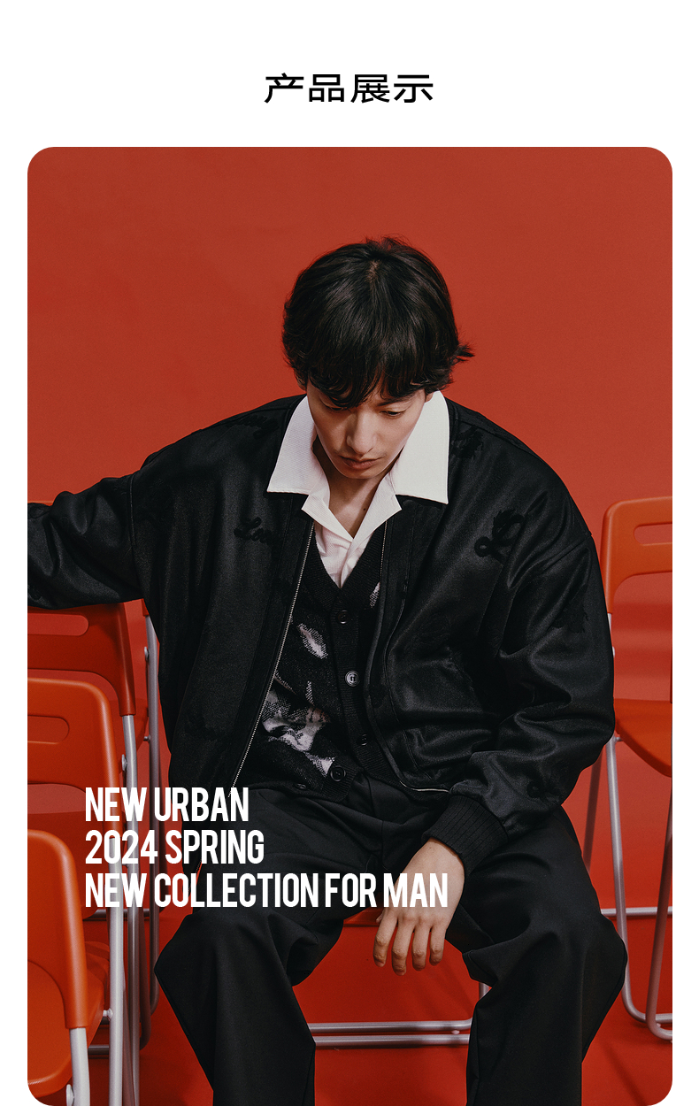 GXG男装 新年系列龙纹满印提花夹克复古棒球夹克男时尚棒球服热卖