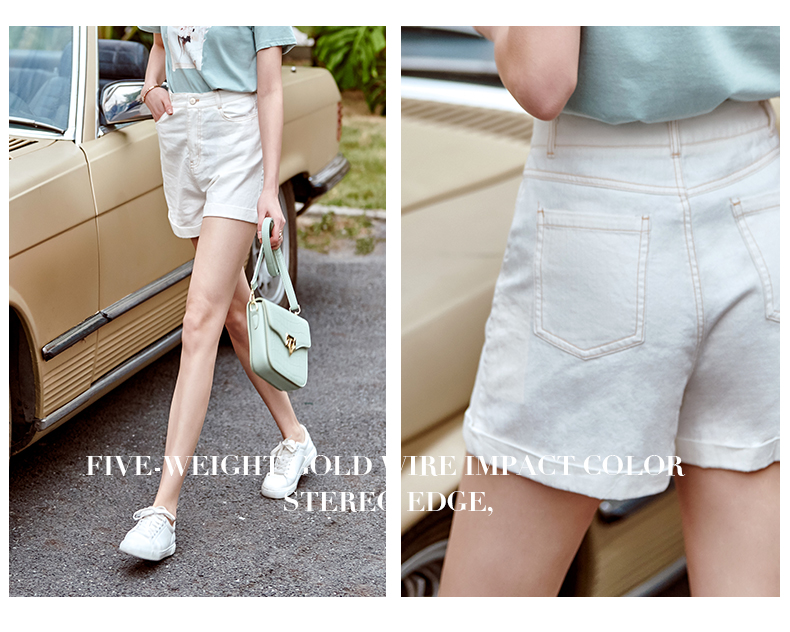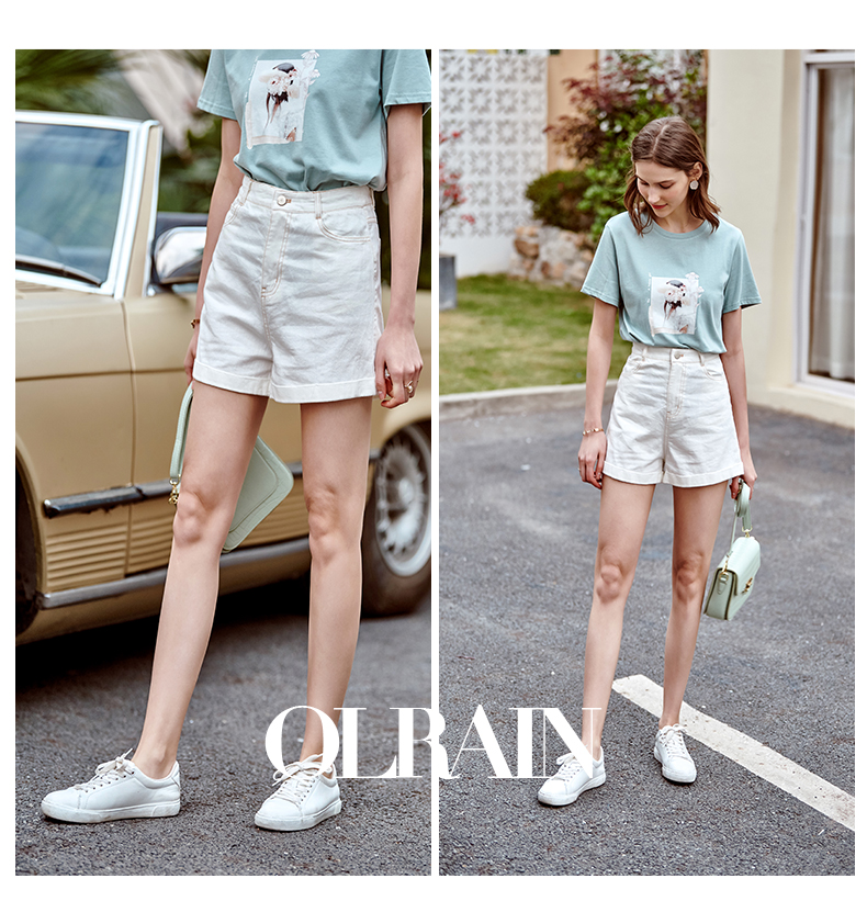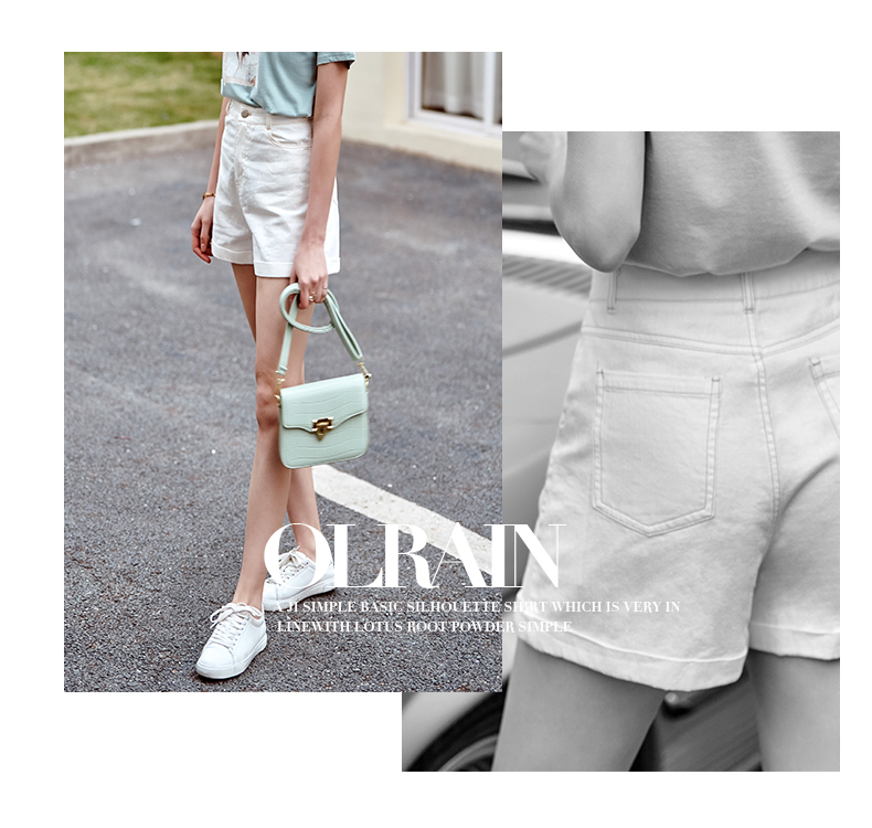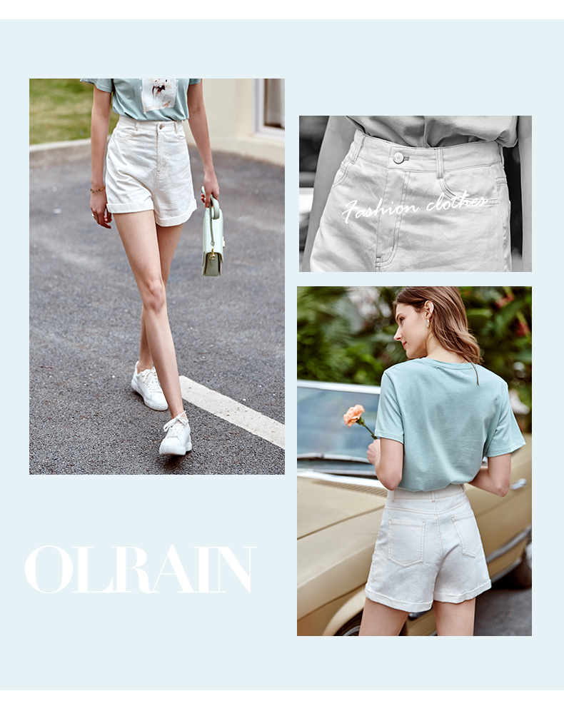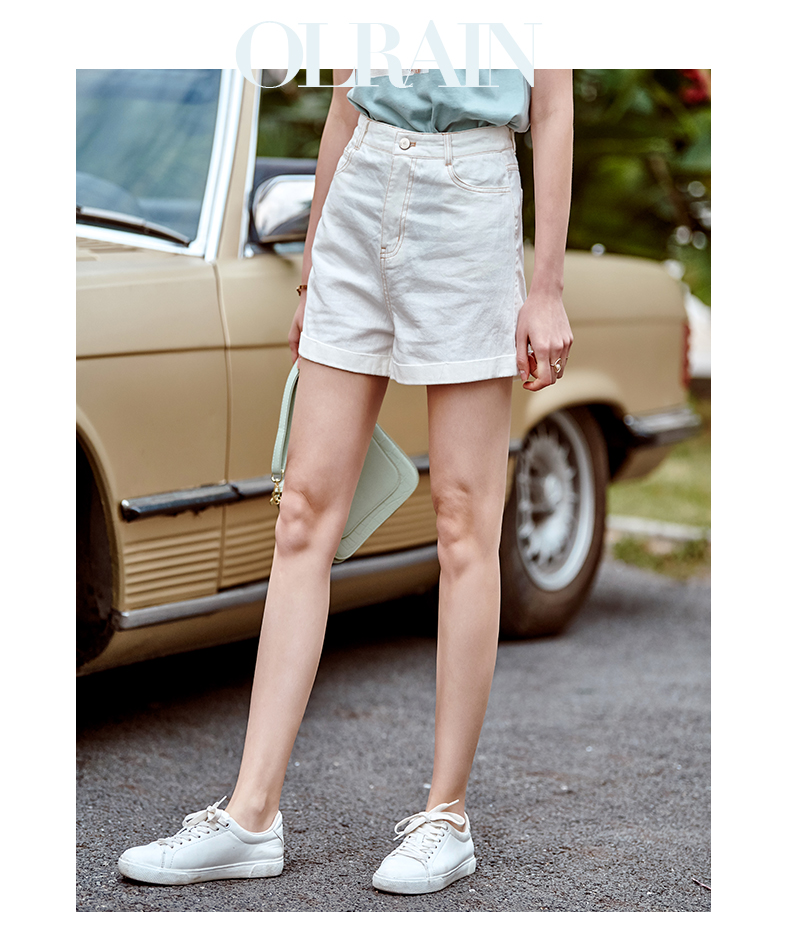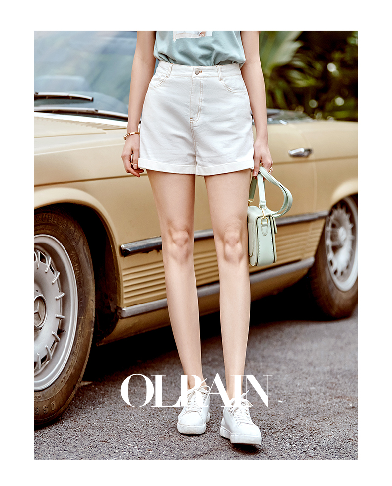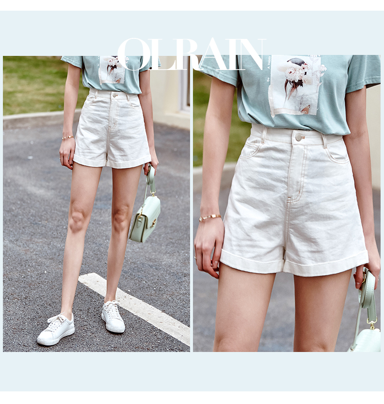 欧芮儿白色牛仔裤女2021春夏新款高腰显瘦气质炸街折边微宽松短裤