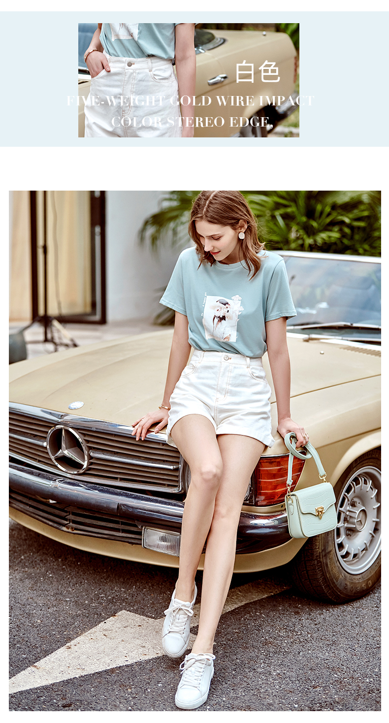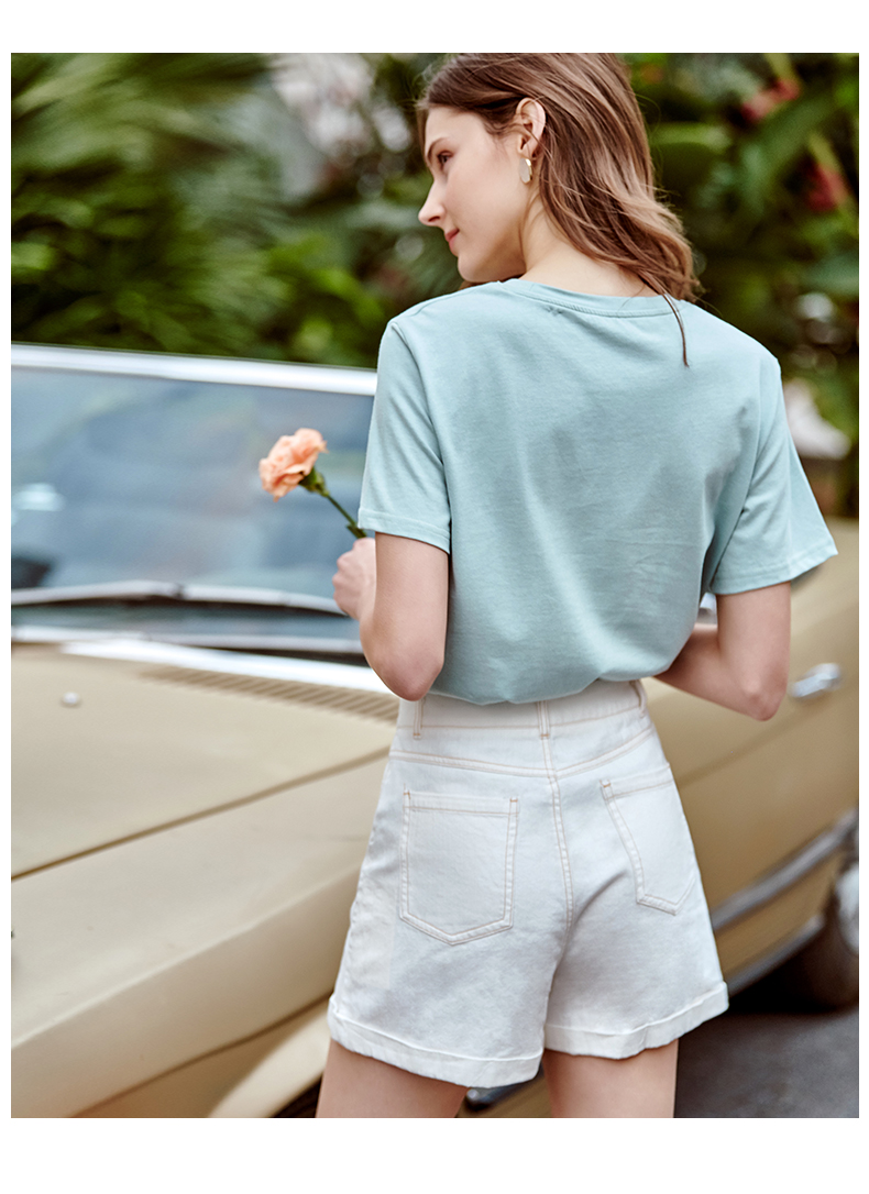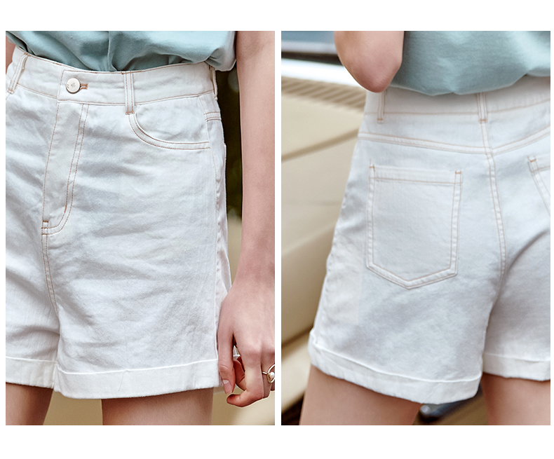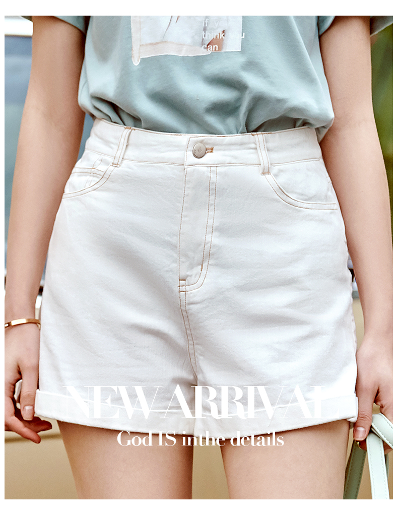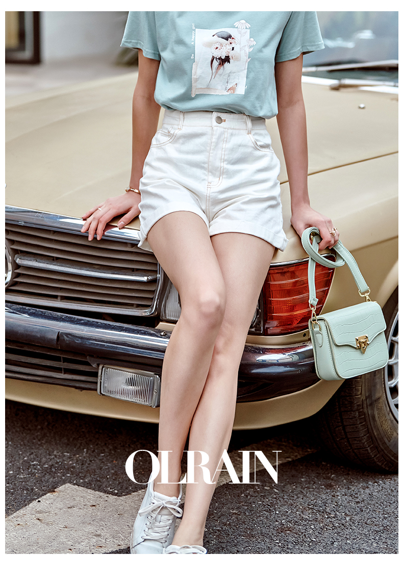 欧芮儿白色牛仔裤女2021春夏新款高腰显瘦气质炸街折边微宽松短裤