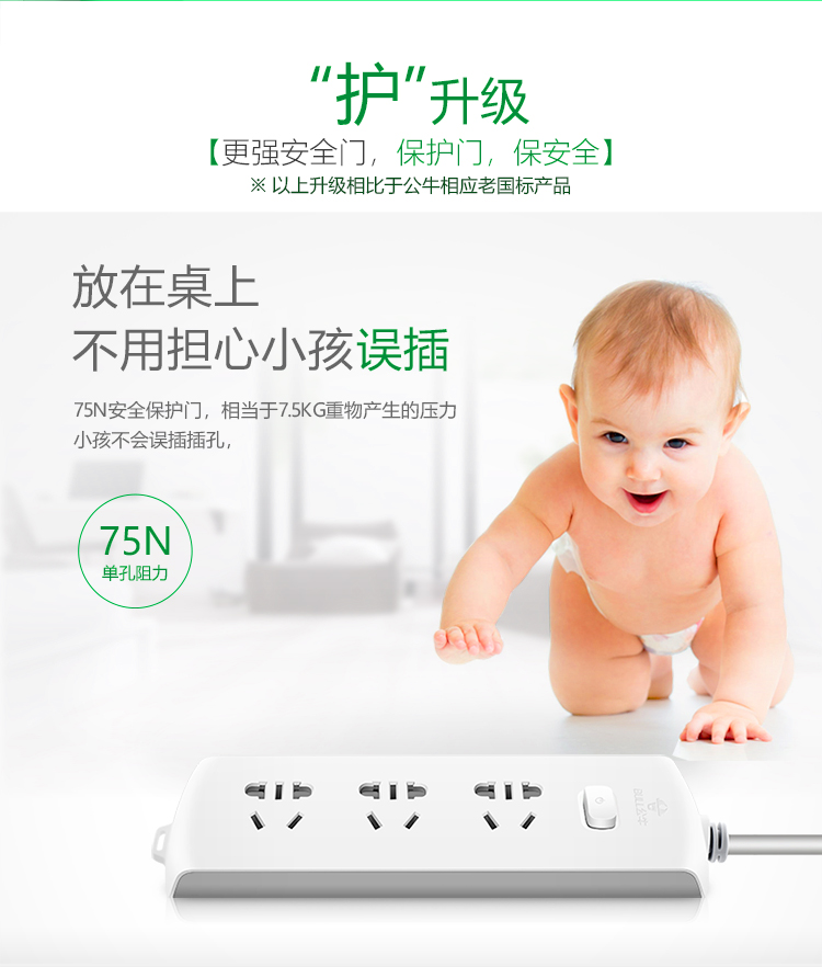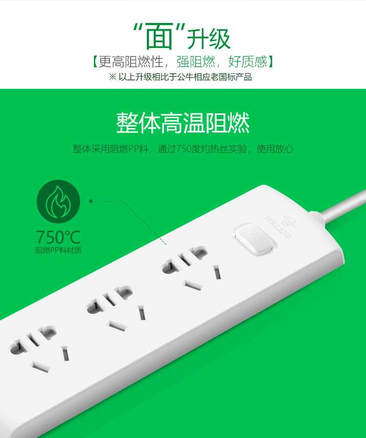 公牛(BULL)新国标插座 插线板/插排/排插/接线板/拖线板 3位总控全长5米 GN-B2030