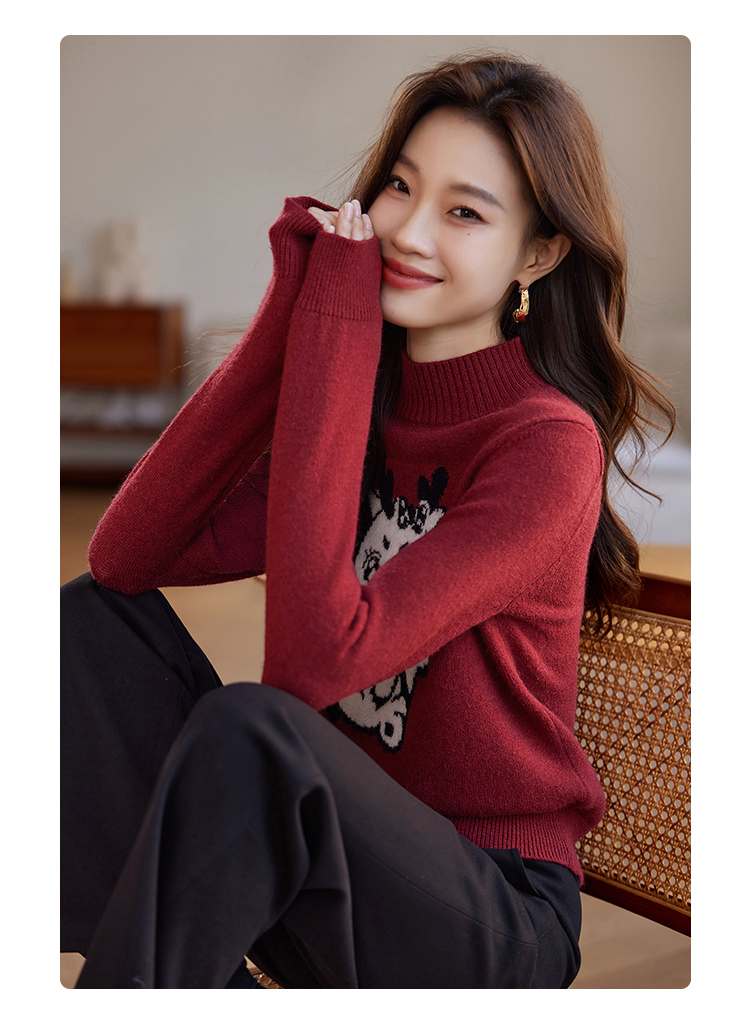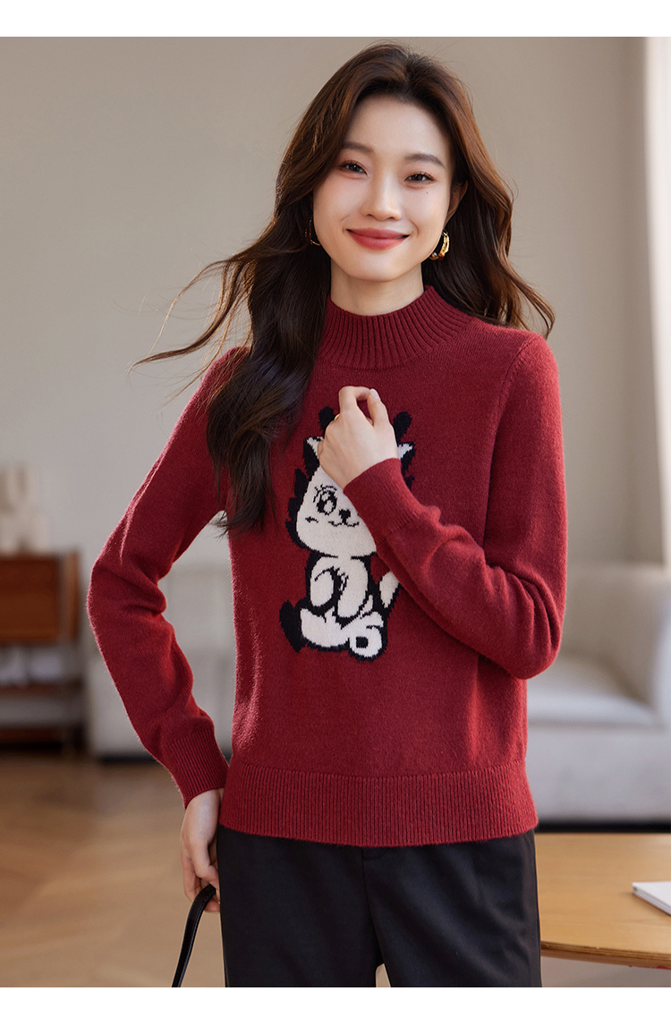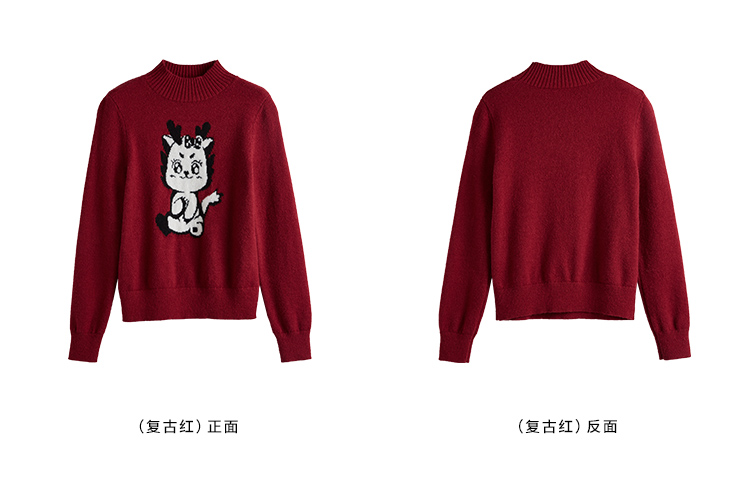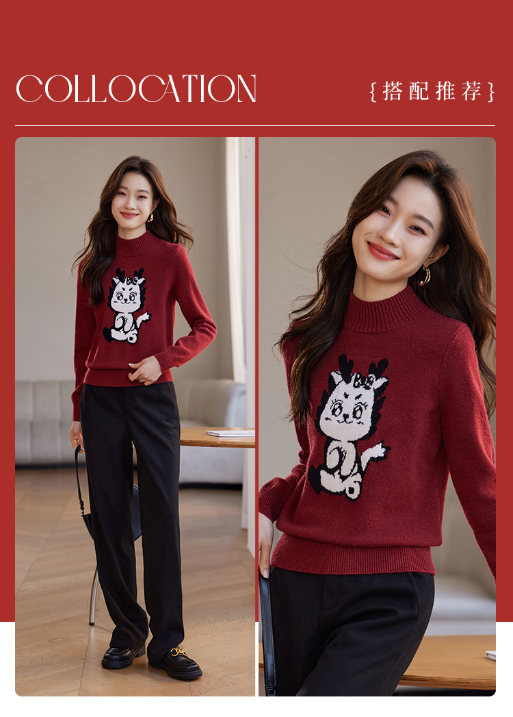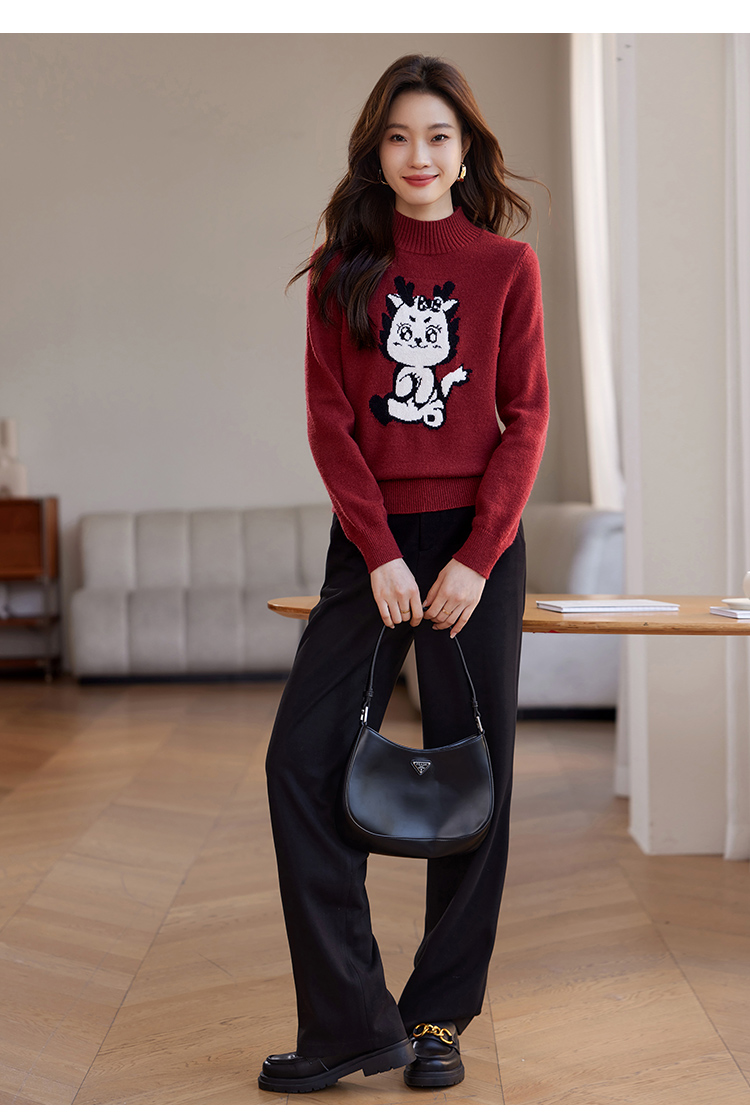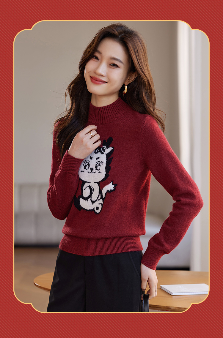 【年终特卖】熙世界2025过年红色毛衣慵懒本命年半高领针织衫女秋冬