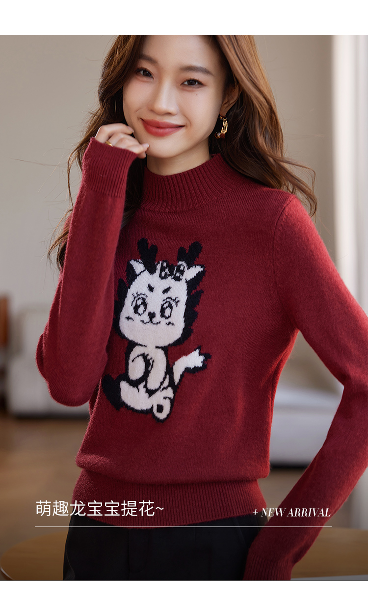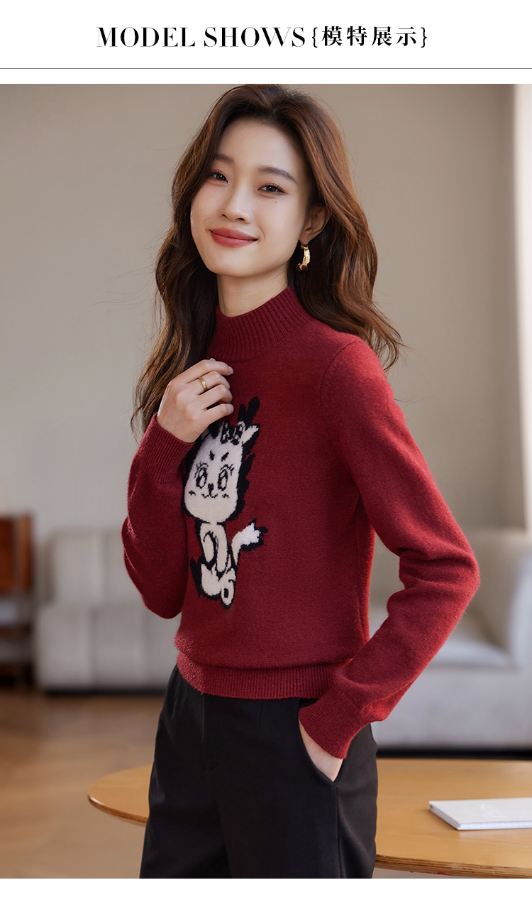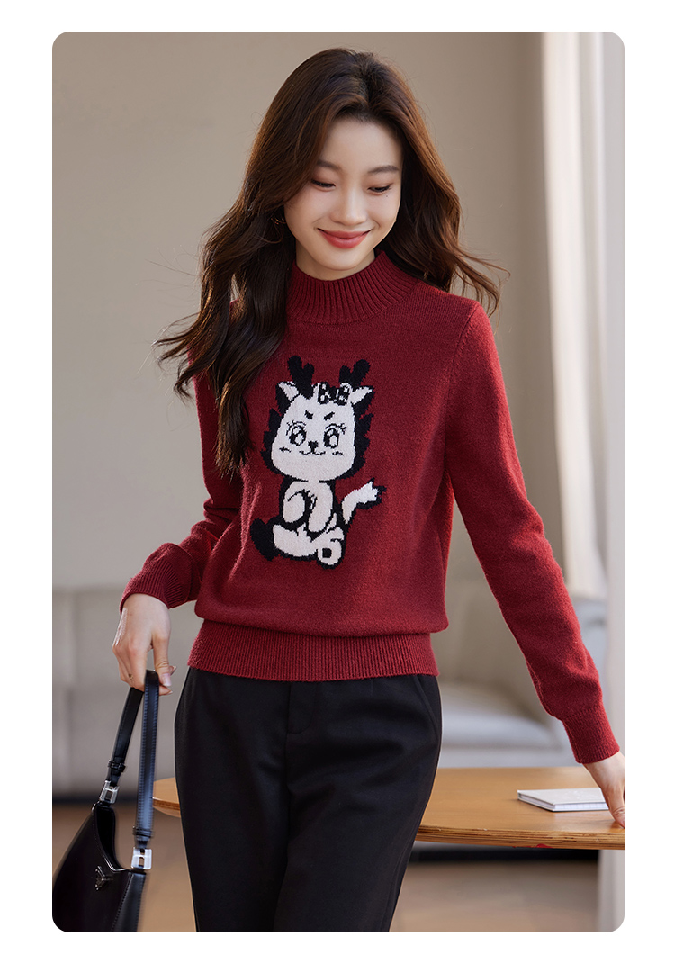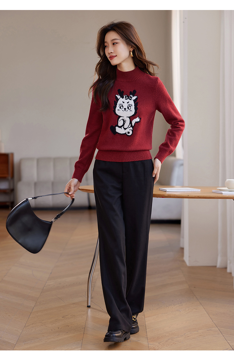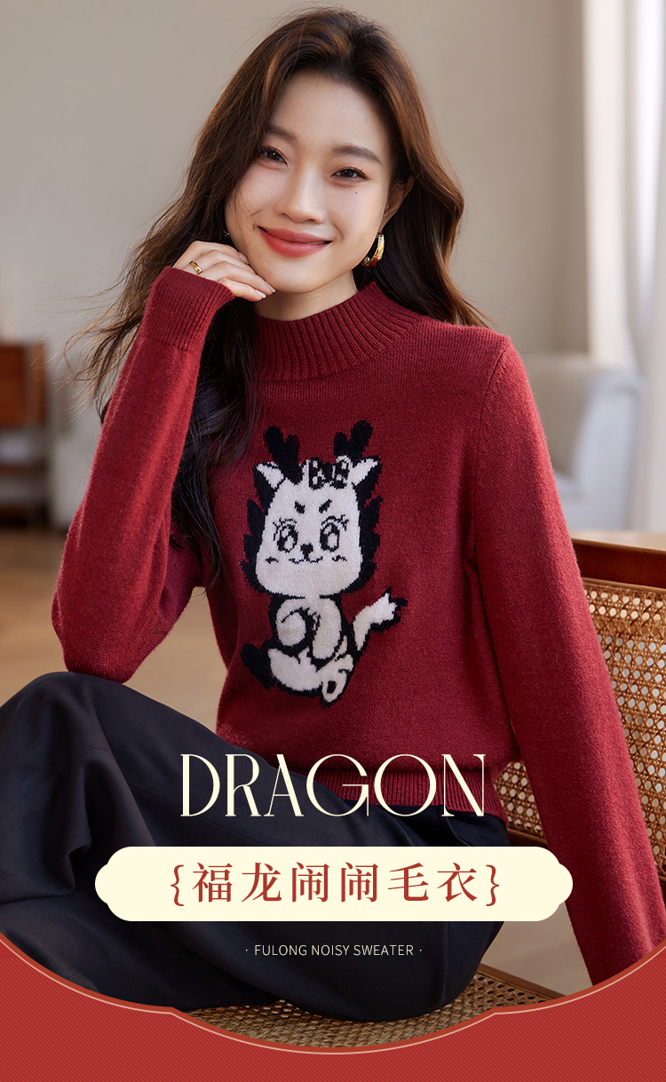 【年终特卖】熙世界2025过年红色毛衣慵懒本命年半高领针织衫女秋冬