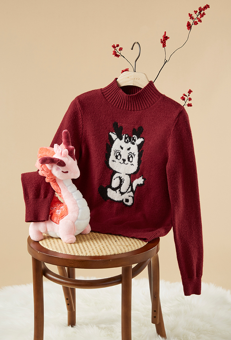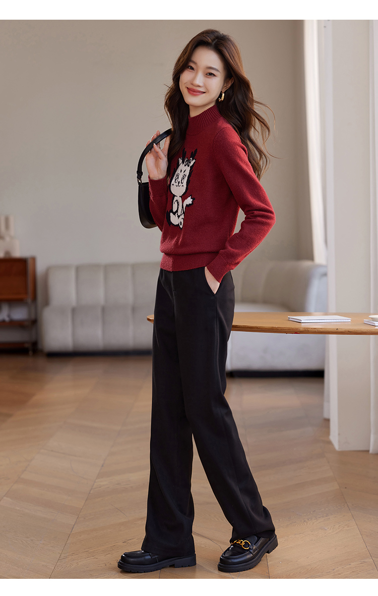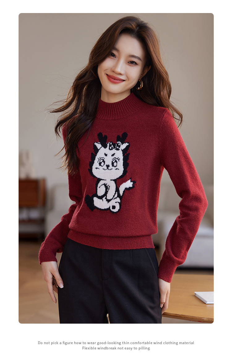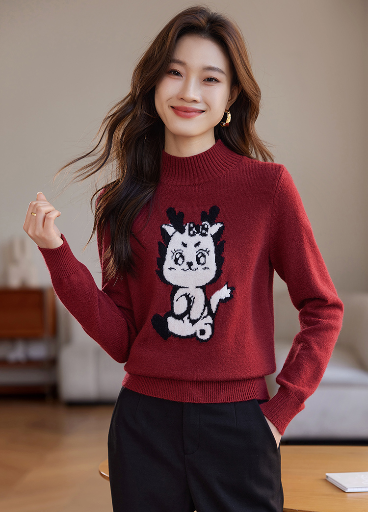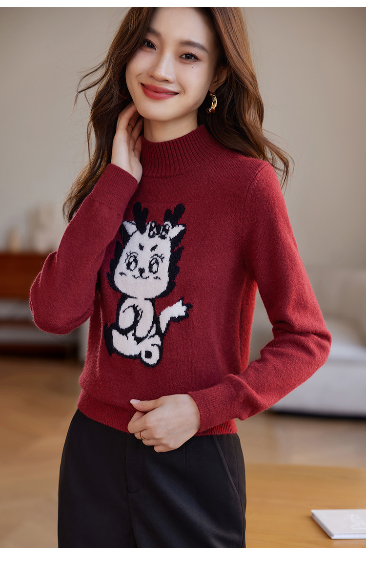【年终特卖】熙世界2025过年红色毛衣慵懒本命年半高领针织衫女秋冬