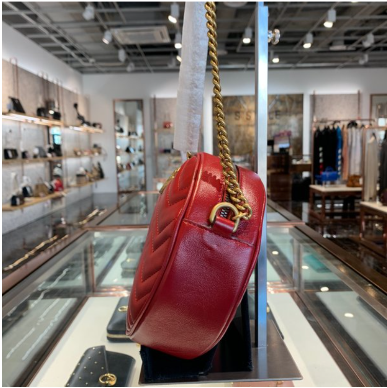 奥莱Gucci GG Marmont迷你圆形单肩包(红色)550 154 0OLET 6438JPY带授权招加盟代理