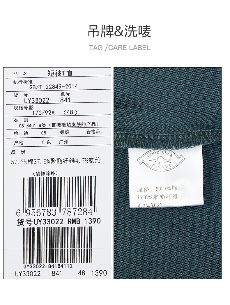 GOOD LUCK/德鲨棉混纺舒适柔软多彩净色简约圆领短袖T恤LY13533