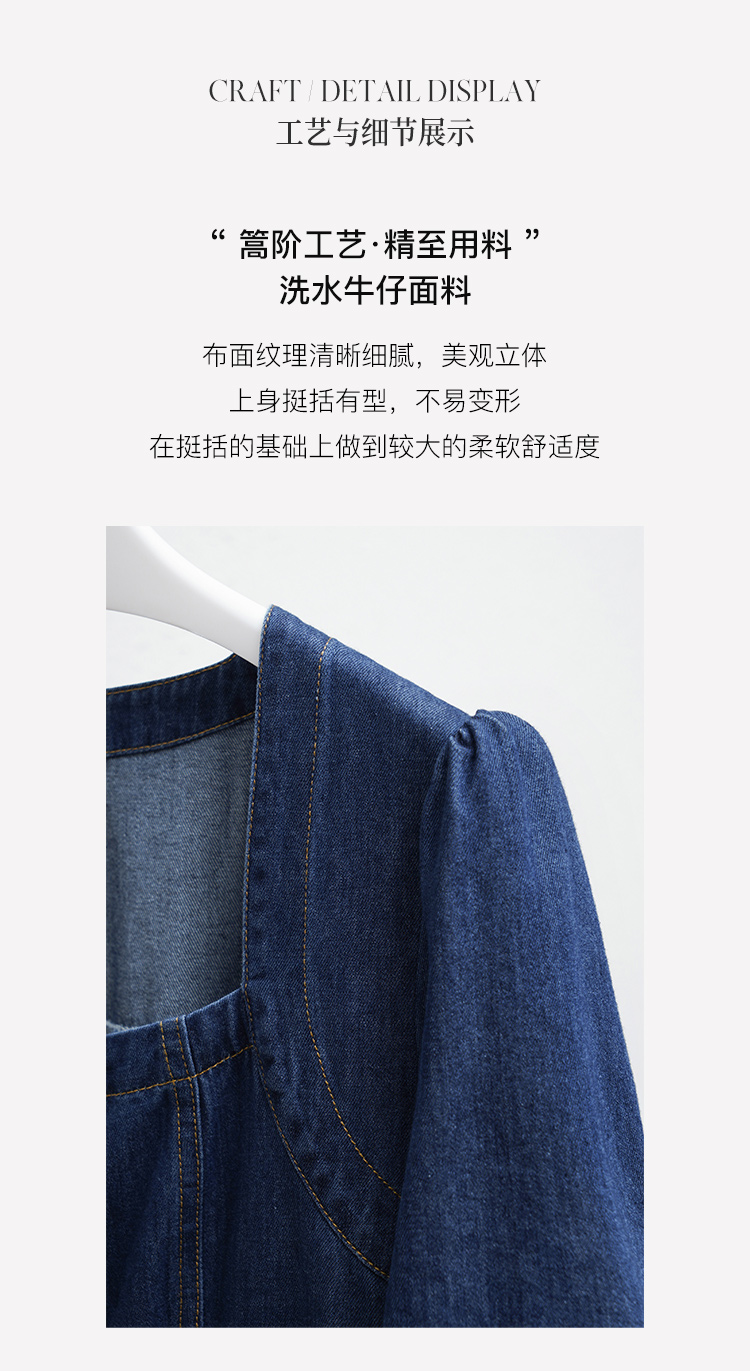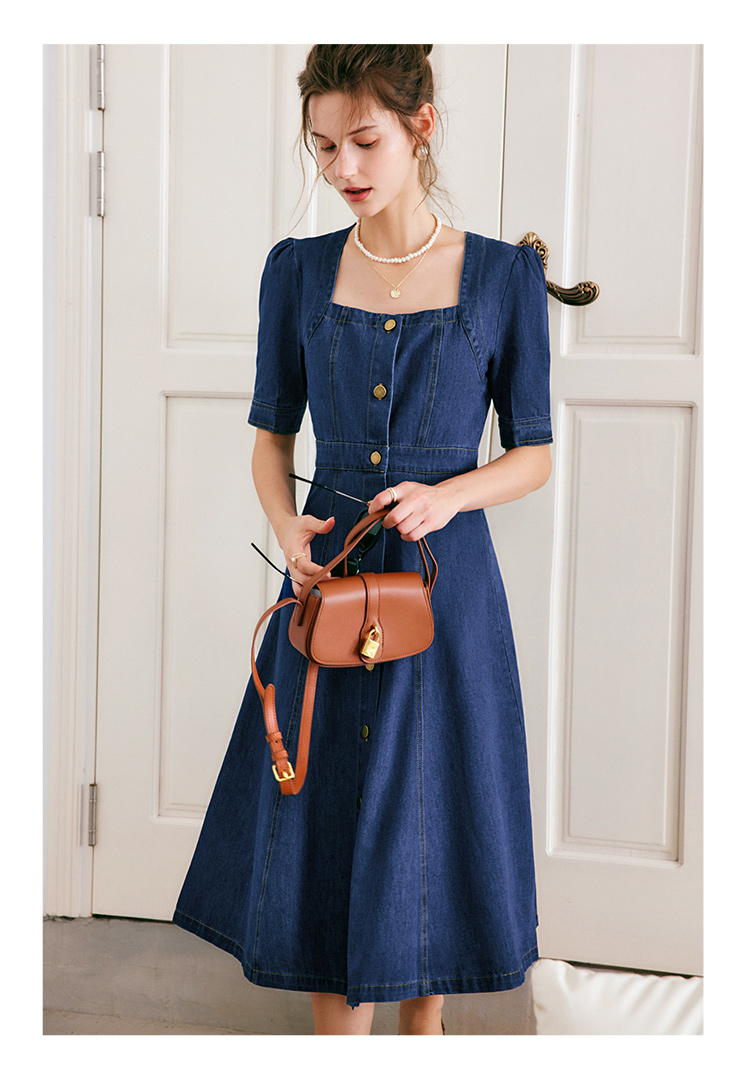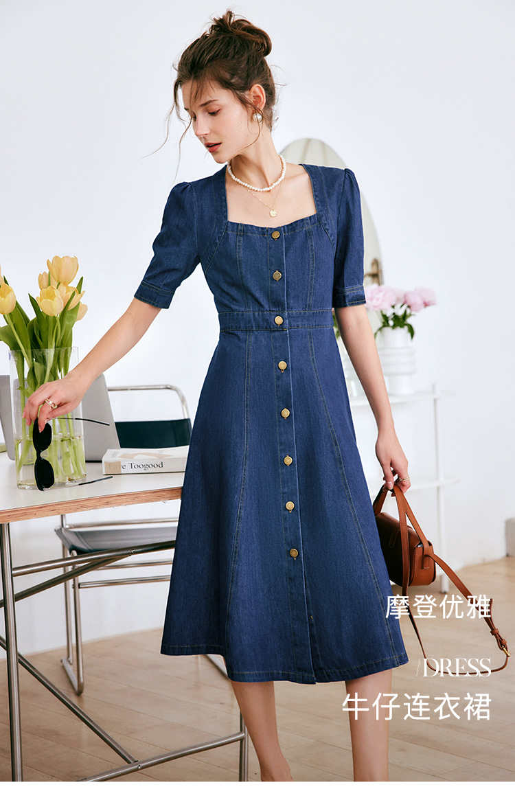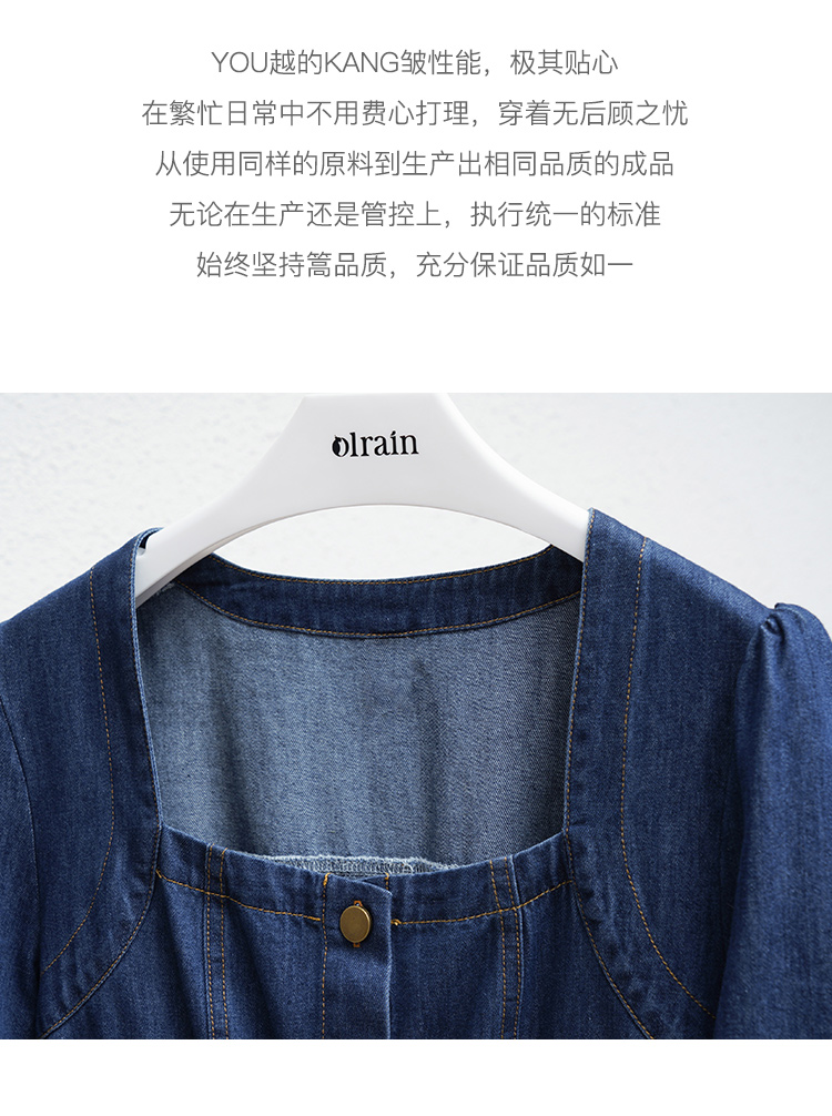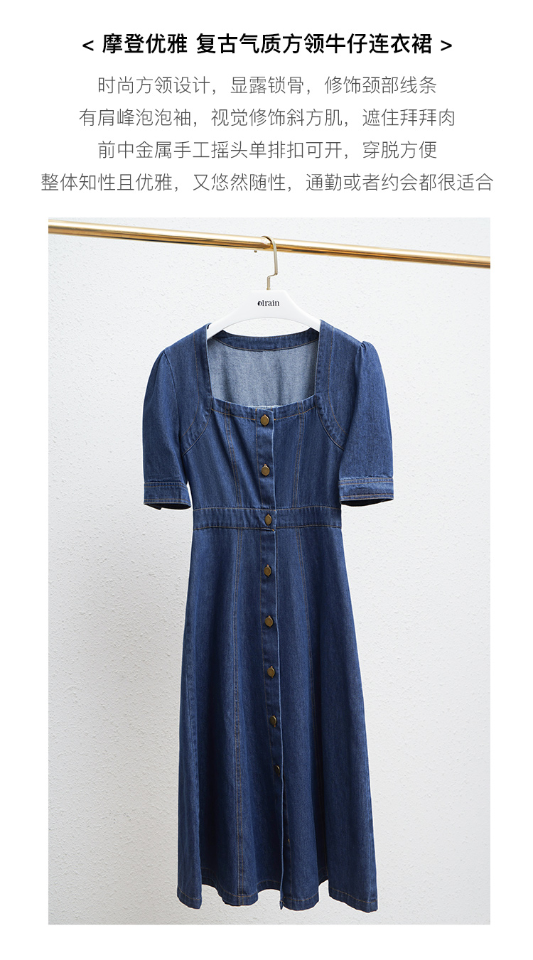 欧芮儿牛仔连衣裙女夏季2022新款法式收腰显瘦复古气质设计感裙子