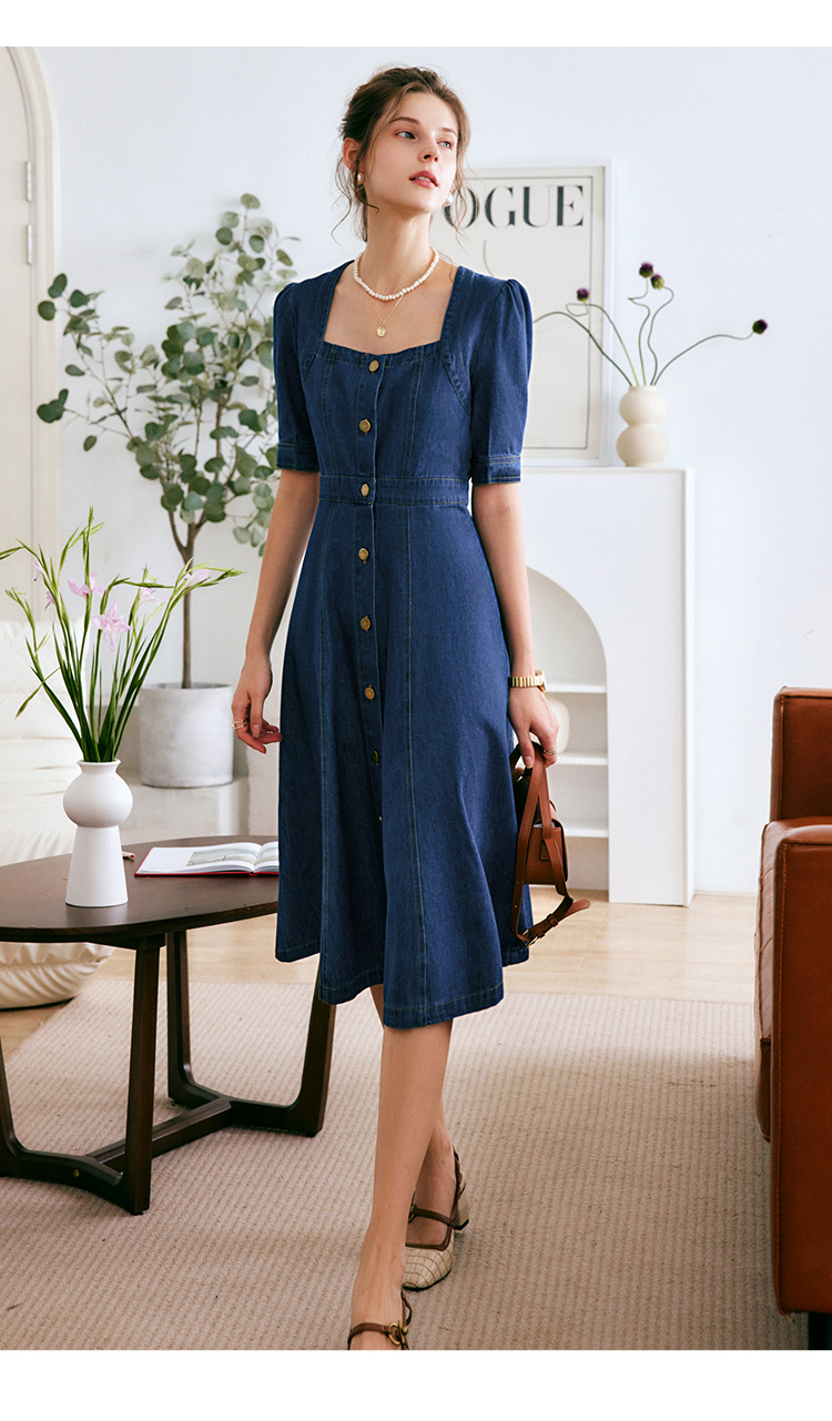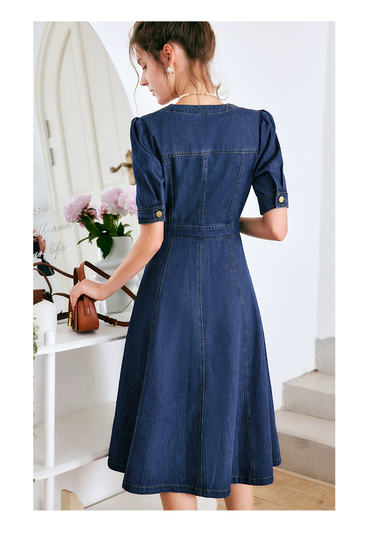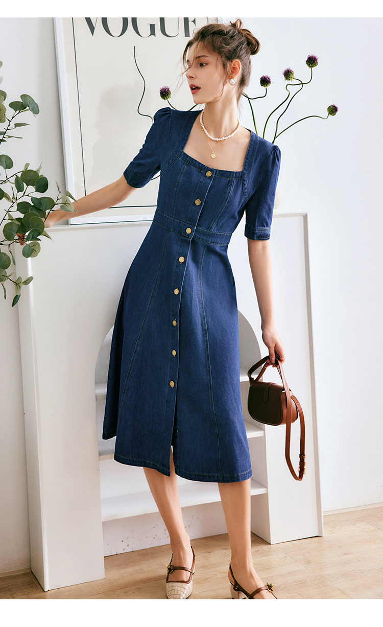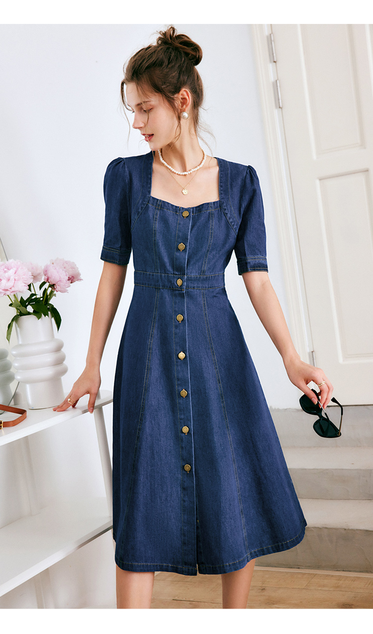 欧芮儿牛仔连衣裙女夏季2022新款法式收腰显瘦复古气质设计感裙子