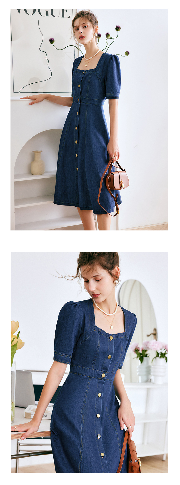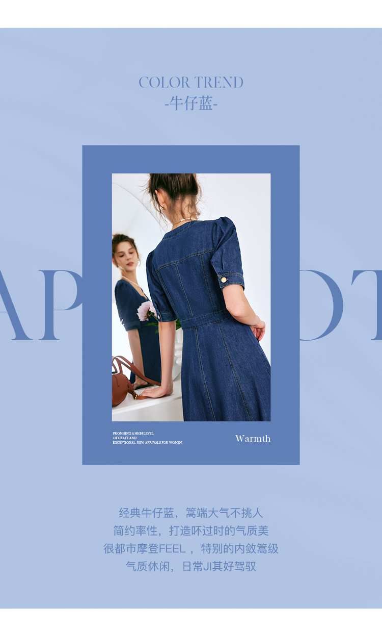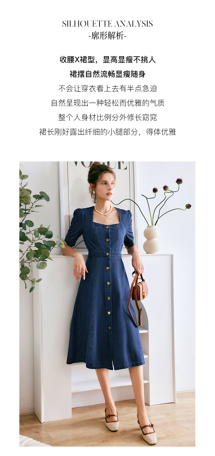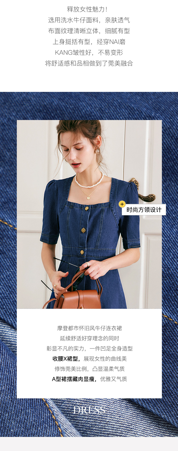 欧芮儿牛仔连衣裙女夏季2022新款法式收腰显瘦复古气质设计感裙子