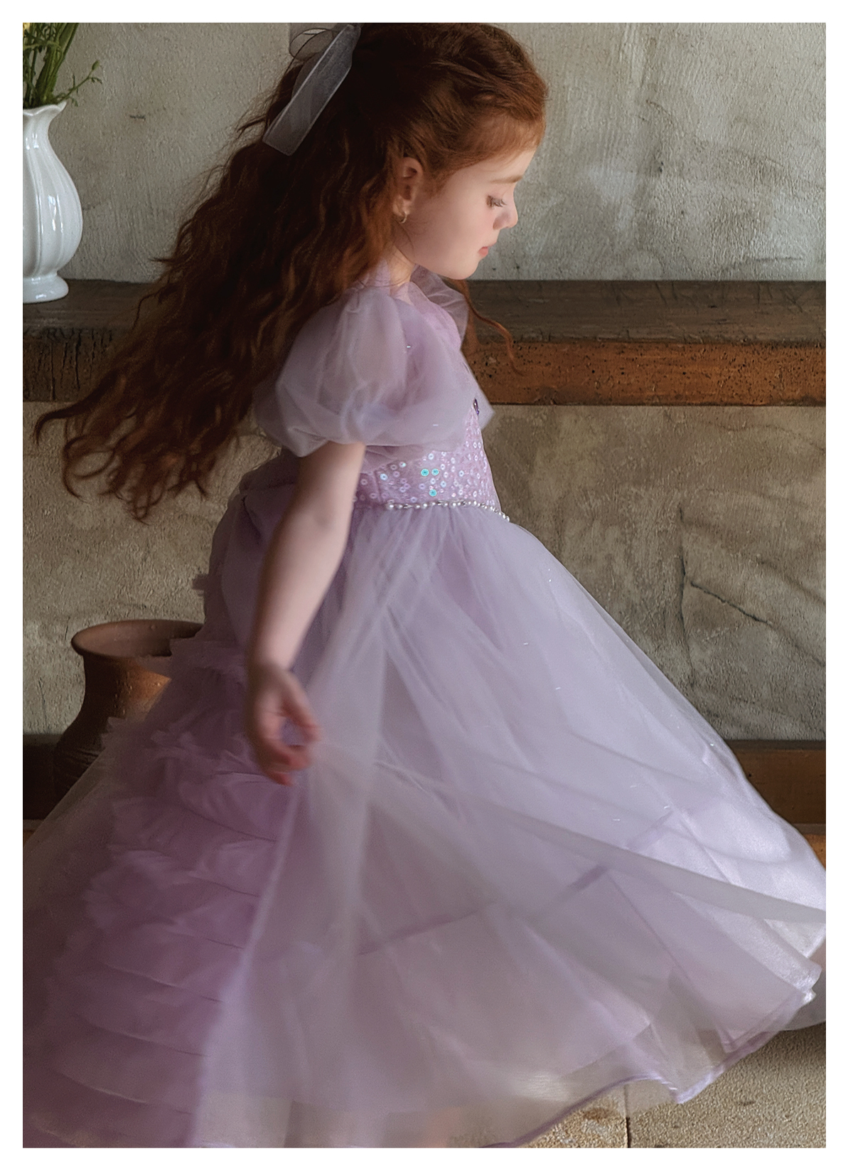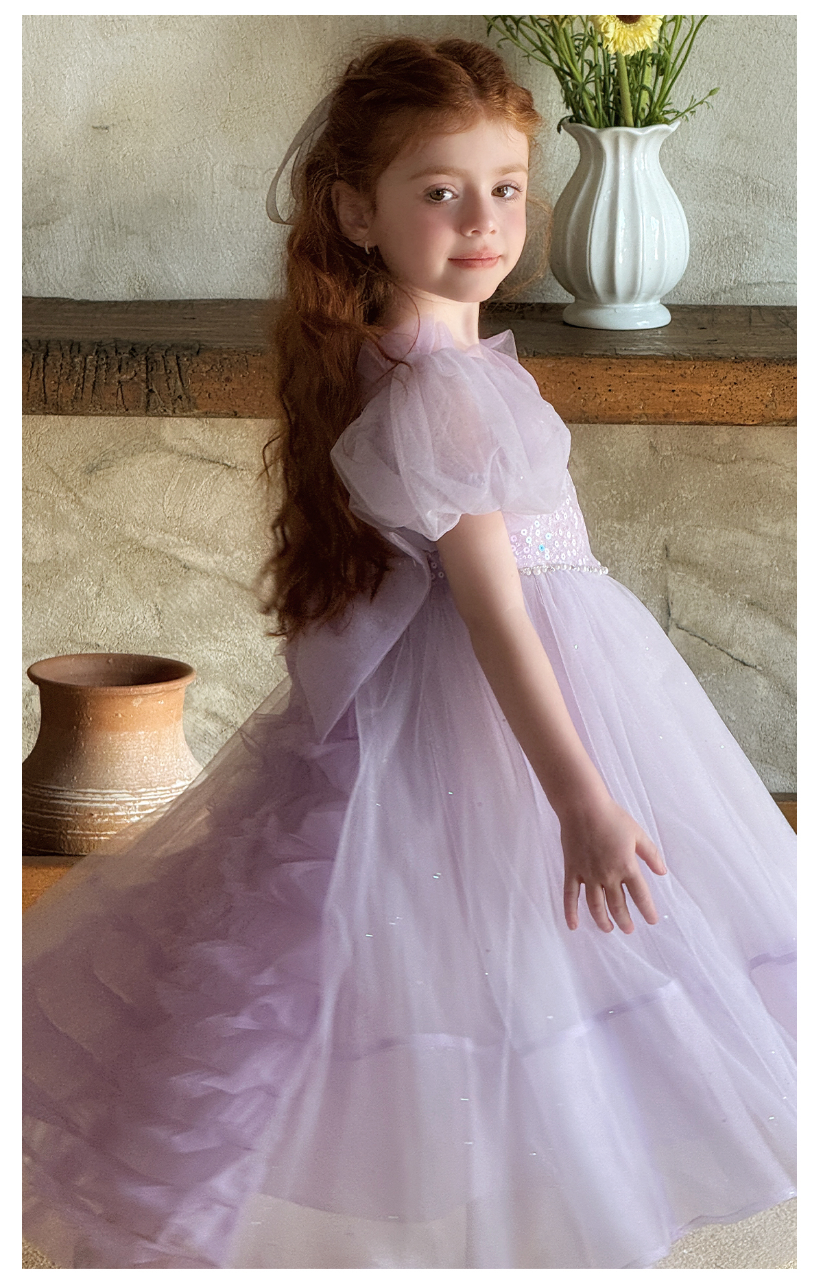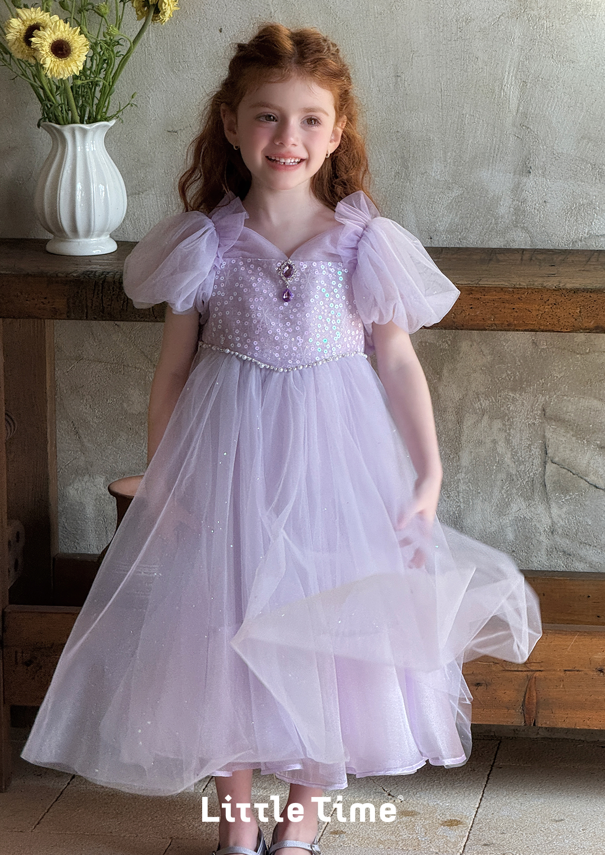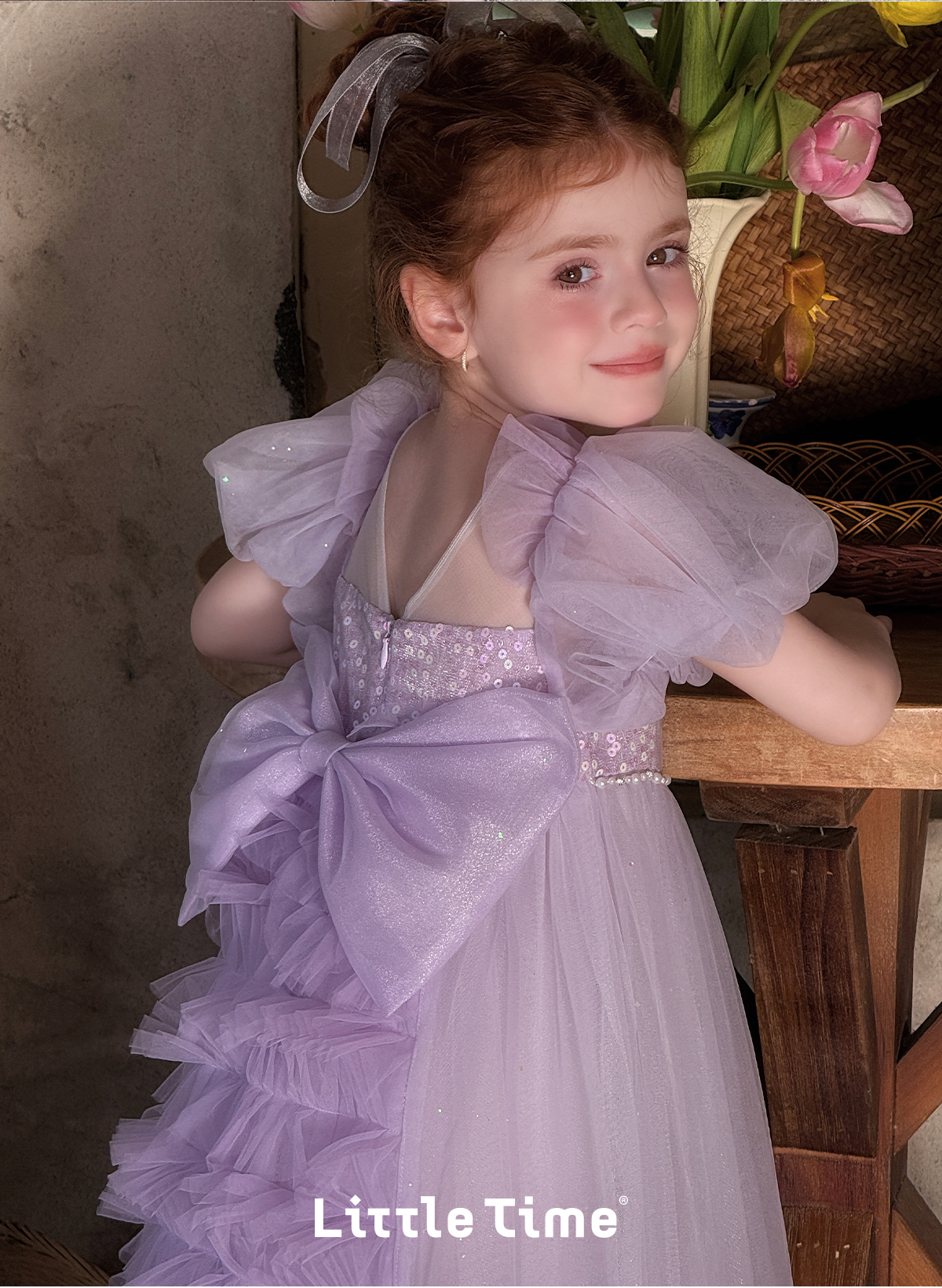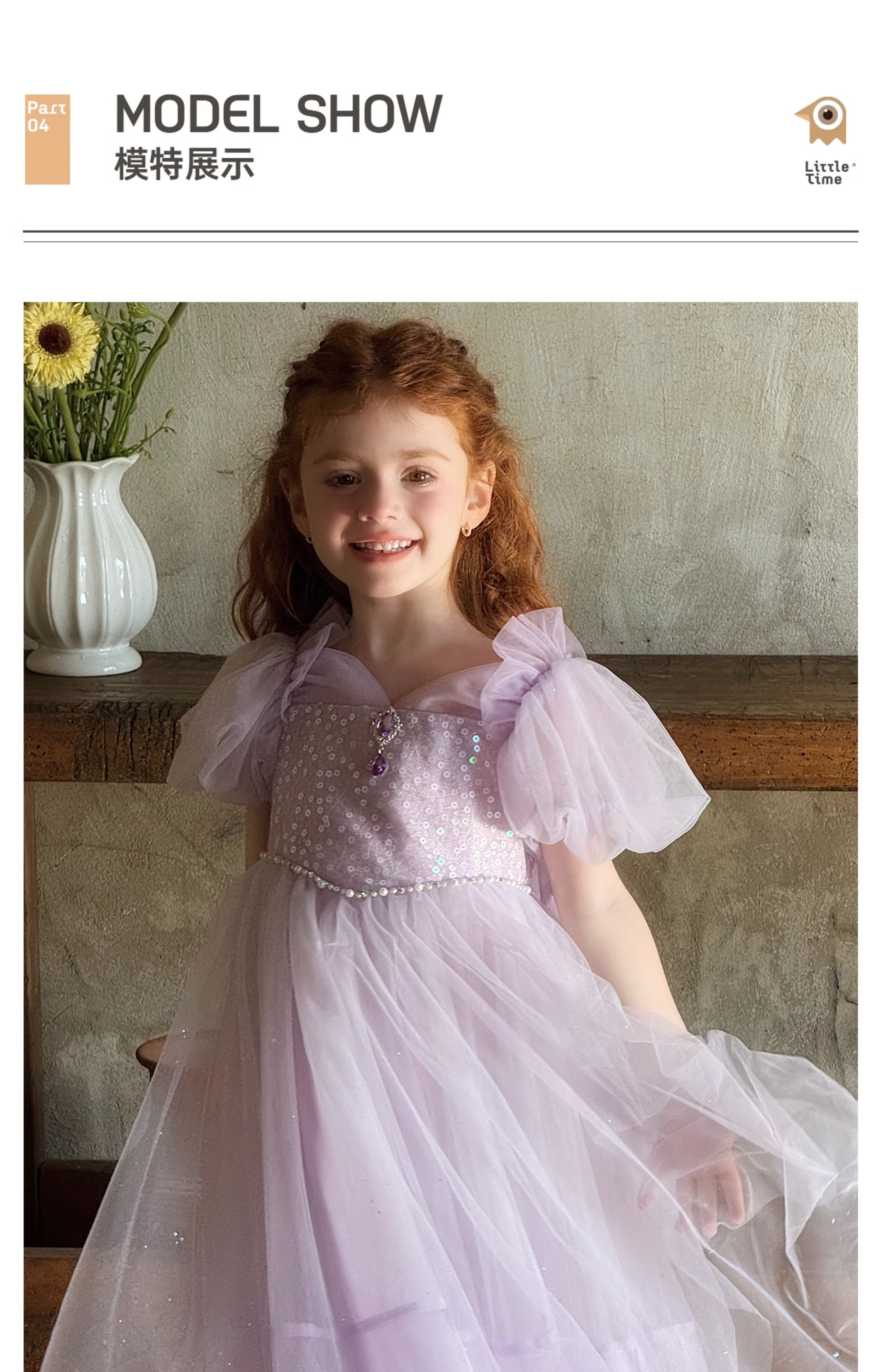 Little time女童连衣裙夏季2025新款儿童洋气时尚蝴蝶结公主裙