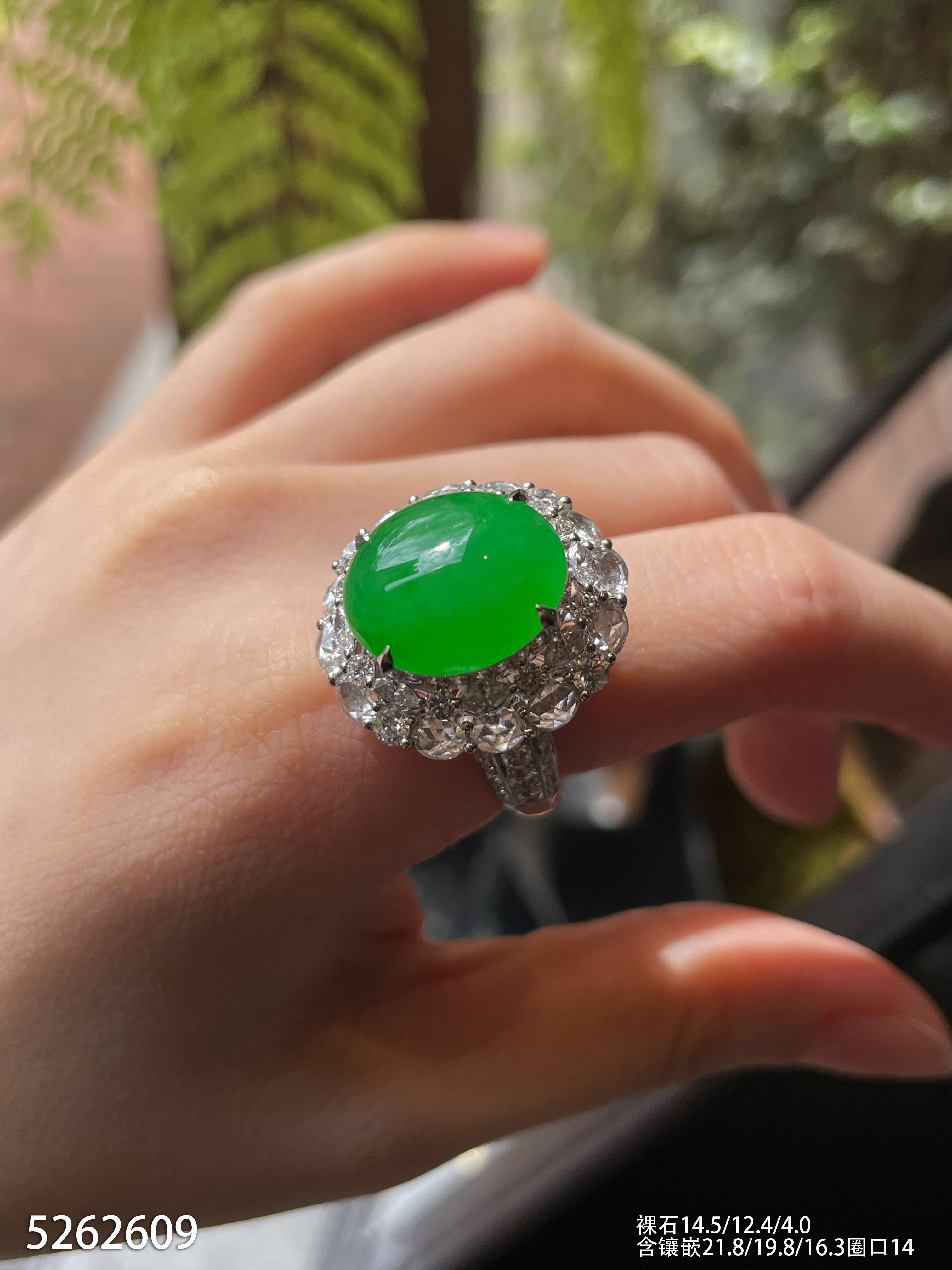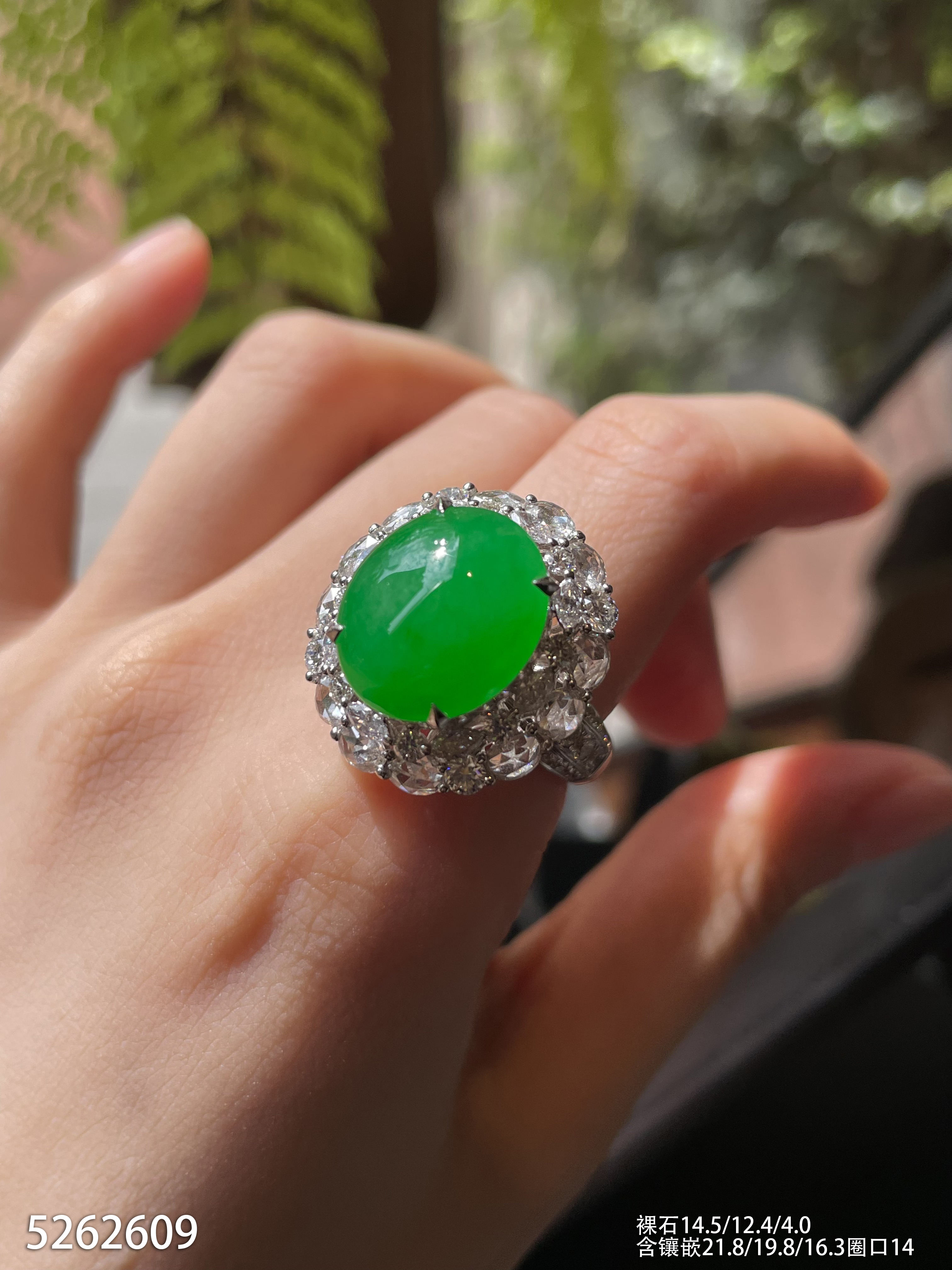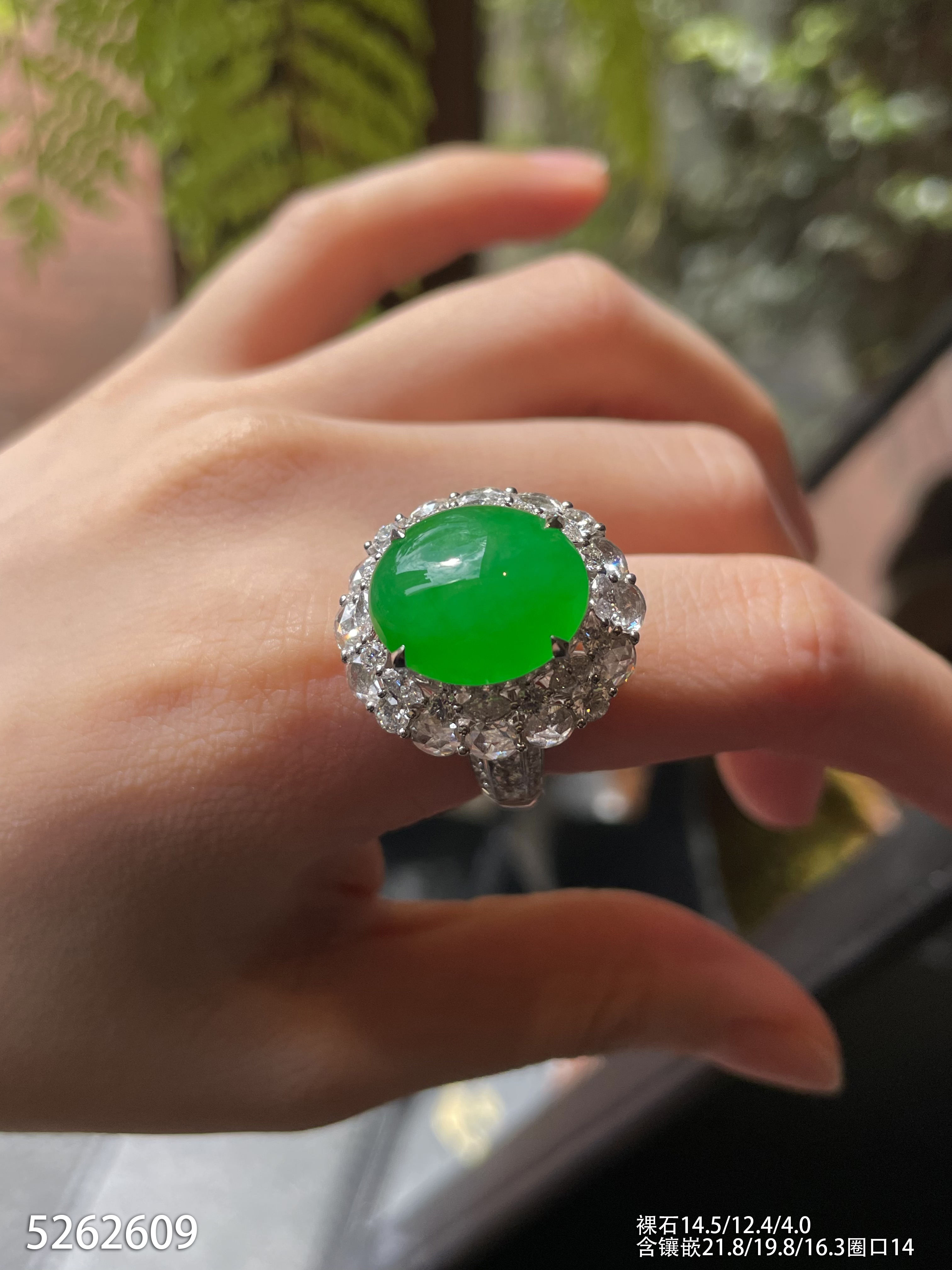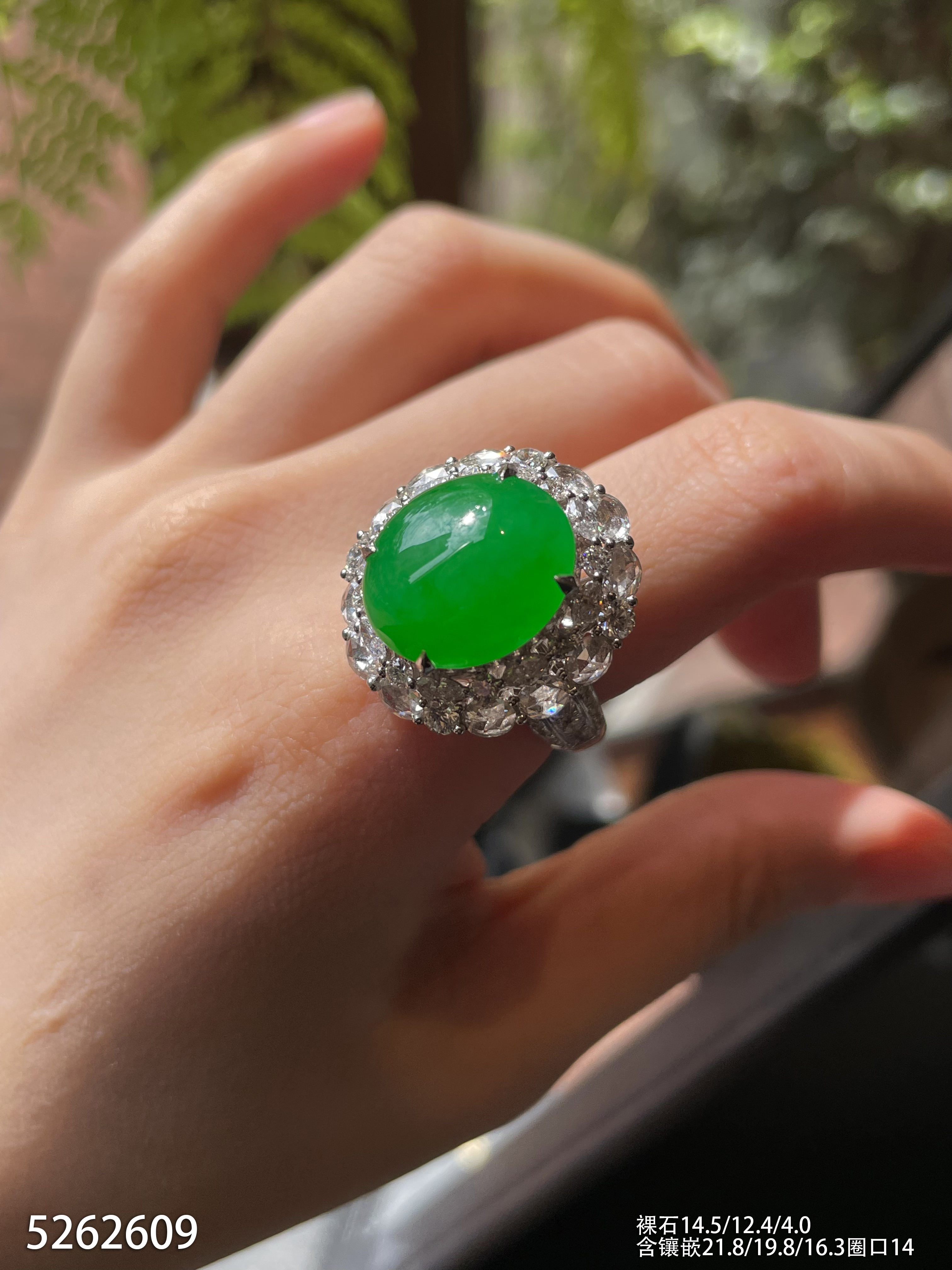 冰艳绿蛋面戒指【5262609】具体价格微信咨询