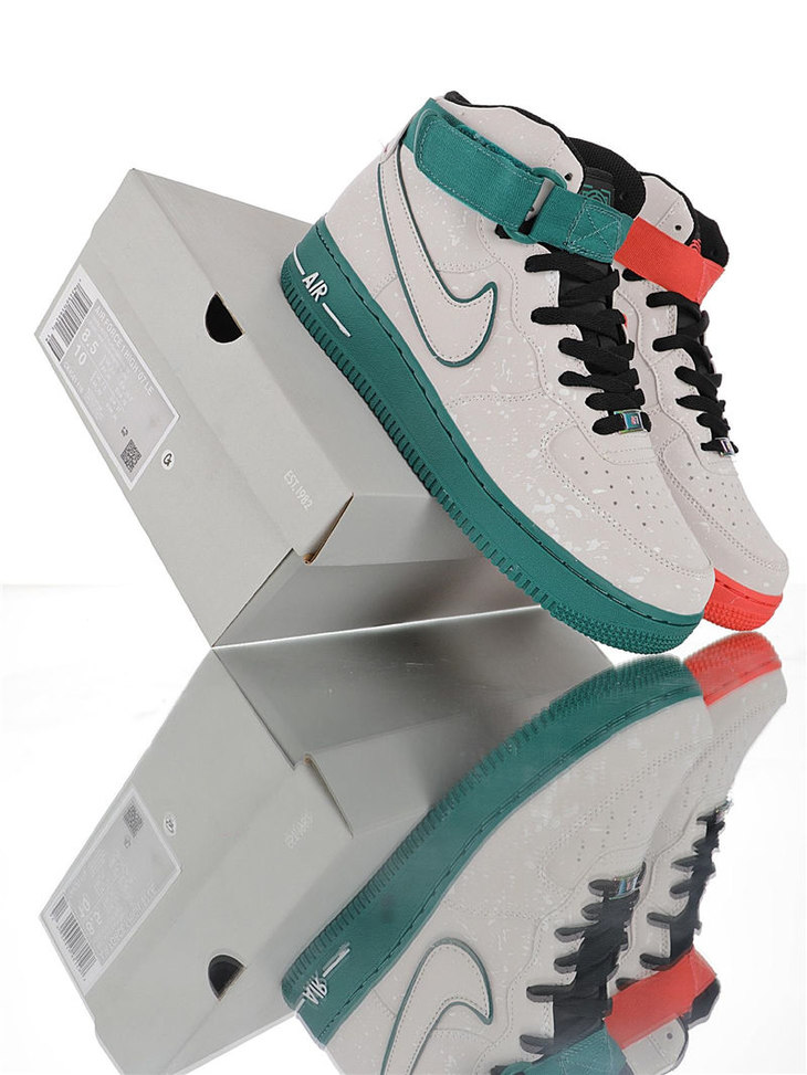 耐克Nike Air Force 1 High '07 LE 中国区篮球世界杯限定 采用反光革鞋面材质 内置全掌air sole气垫 耐克高帮运动板鞋 白绿红鸳鸯3M