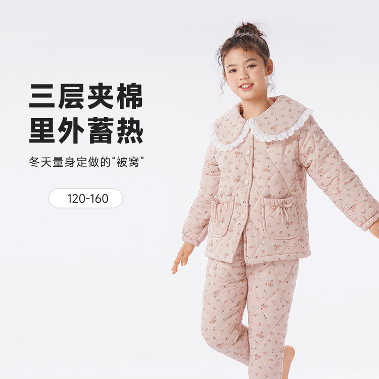 都市丽人睡衣女童云朵绵儿童家居服长袖长裤中厚夹棉套装JHH9D9
