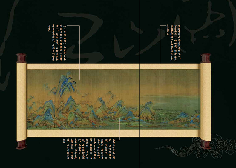 王希孟《千里江山图》卷将华夏山河的宏伟囊括于画卷中,以巅峰水准的艺术作品诉说了对宏伟、壮丽、家国天下的情怀与眷恋;