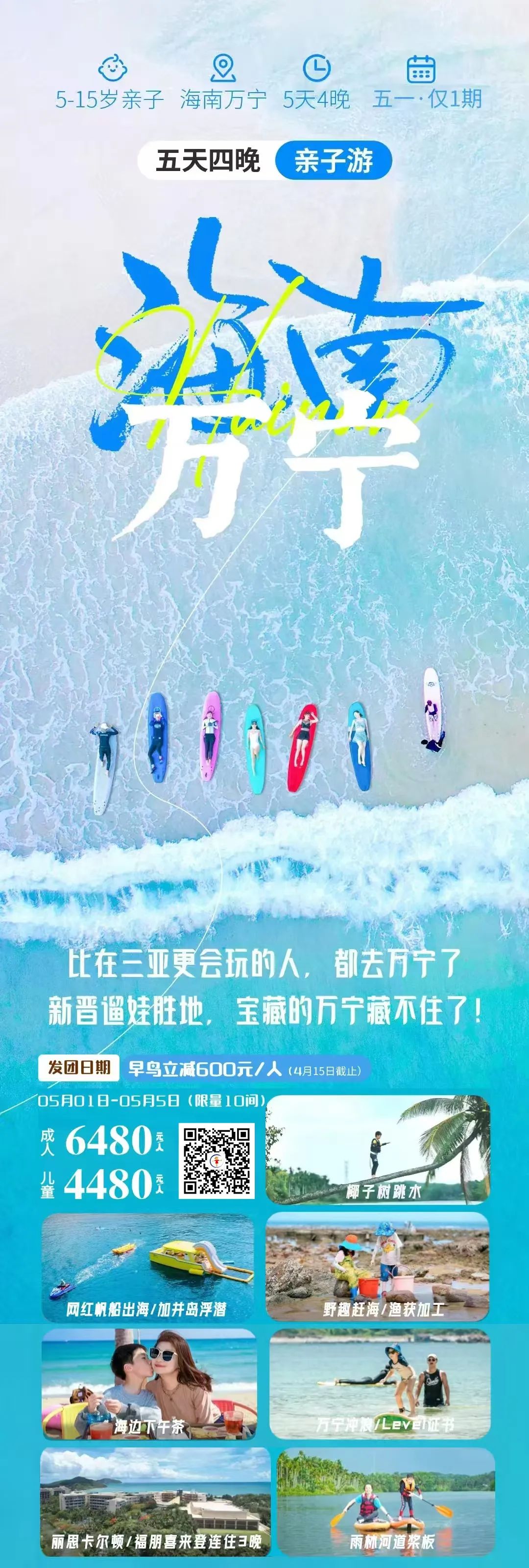 除三亚以外的另类海南 万宁亲子5天4晚:桨板SUP穿越雨林秘境 冲浪浮潜 海岛chill度假的一万种可能!