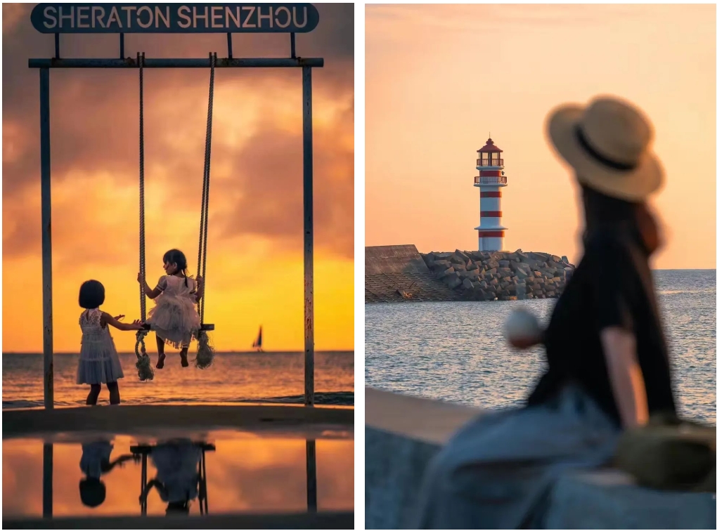 下午:下岛以后,简单洗漱,前往万宁神州半岛沙滩,开启海边家庭下午茶(以家庭为单位),享受自由遛娃时光~