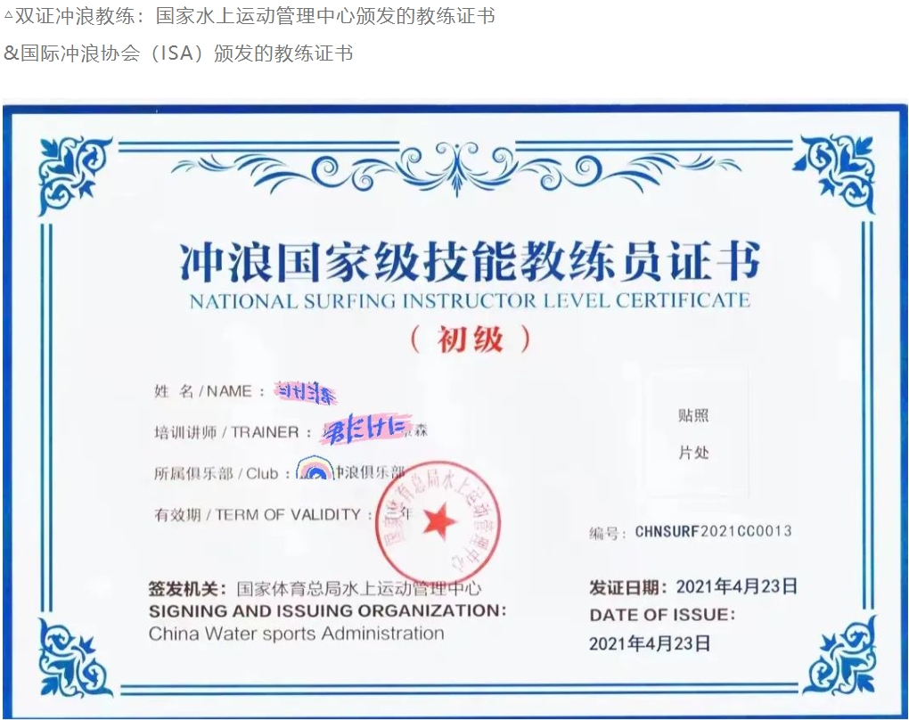Tips:该证书由国家体育总局水上运动管理中心颁发,由管理中心统一快递,快递到付,敬请理解