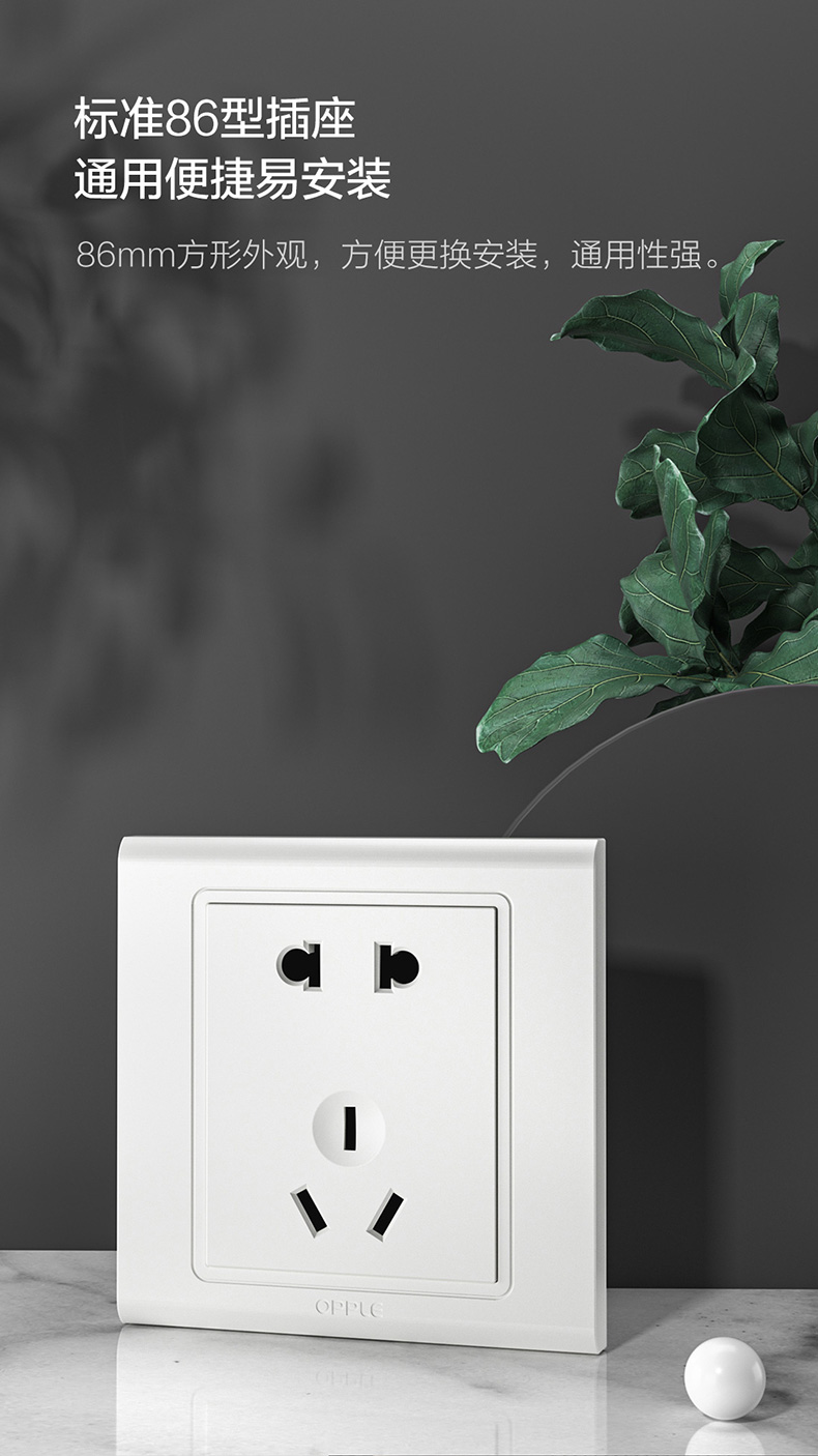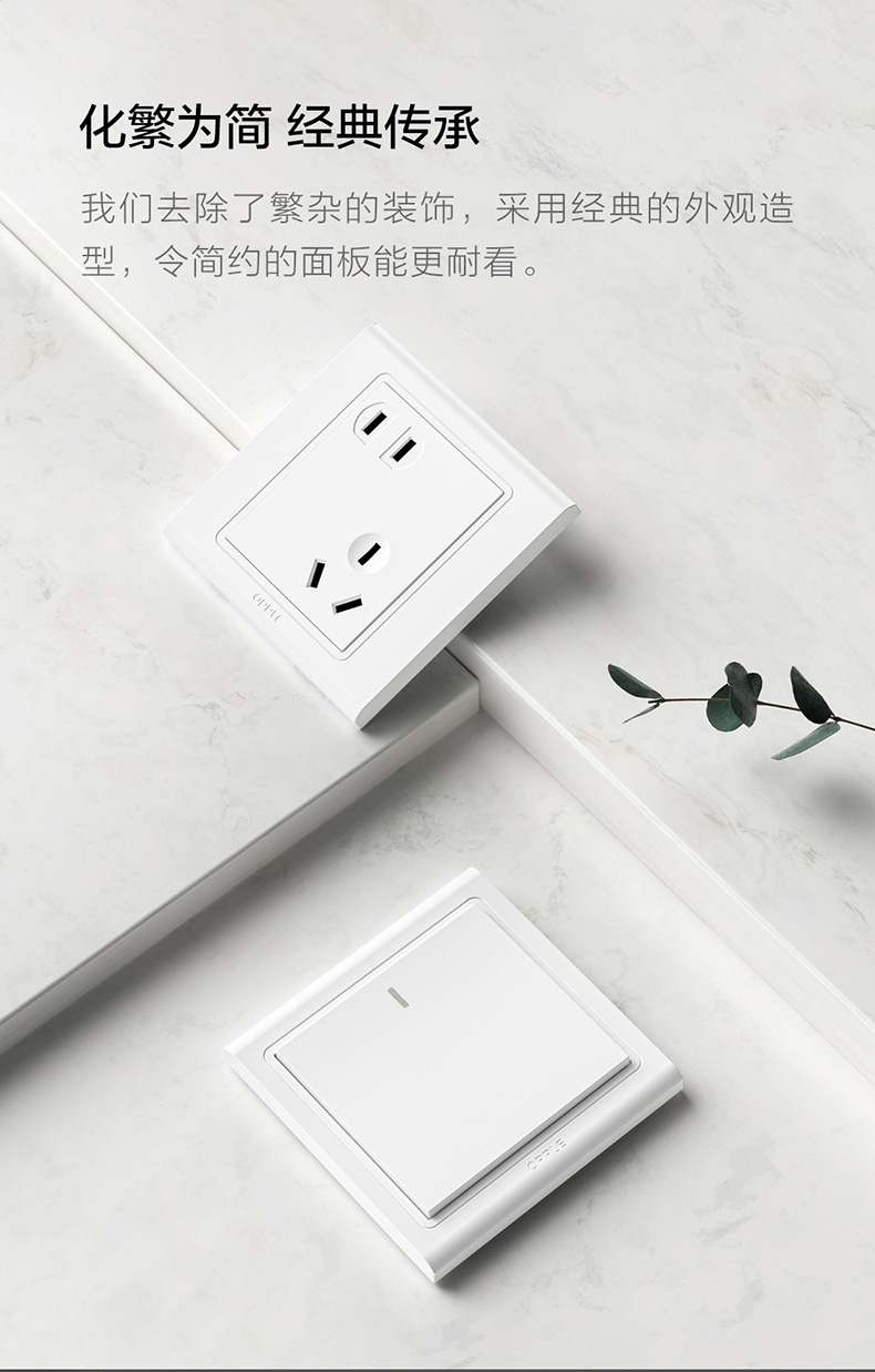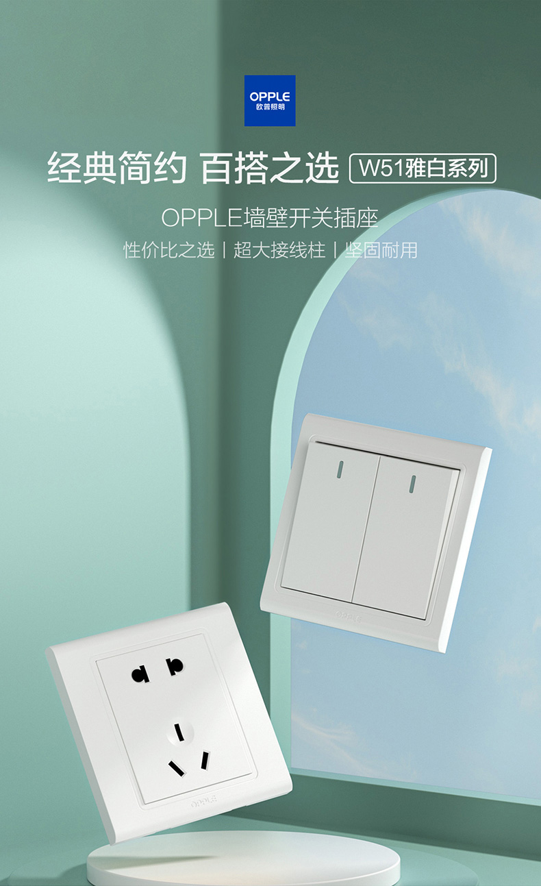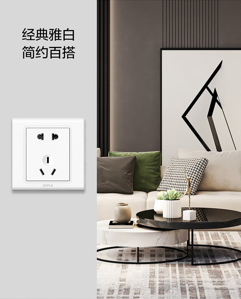 欧普(OPPLE)开关插座W51悦动雅白五孔usb16a多孔空调面板墙壁家用86型