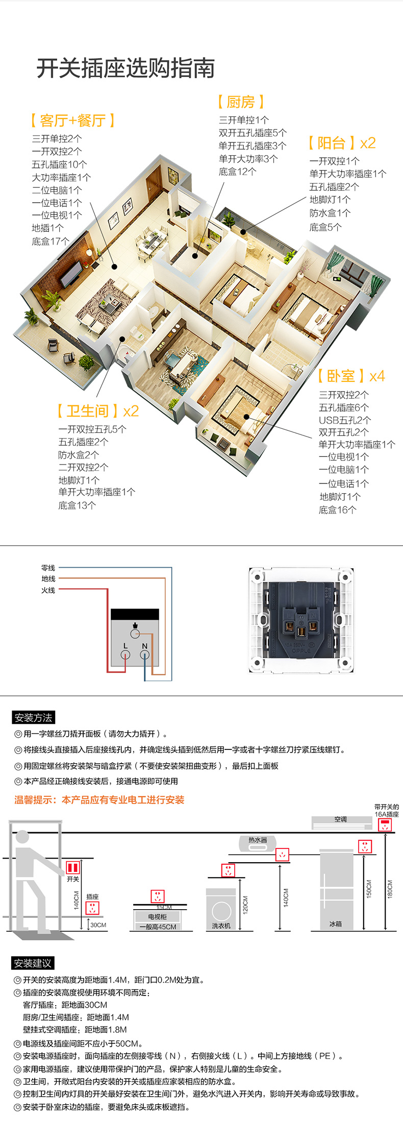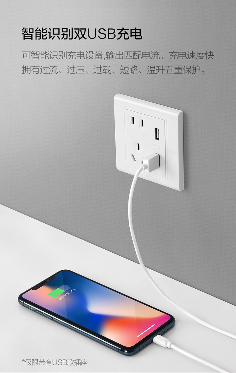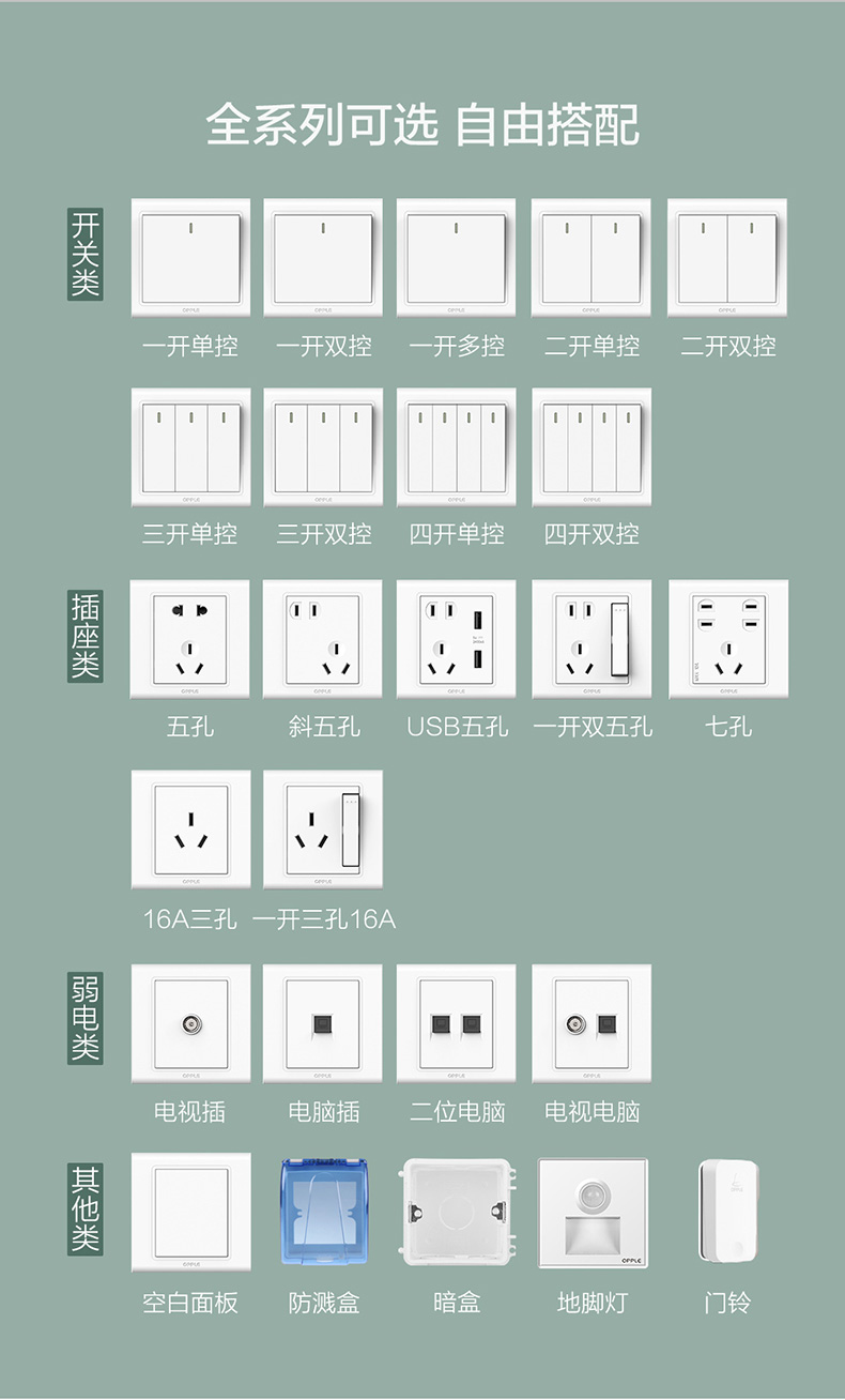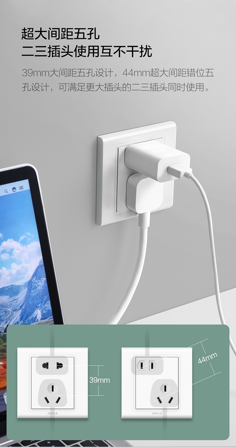 欧普(OPPLE)开关插座W51悦动雅白五孔usb16a多孔空调面板墙壁家用86型
