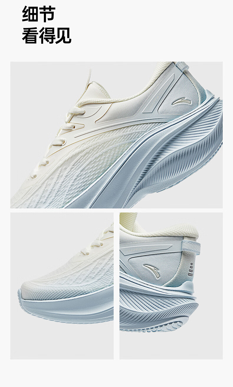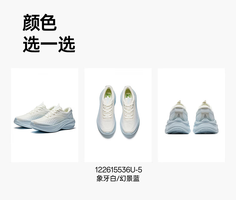 安踏女跑鞋缓震透气跑步鞋厚底增高跳绳鞋舒适运动鞋女 象牙白/幻景蓝122615536U-5
