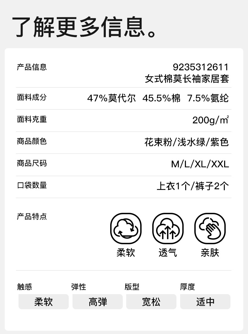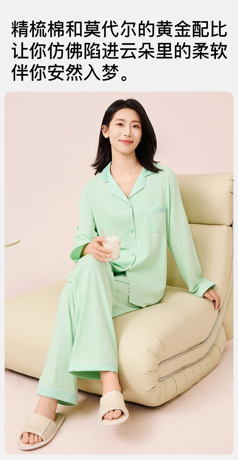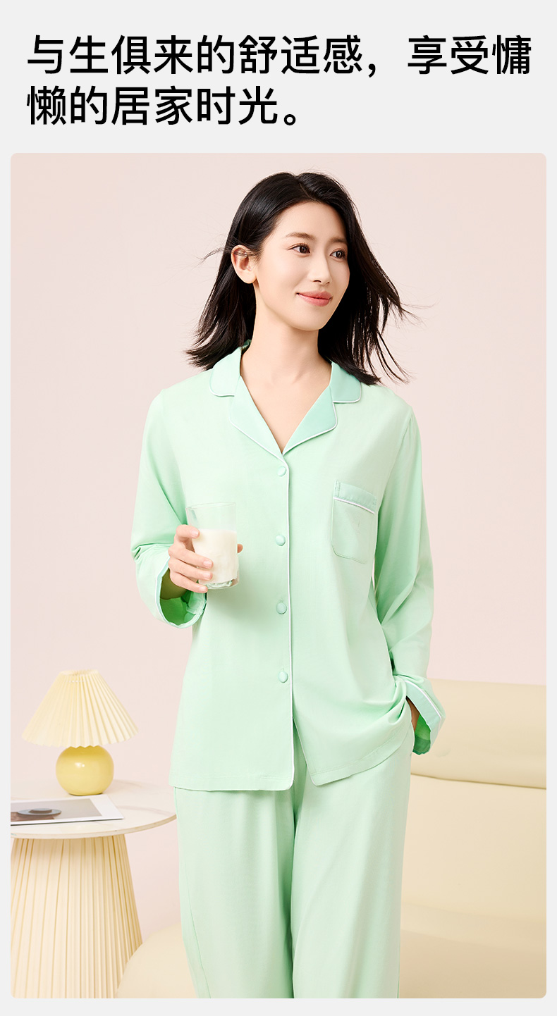 【莫代尔棉】爱帝女士睡衣长袖长裤家居服两件套