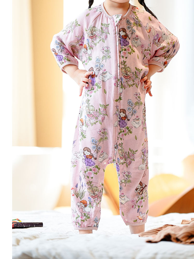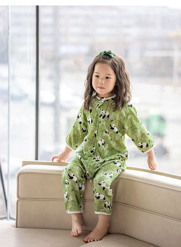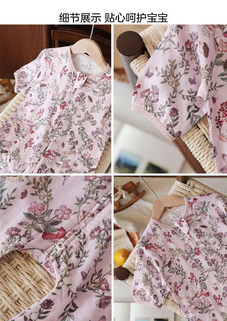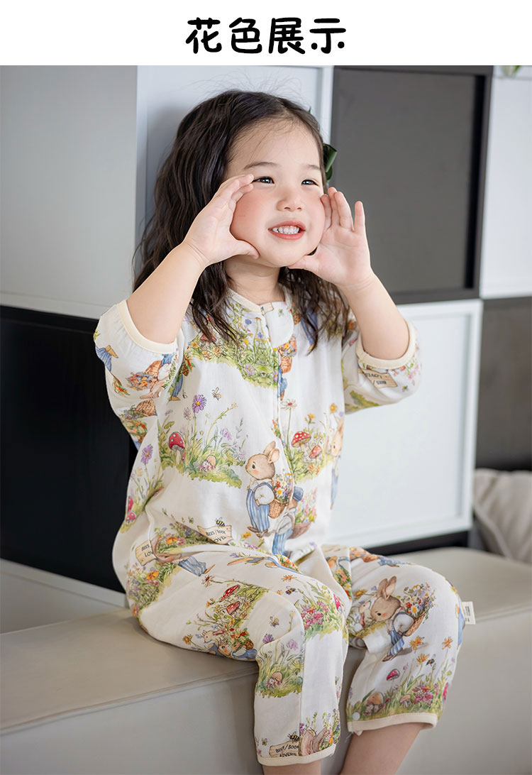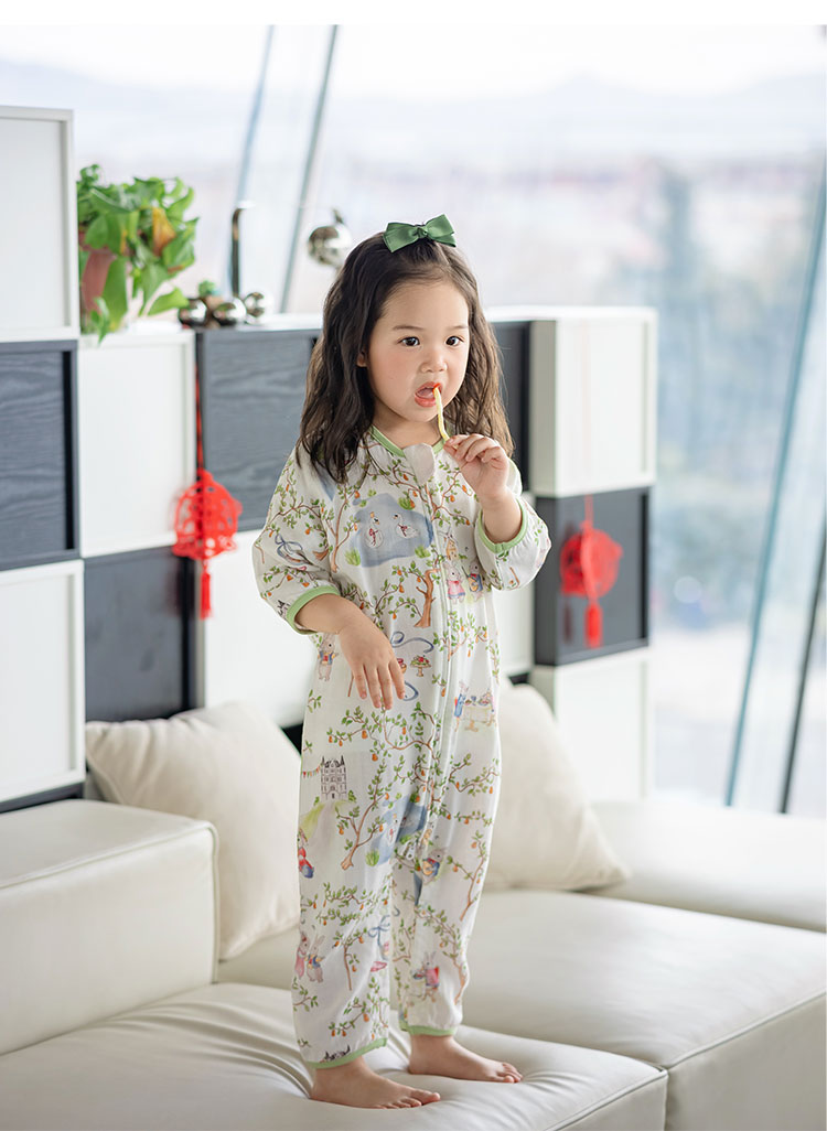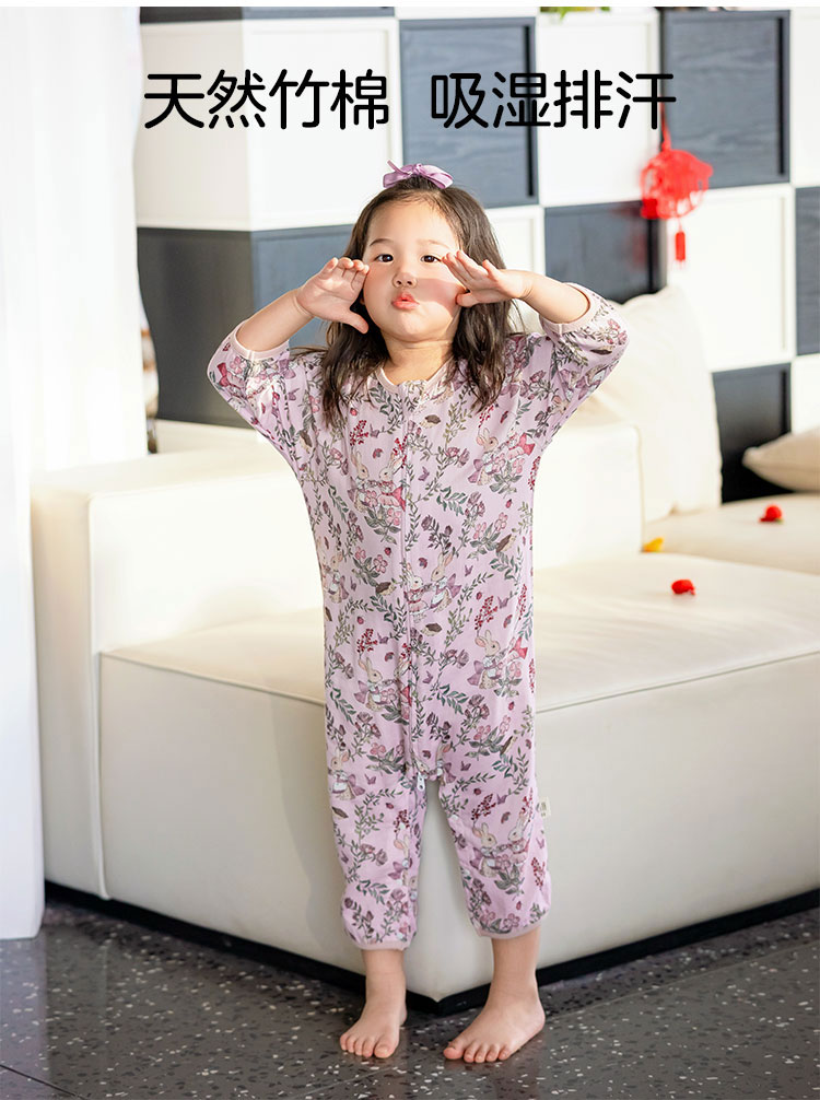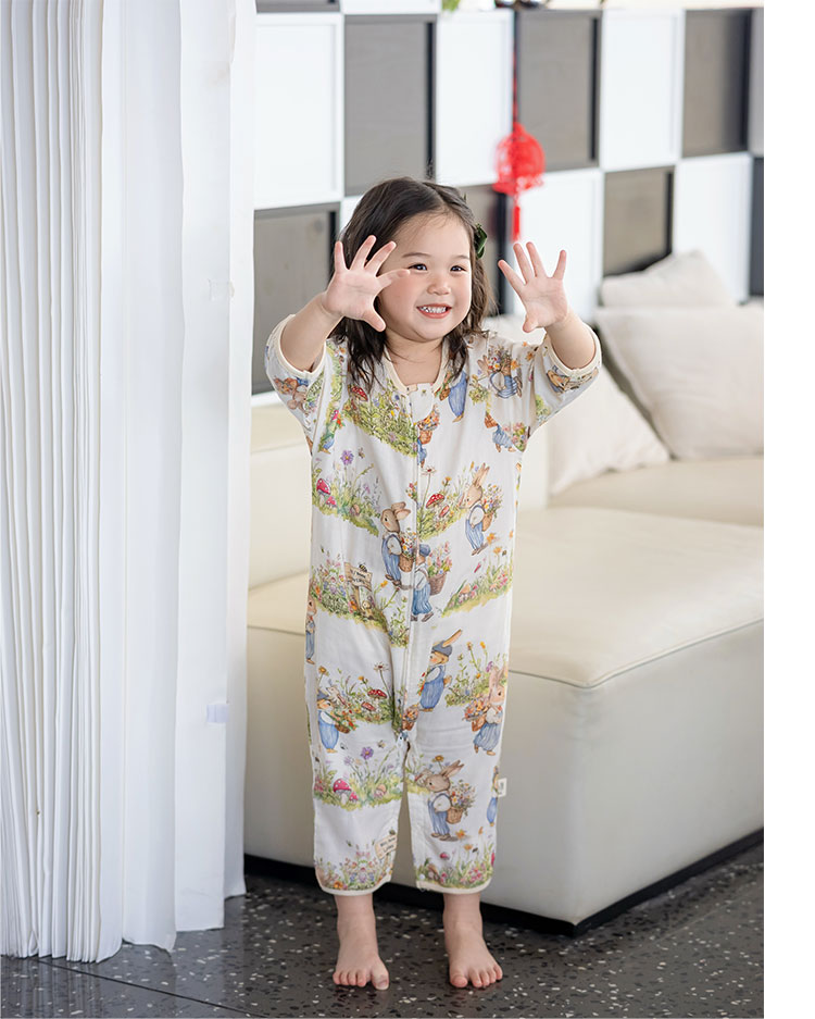 【云优选】BabyStormi竹纤维双层纱七分袖睡袋男女童柔软分腿薄款防踢被 1岁+(适合室温24-26度)(周六日不发货)