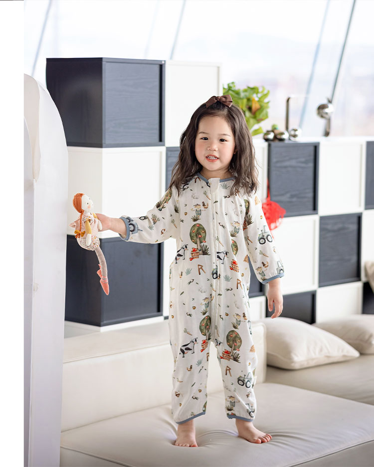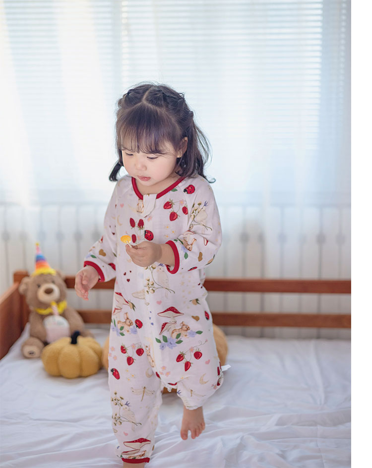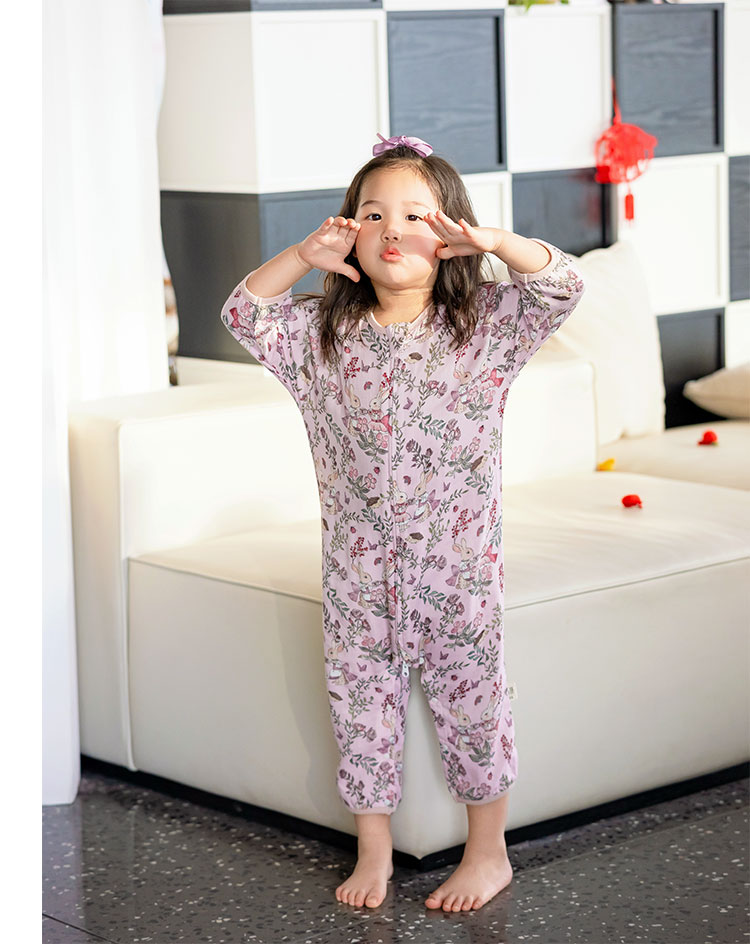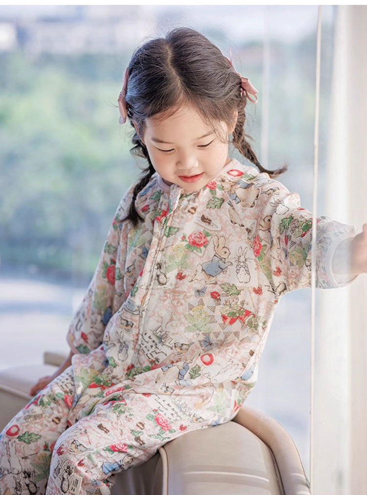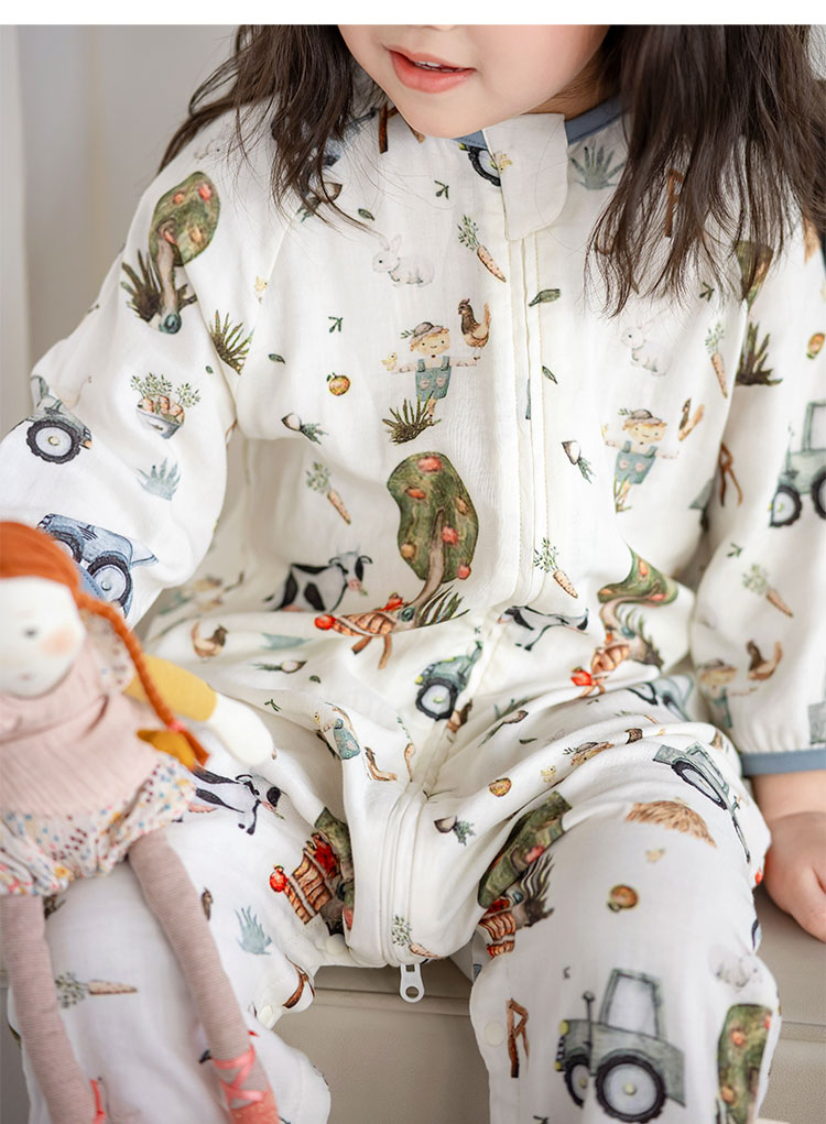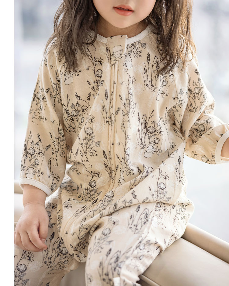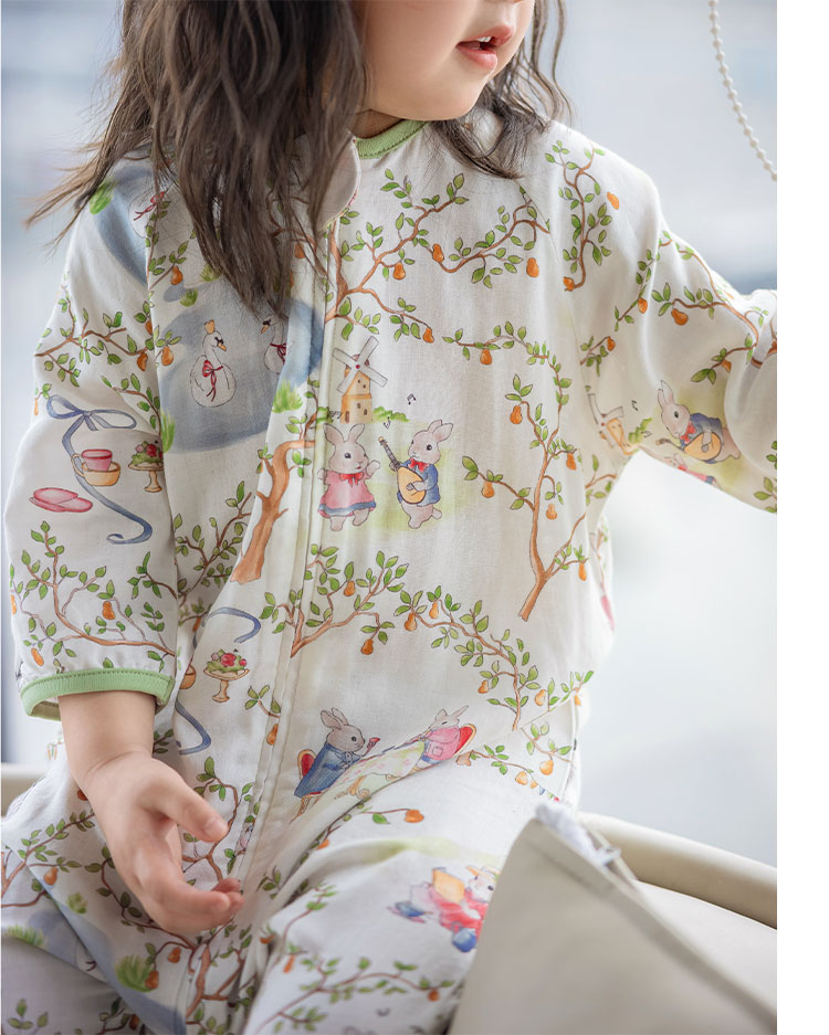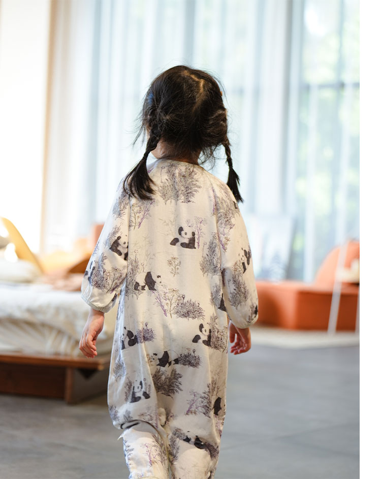 【云优选】BabyStormi竹纤维双层纱七分袖睡袋男女童柔软分腿薄款防踢被 1岁+(适合室温24-26度)(周六日不发货)