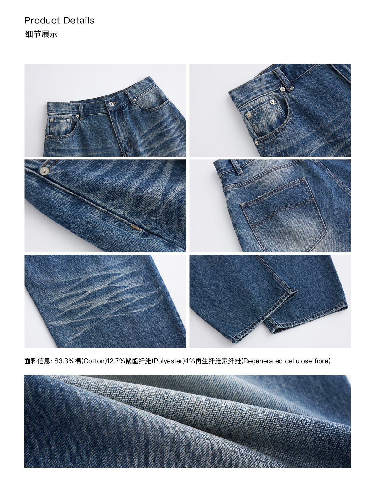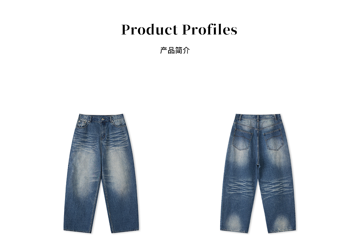 EviStub/E-5XCK492/意产14OZ水洗竹节压褶手工猫须阔腿弯刀剪裁牛仔裤