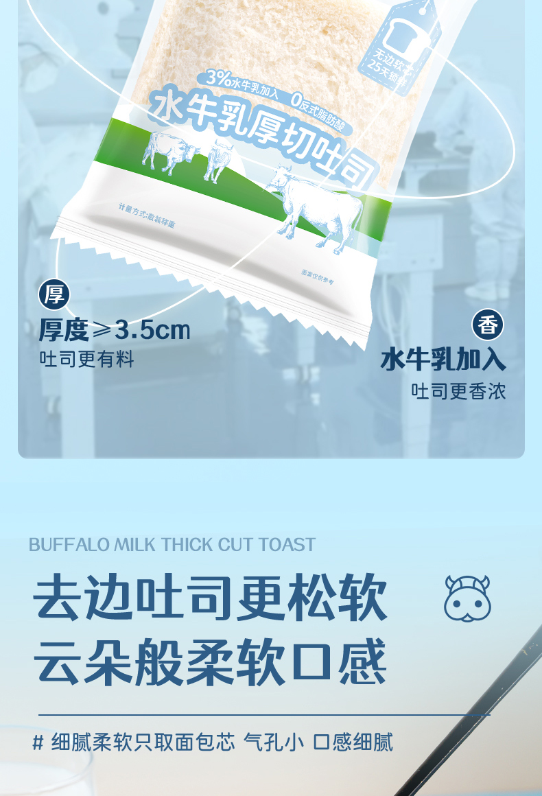 优选原料,特别加入纯水牛乳,科学配比,匠心烘焙制作;不添加防腐剂,0反式脂肪酸;