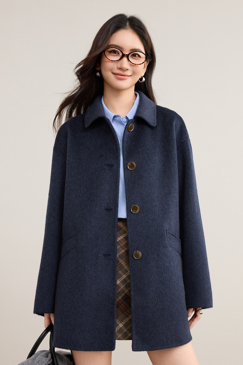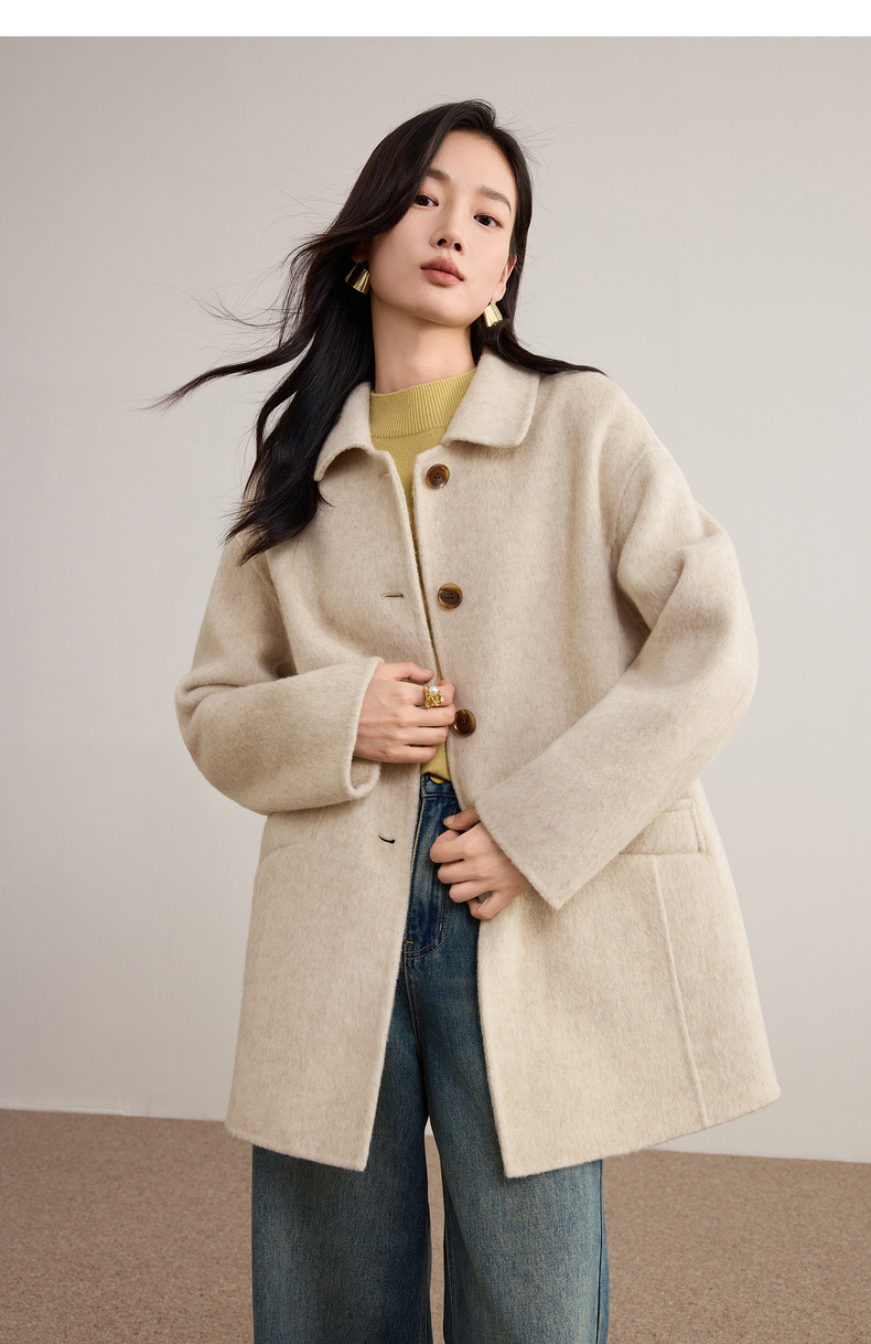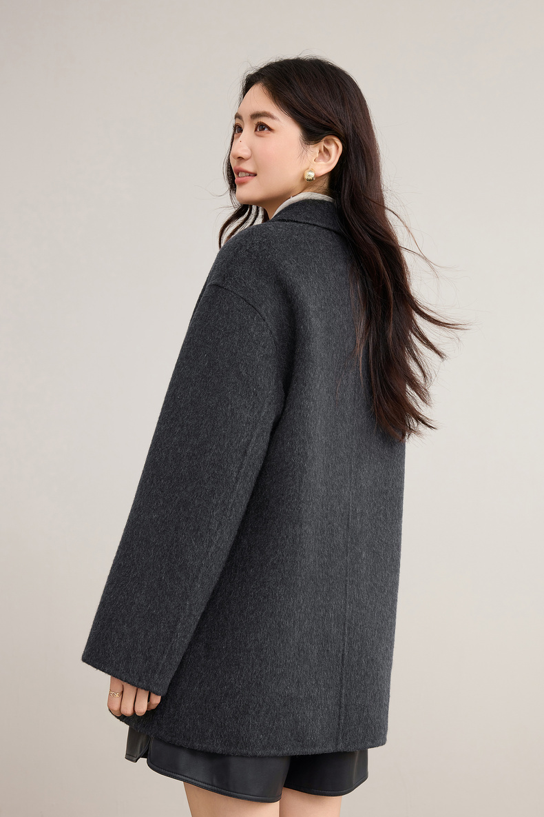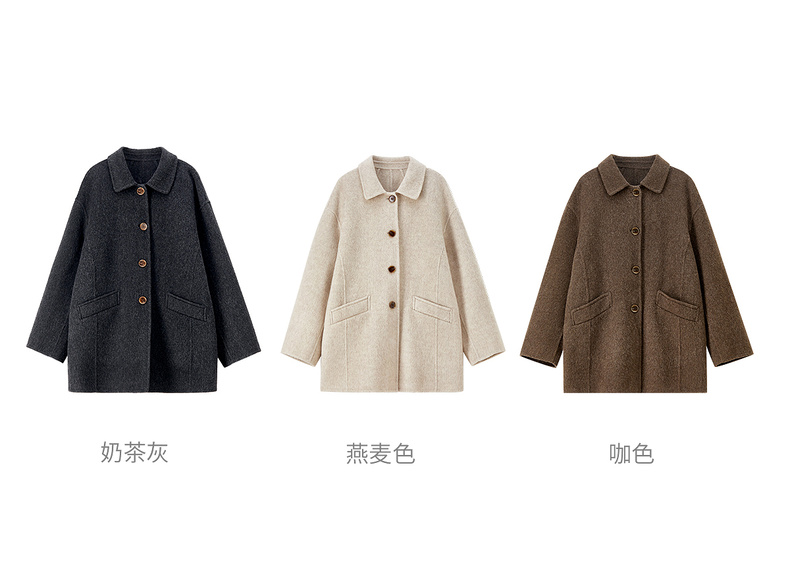 【内购】【70支绵羊毛】智性polo领单排扣宽松落肩厚保暖长款双面呢大衣-W54OG2783