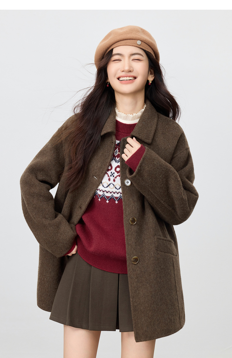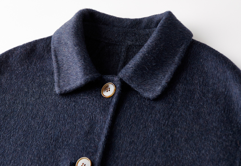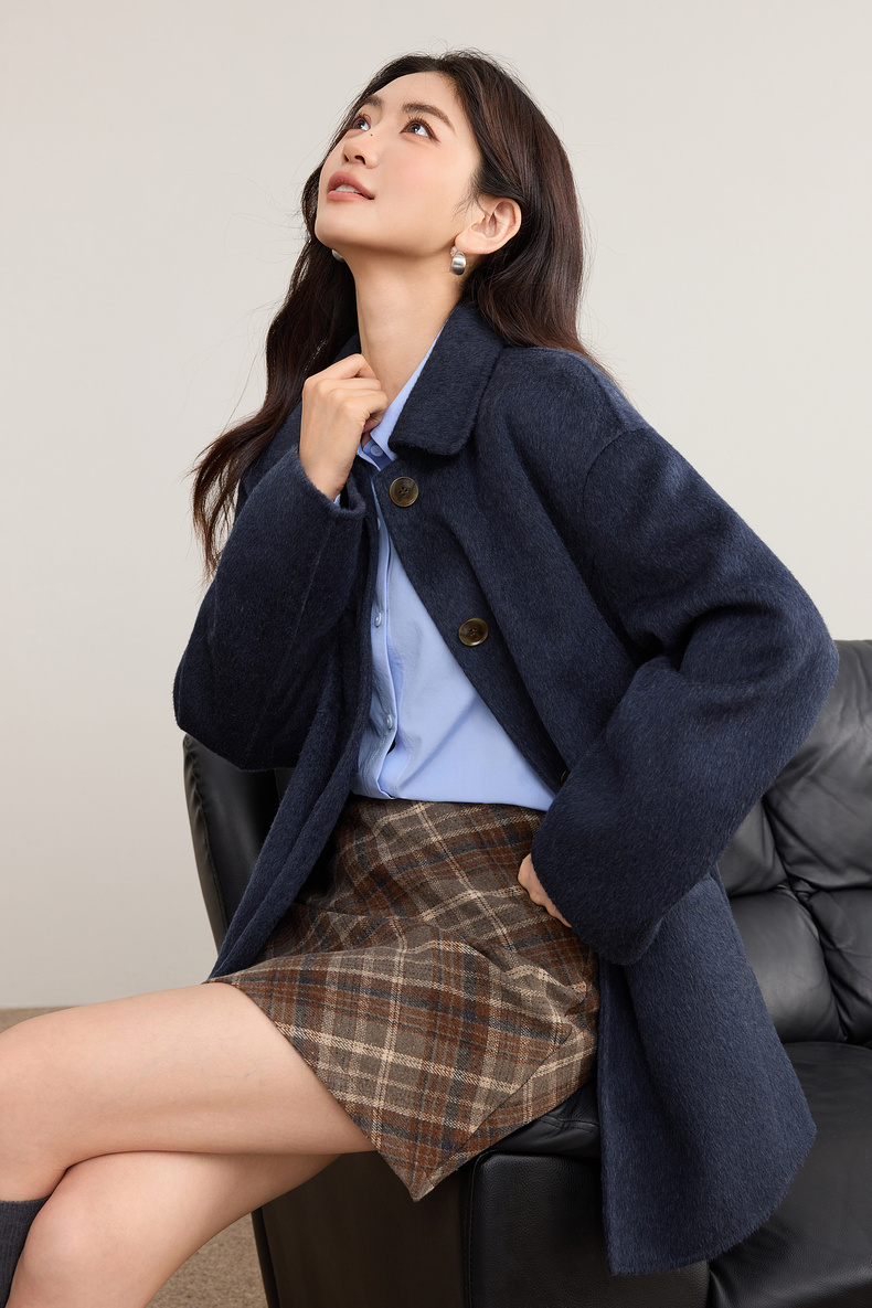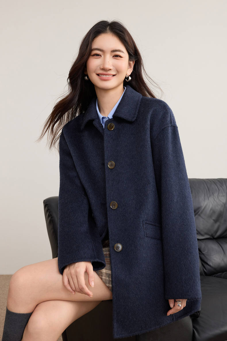 【内购】【70支绵羊毛】智性polo领单排扣宽松落肩厚保暖长款双面呢大衣-W54OG2783