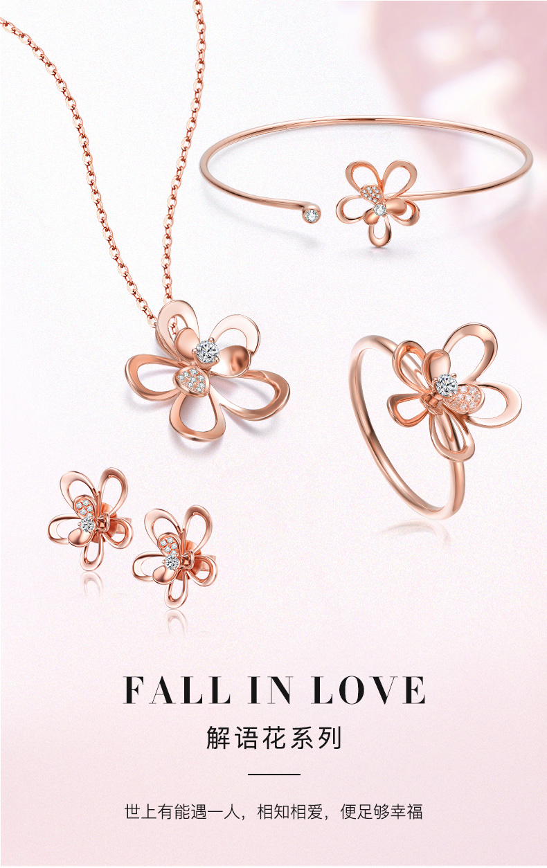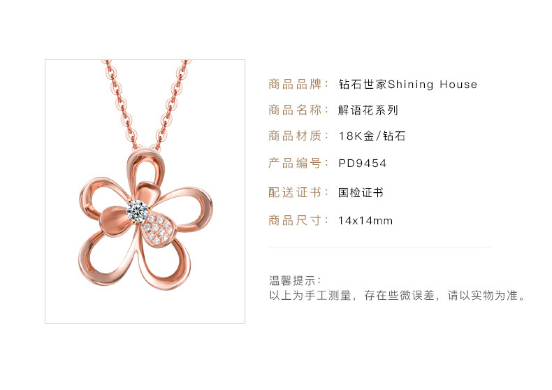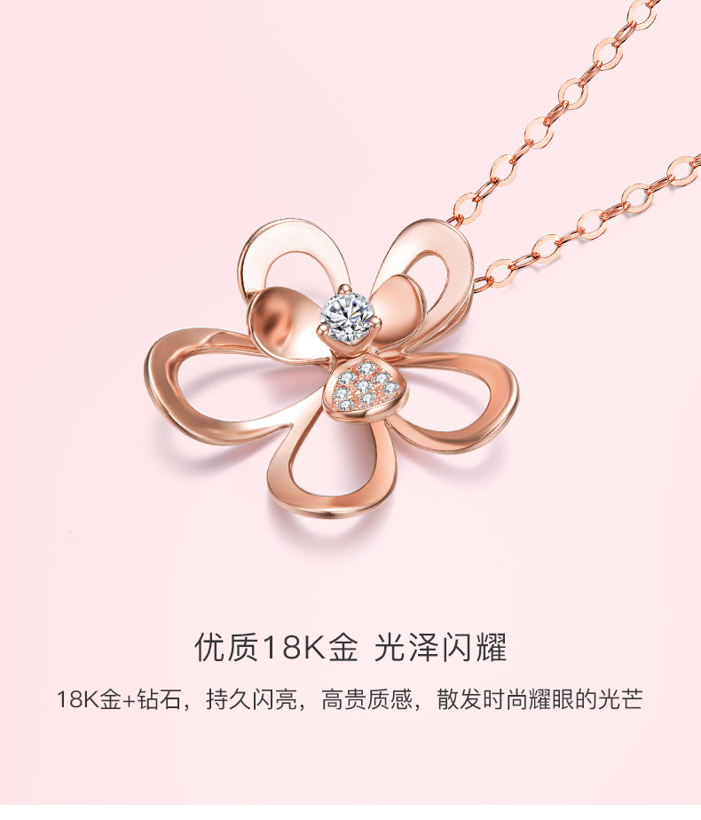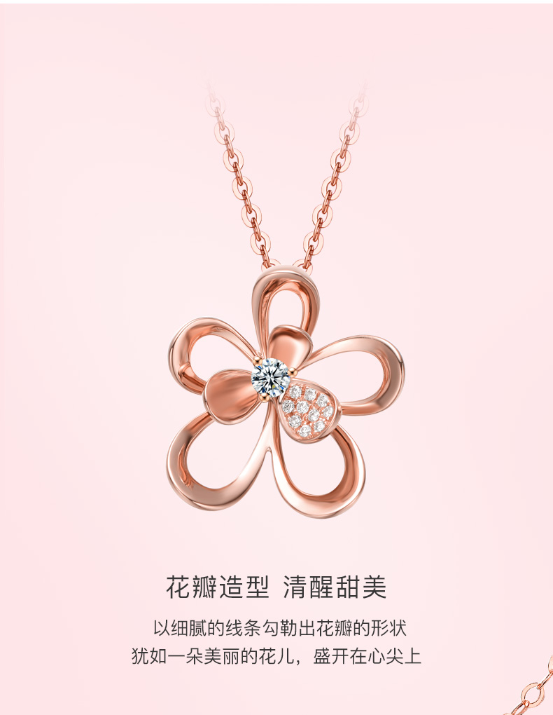 【甄选钻饰】【门店同款】钻石世家 18K金钻石吊坠 花蜜解语花系列 浪漫花朵造型吊坠 送女友送老婆(主石5分)(可搭配项链购买)