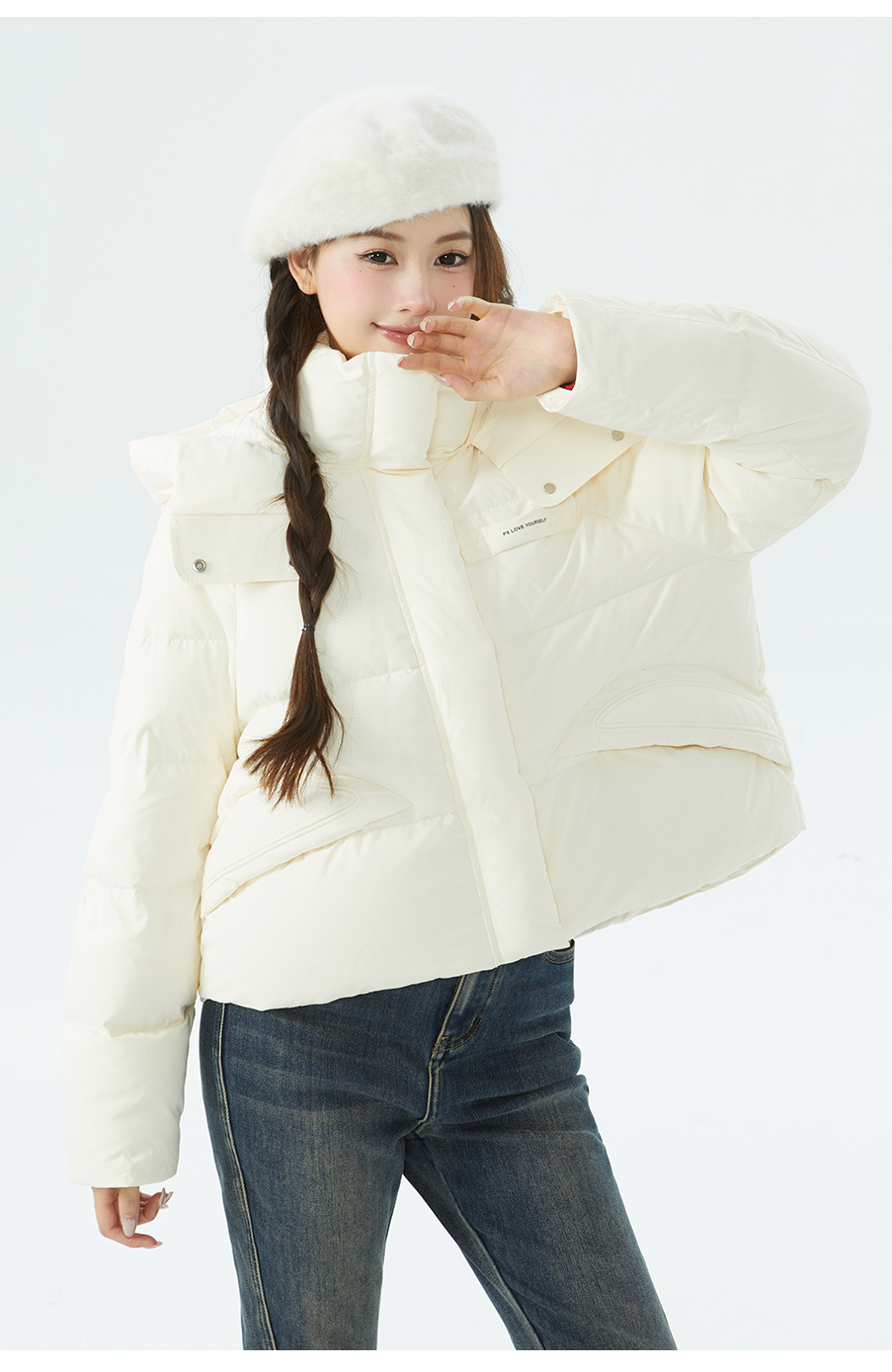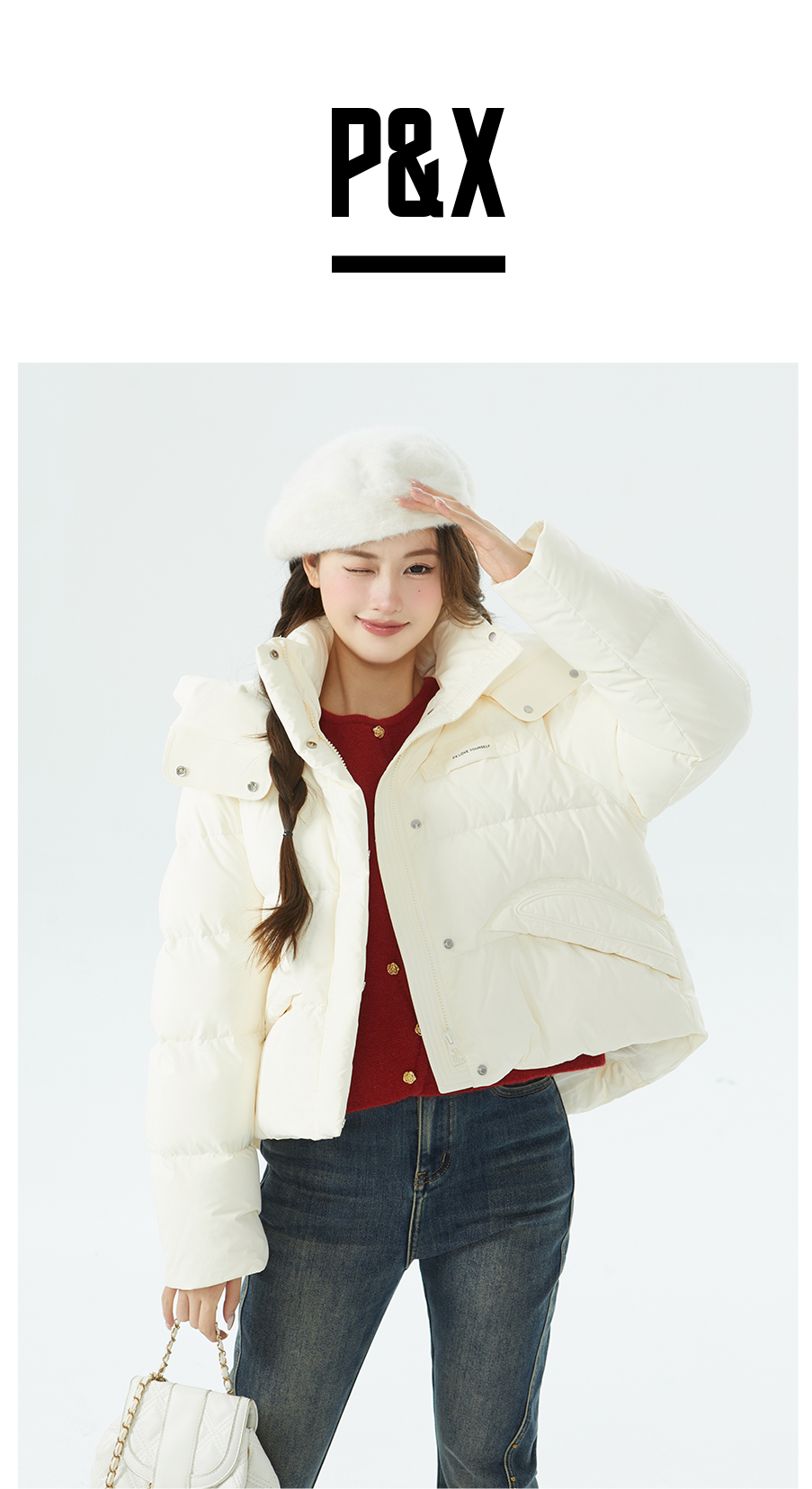P&X设计师女装冬季宽松短款棉服824424229米白